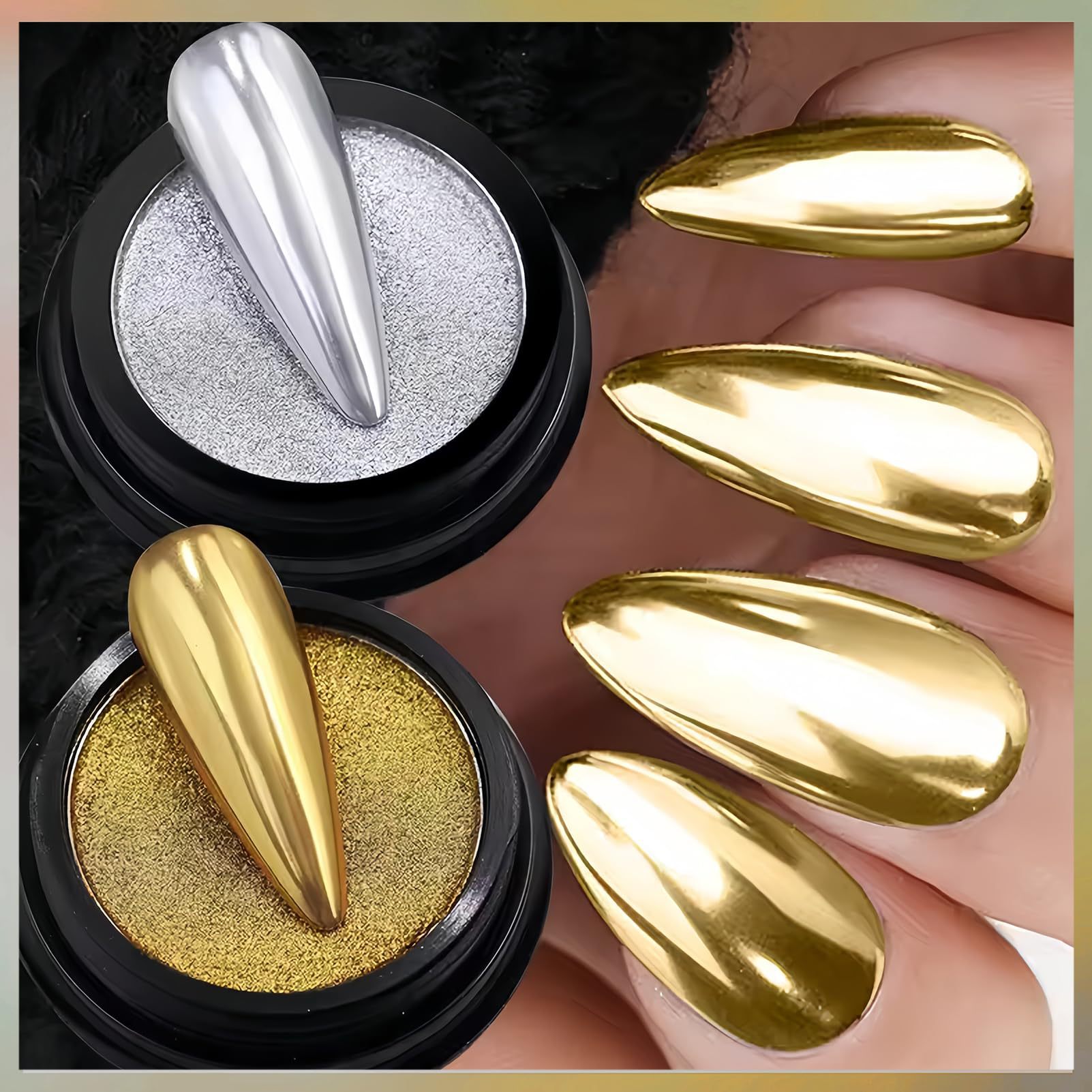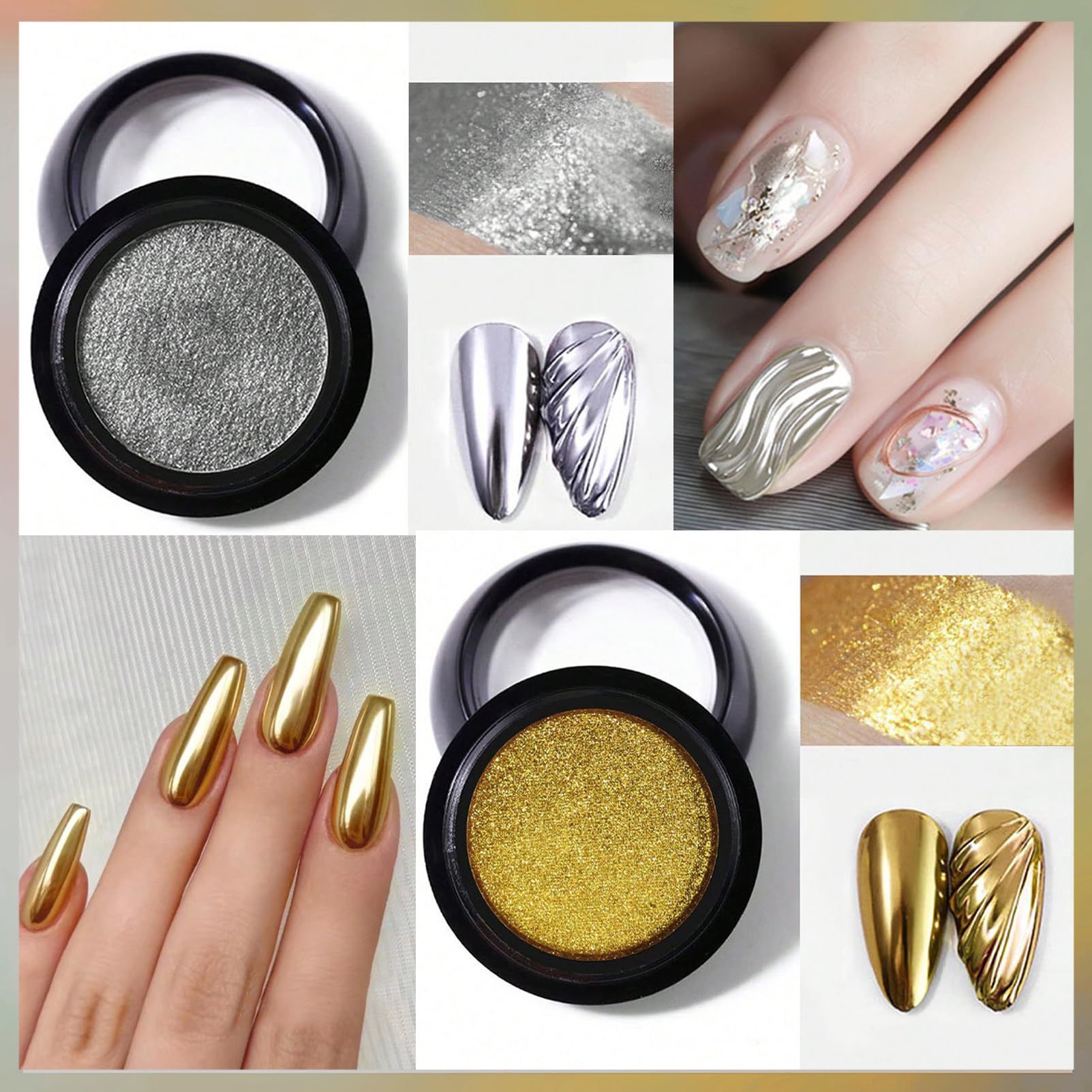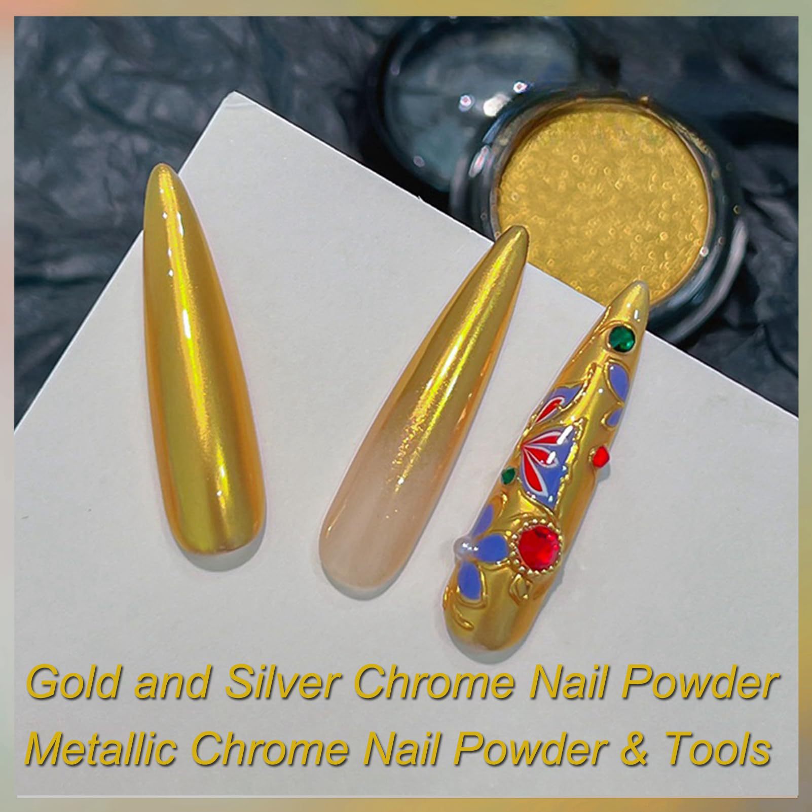 금색과 은색 발톱을 위한 크로스보더 매직 미러 파우더 매니큐어, 매우 밝고 섬세한 금색과 은색 거울 매직 미러 파우더 매니큐어 액세서리