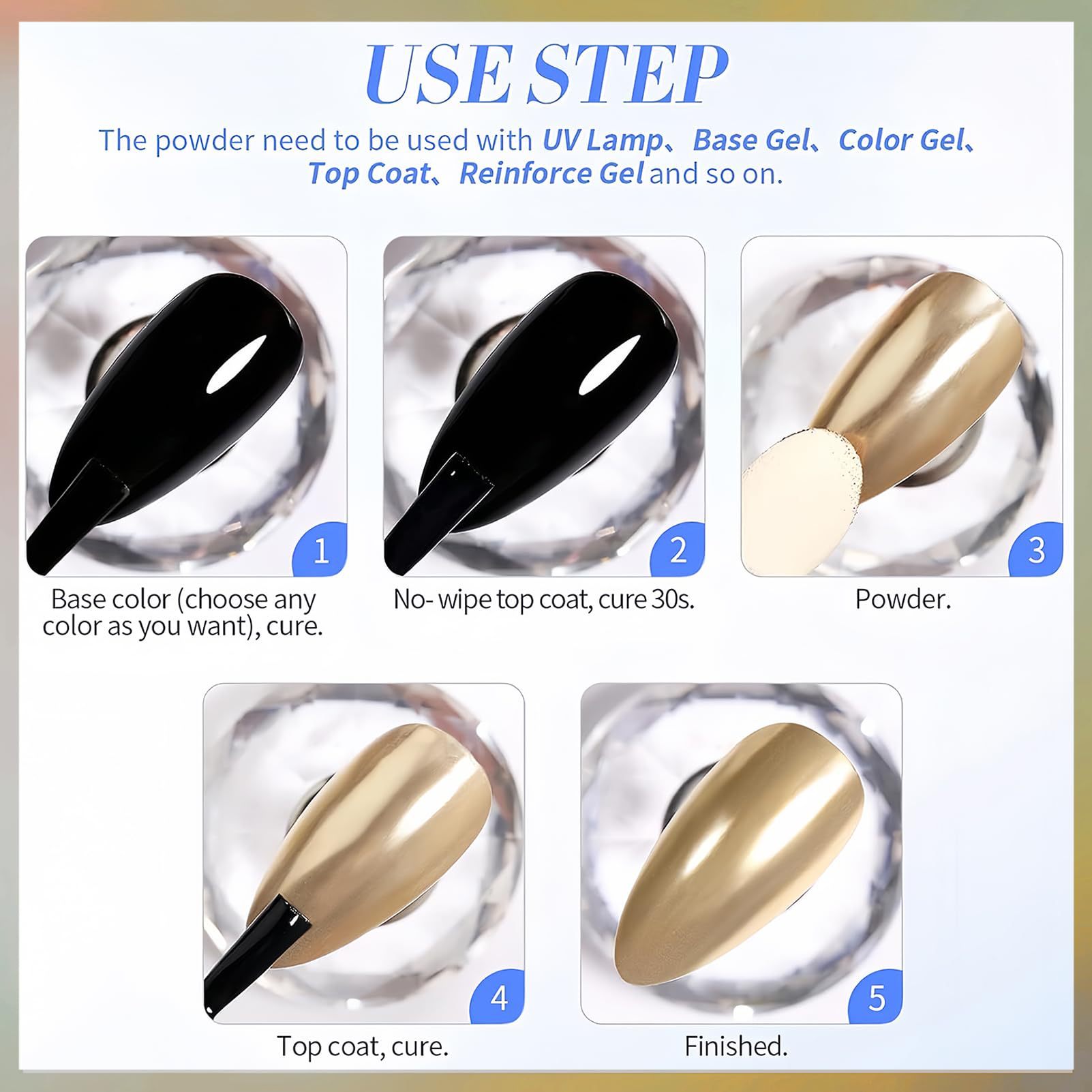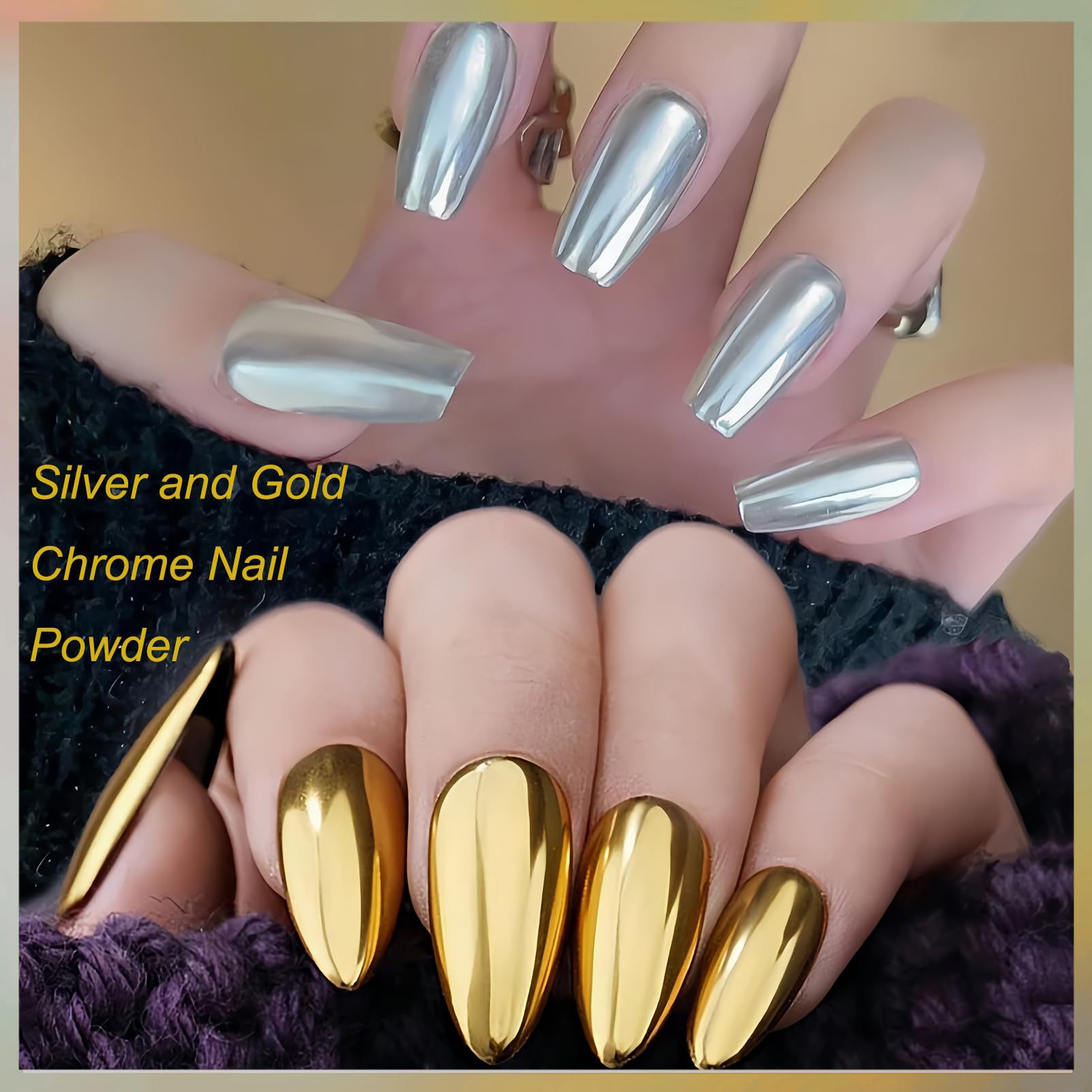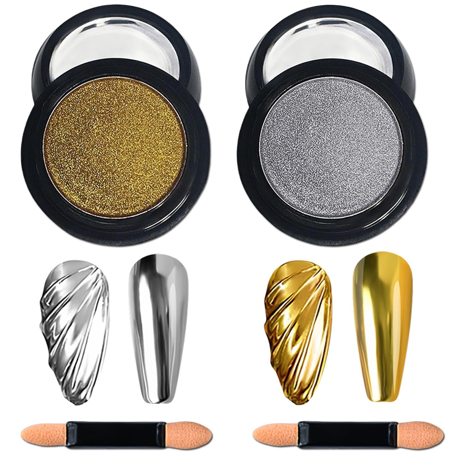 금색과 은색 발톱을 위한 크로스보더 매직 미러 파우더 매니큐어, 매우 밝고 섬세한 금색과 은색 거울 매직 미러 파우더 매니큐어 액세서리