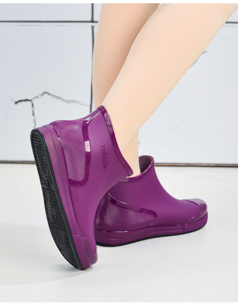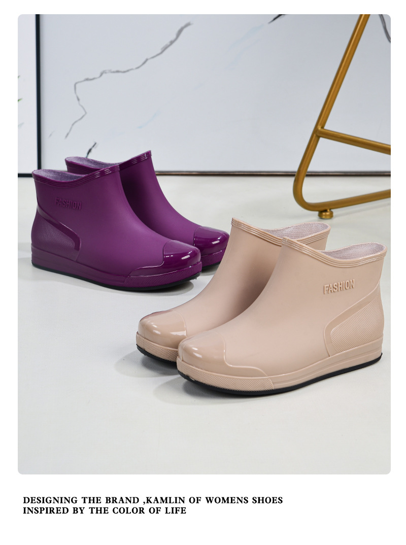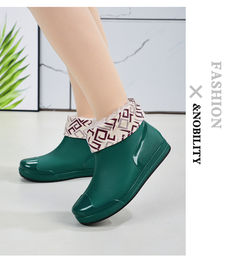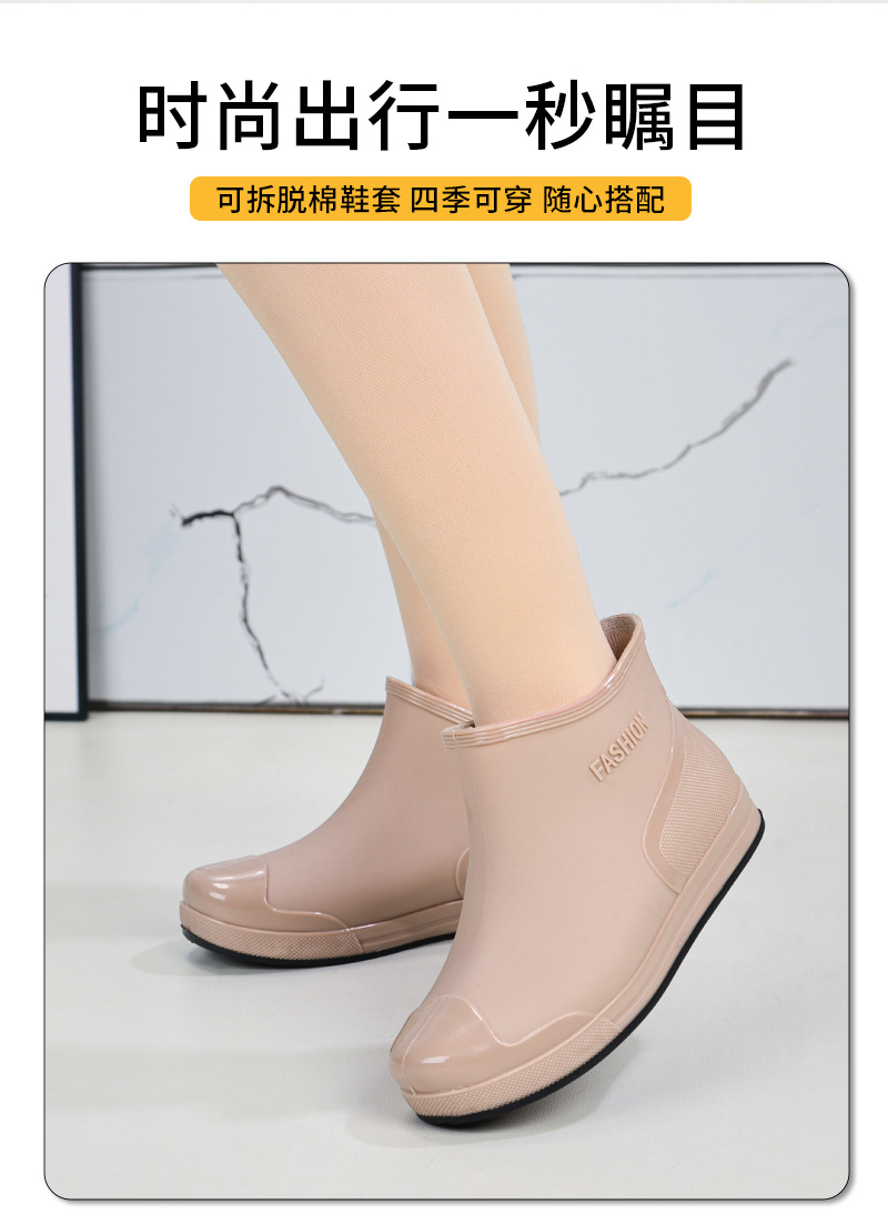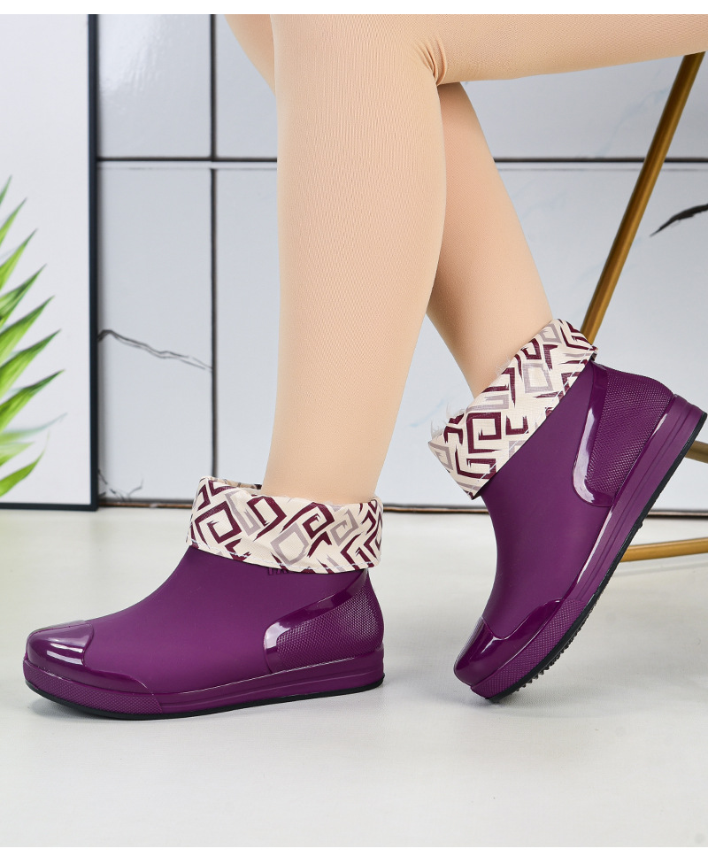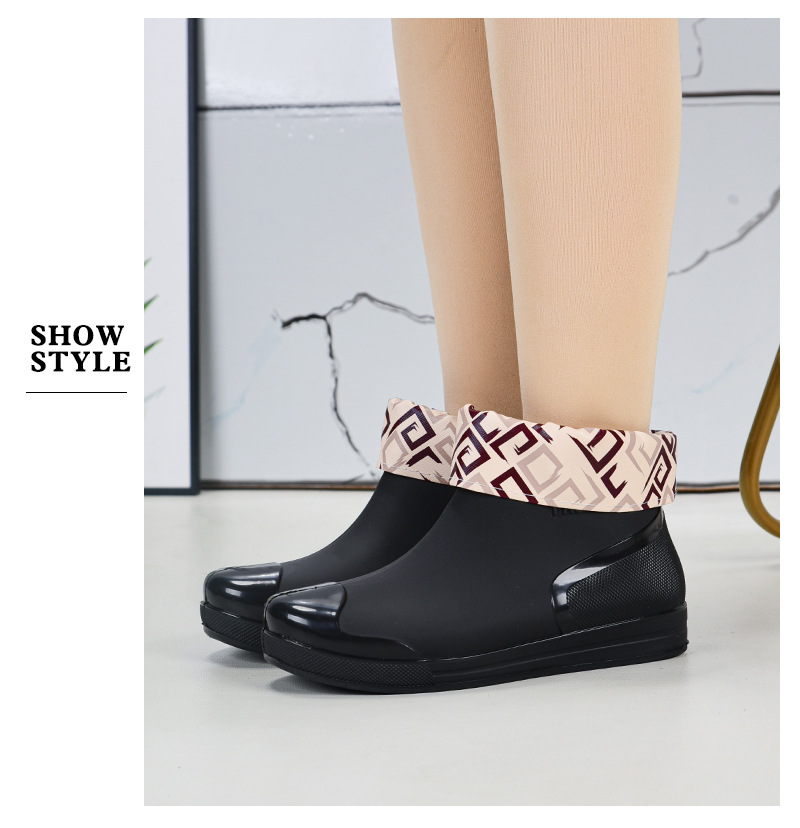 새로운 패셔너블한 여성용 레인부츠, 방수 및 미끄럼 방지 장화, 벨벳 로우탑 고무신, 덧신, 로우탑 숏탑 레인부츠