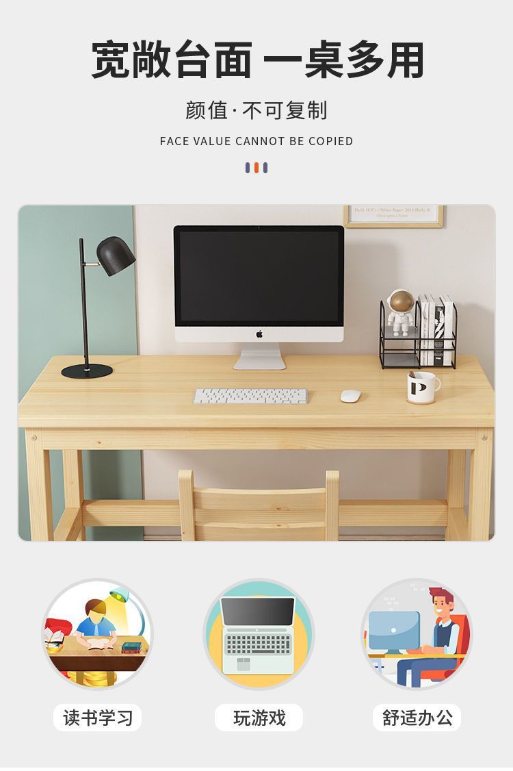 소나무 컴퓨터 책상 침실 홈 작은 아파트 어린이 간단한 테이블 두꺼운 내구성 직사각형 책상 책