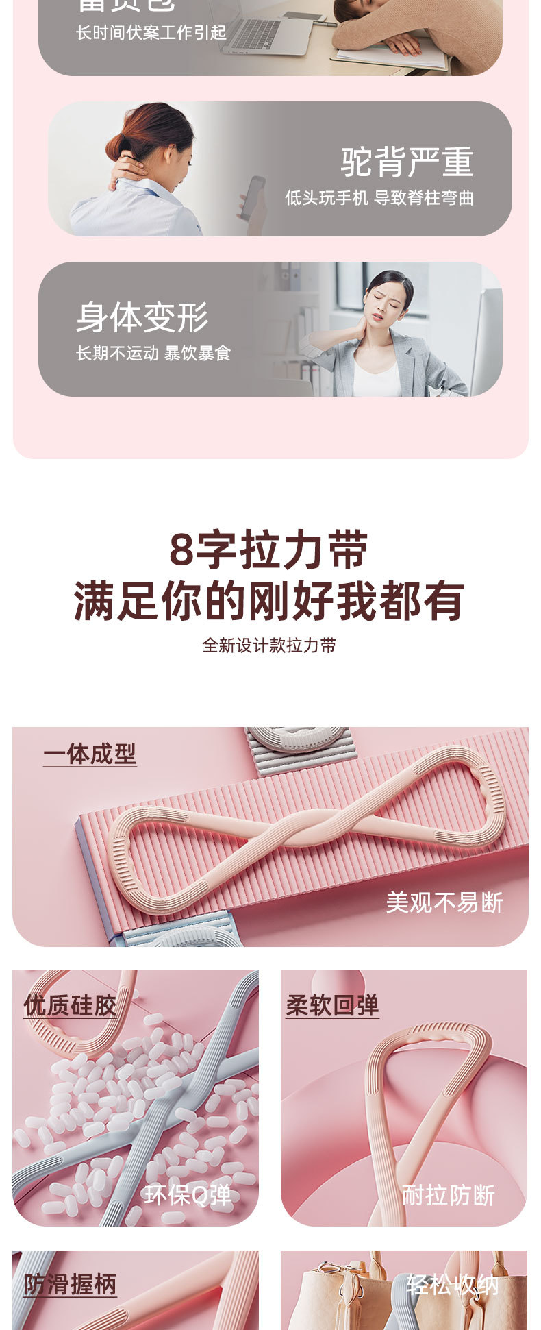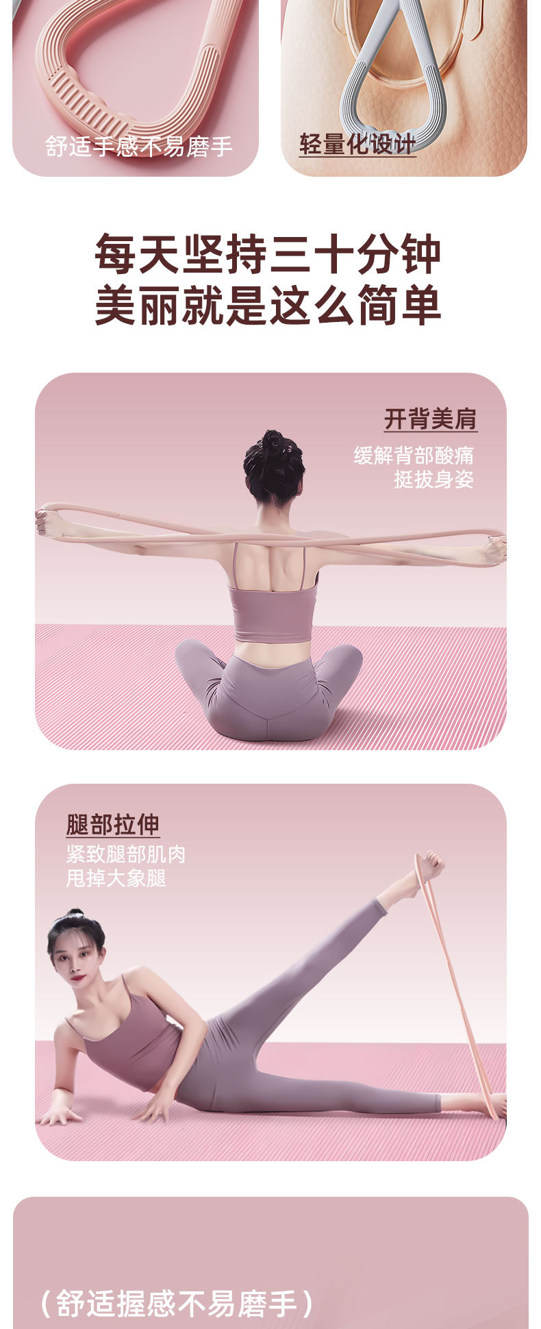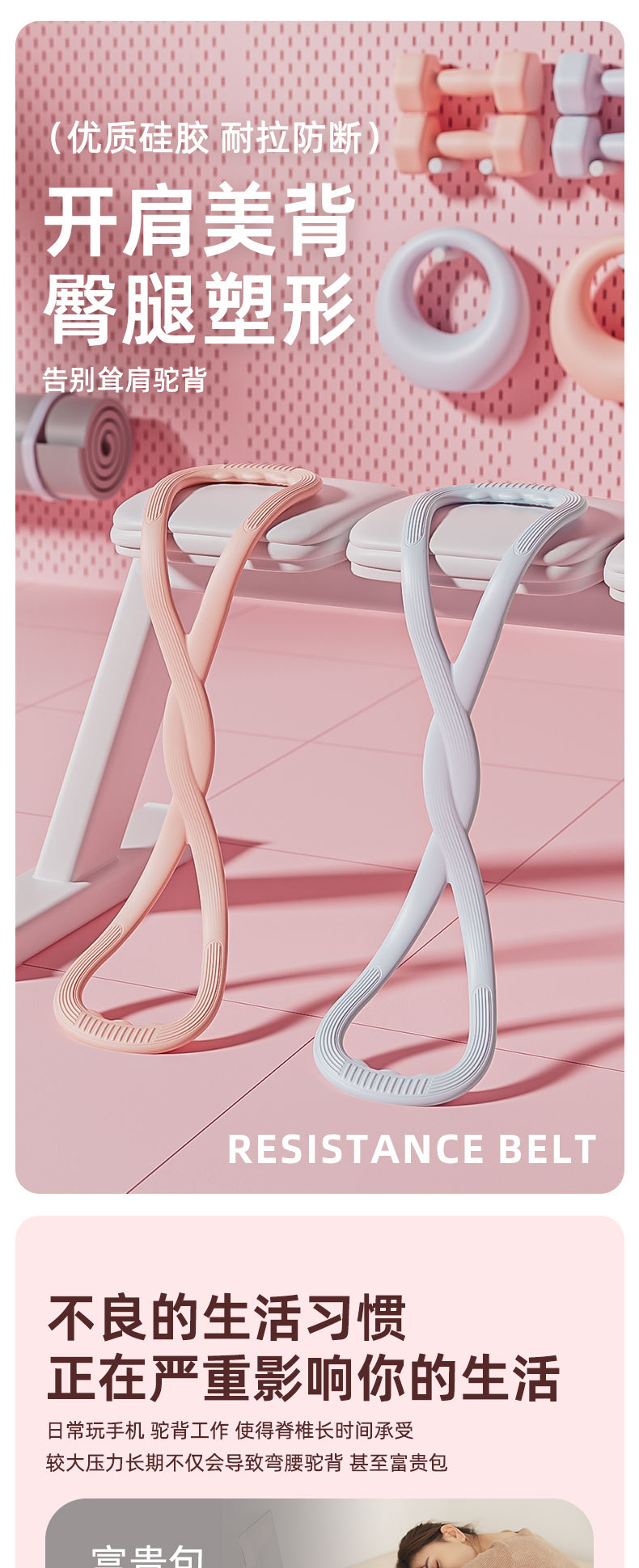 여성용 피트니스용 8자형 텐셔너, 가정용 요가 스트레칭 벨트, 등용 실리콘 두꺼운 탄성 로프