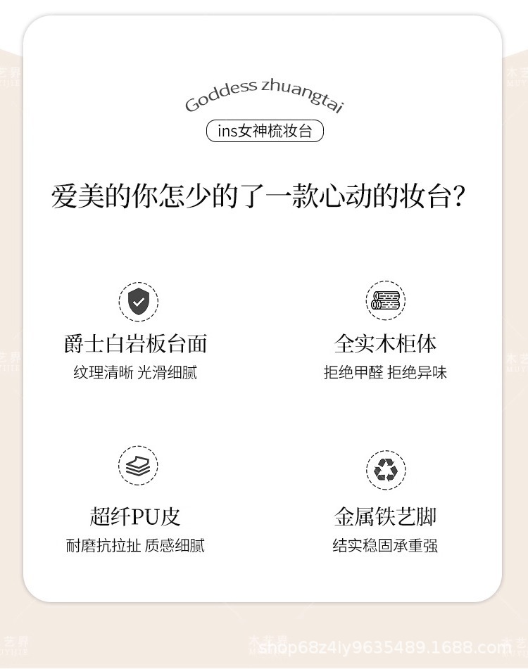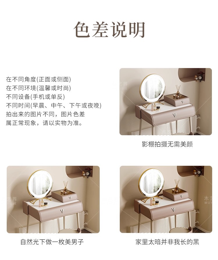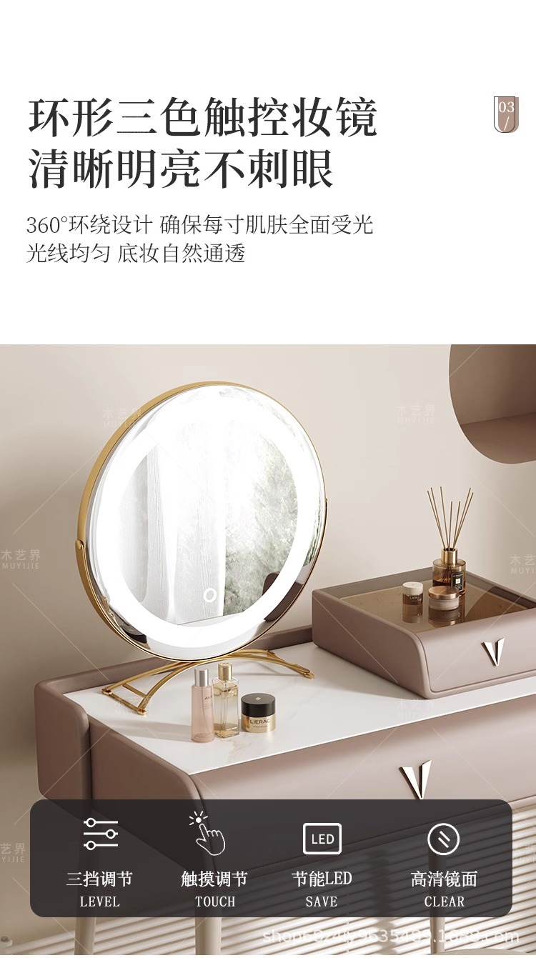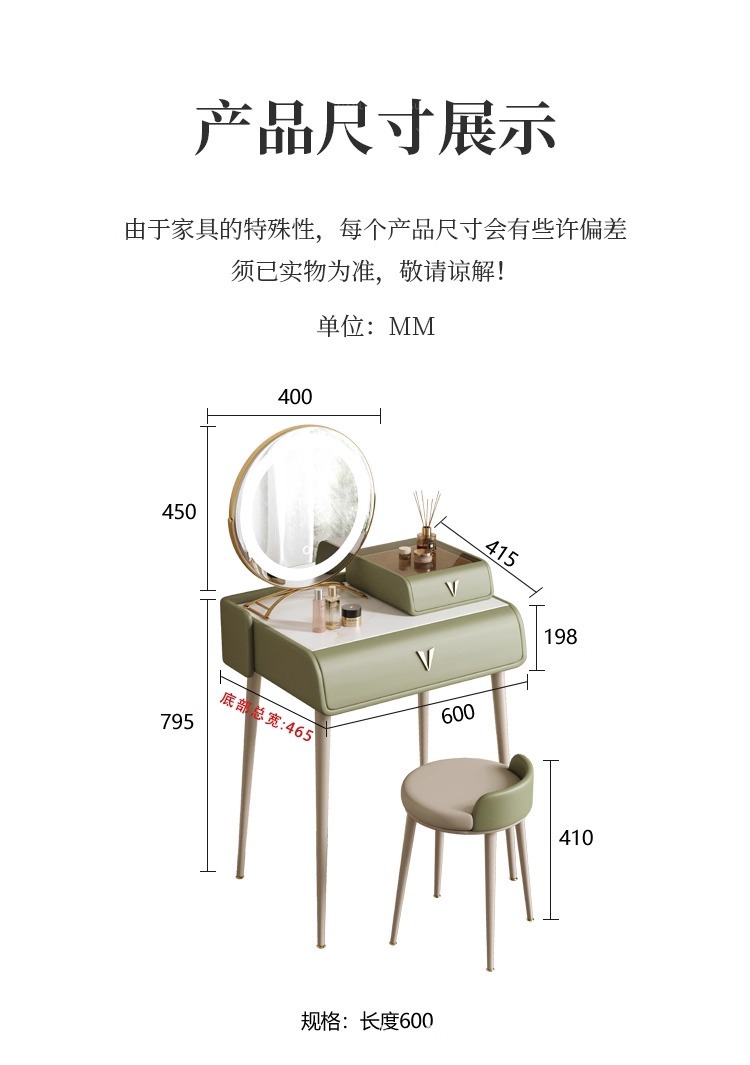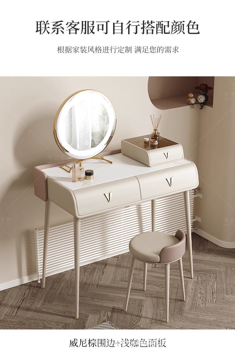 0.6m 스툴, 거울, 보석함이 없는 싱글 화장대 일반 가죽]