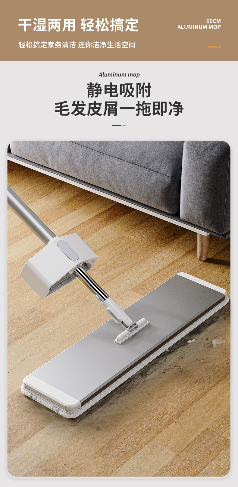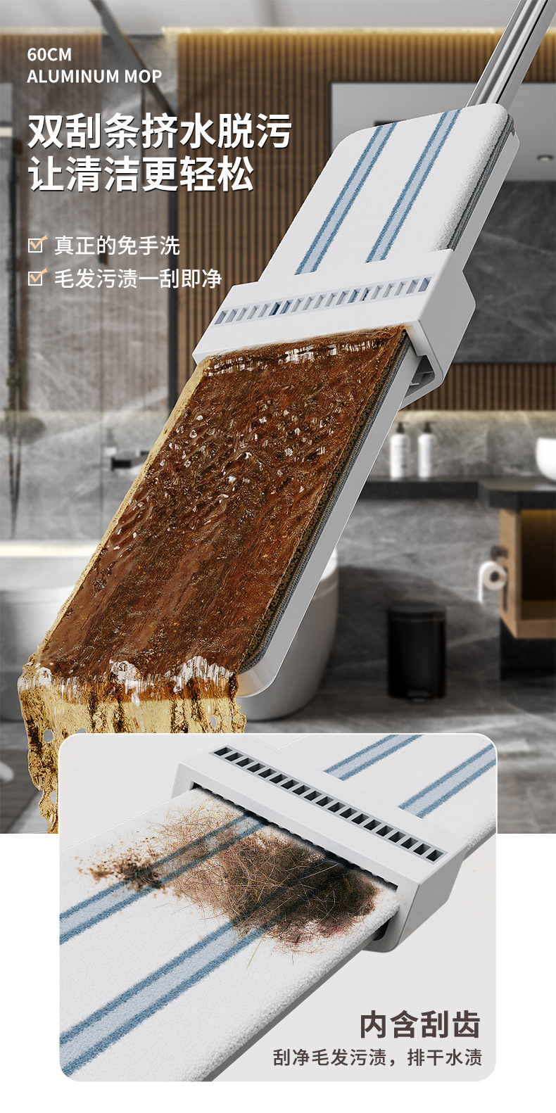 대형 2025년 신형 걸레, 핸즈프리 걸레, 가정용 평면형 대형 면적 청소용 걸레, 게으른 사람들을 위한 걸레