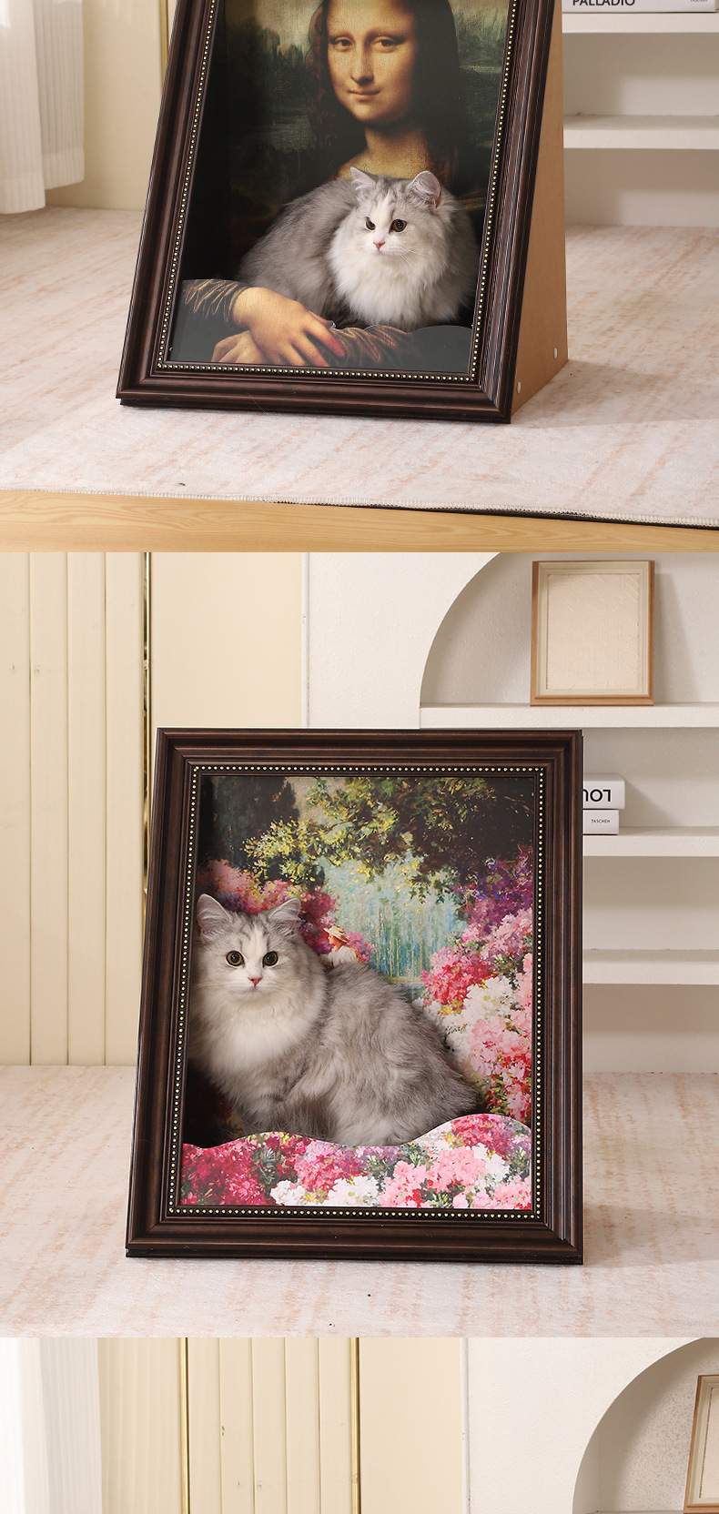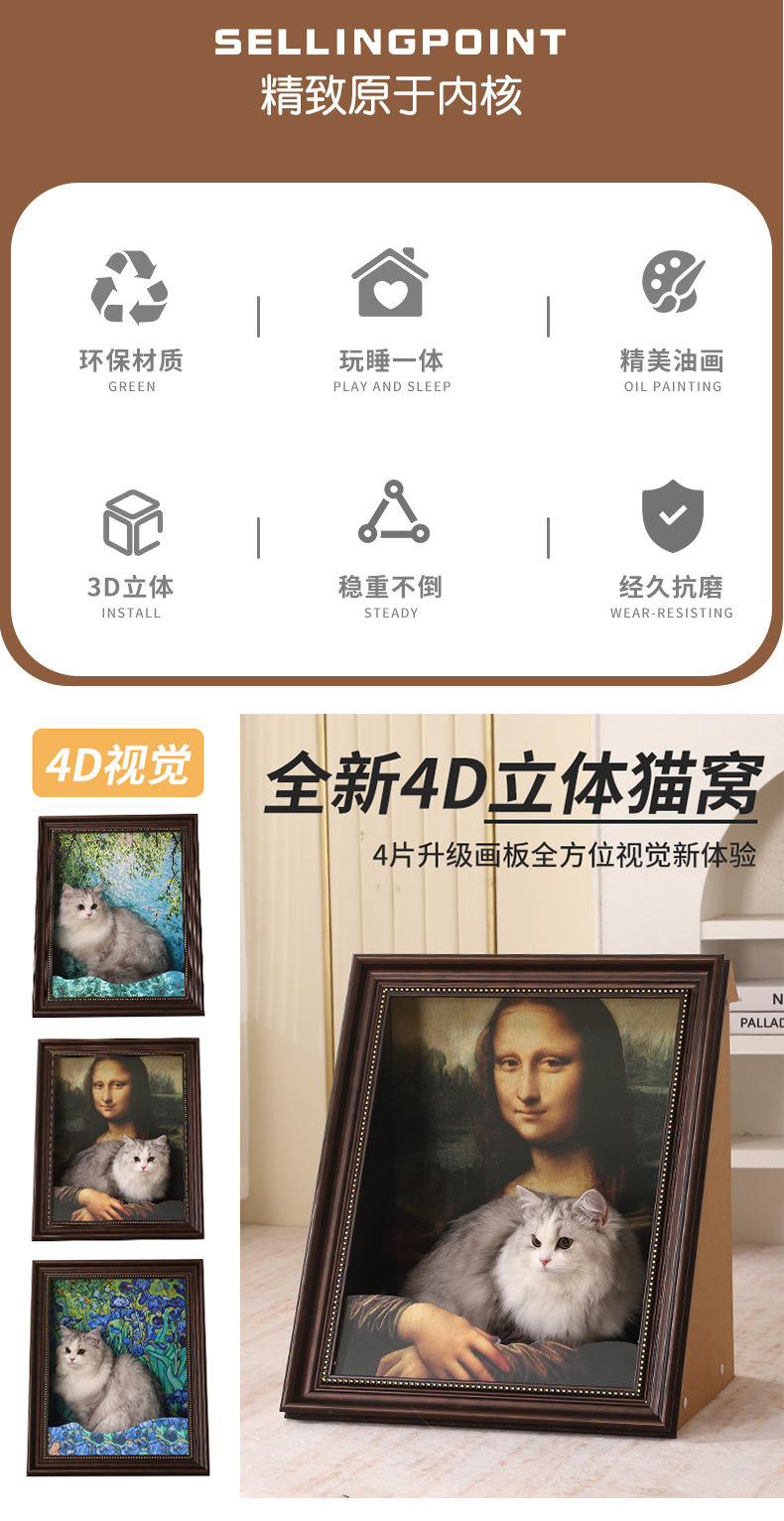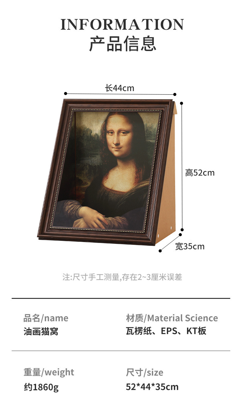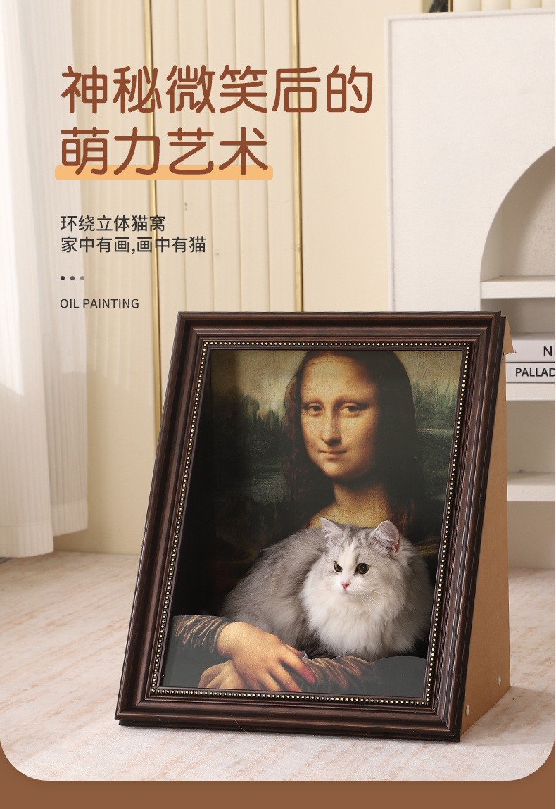 창의적인 고양이 둥지 입체 그림 교체 가능한 유화 모나리자 유화 고양이 둥지 고양이 스크래치 보드 사진 프레임 입체 효과