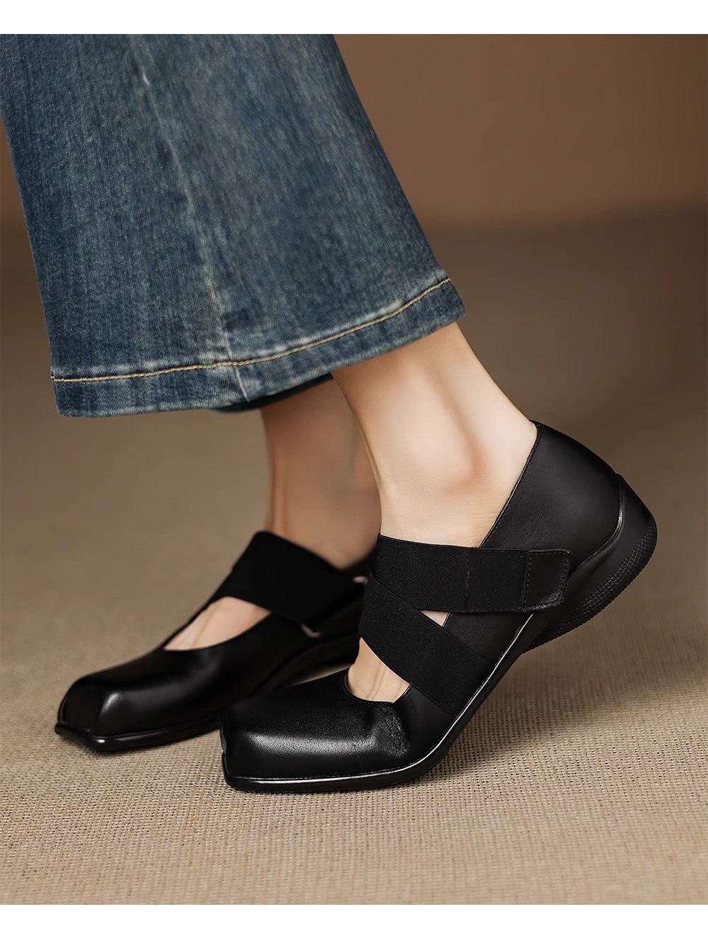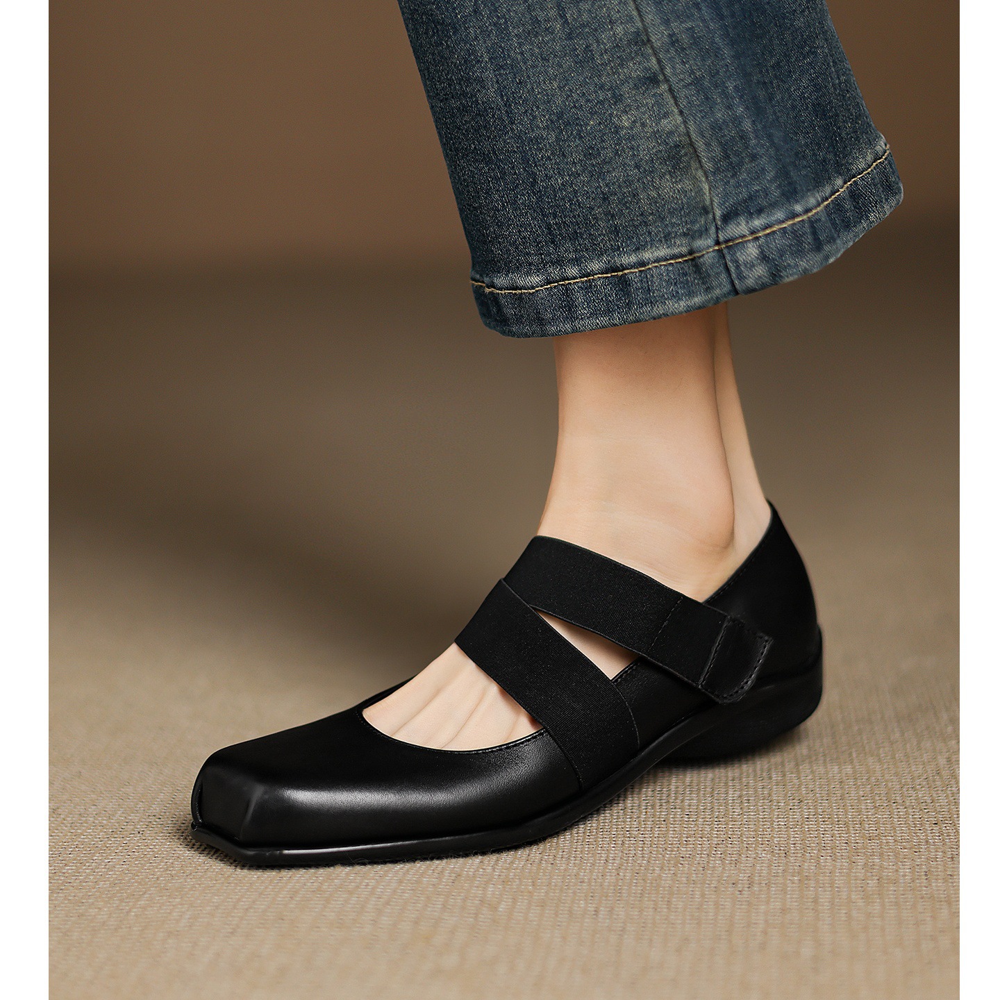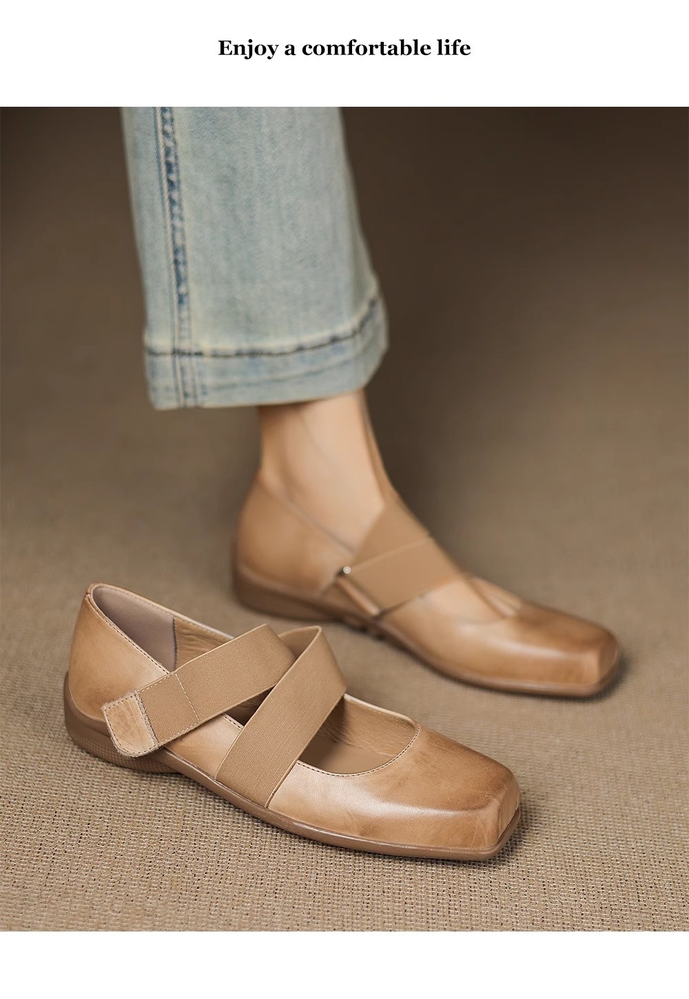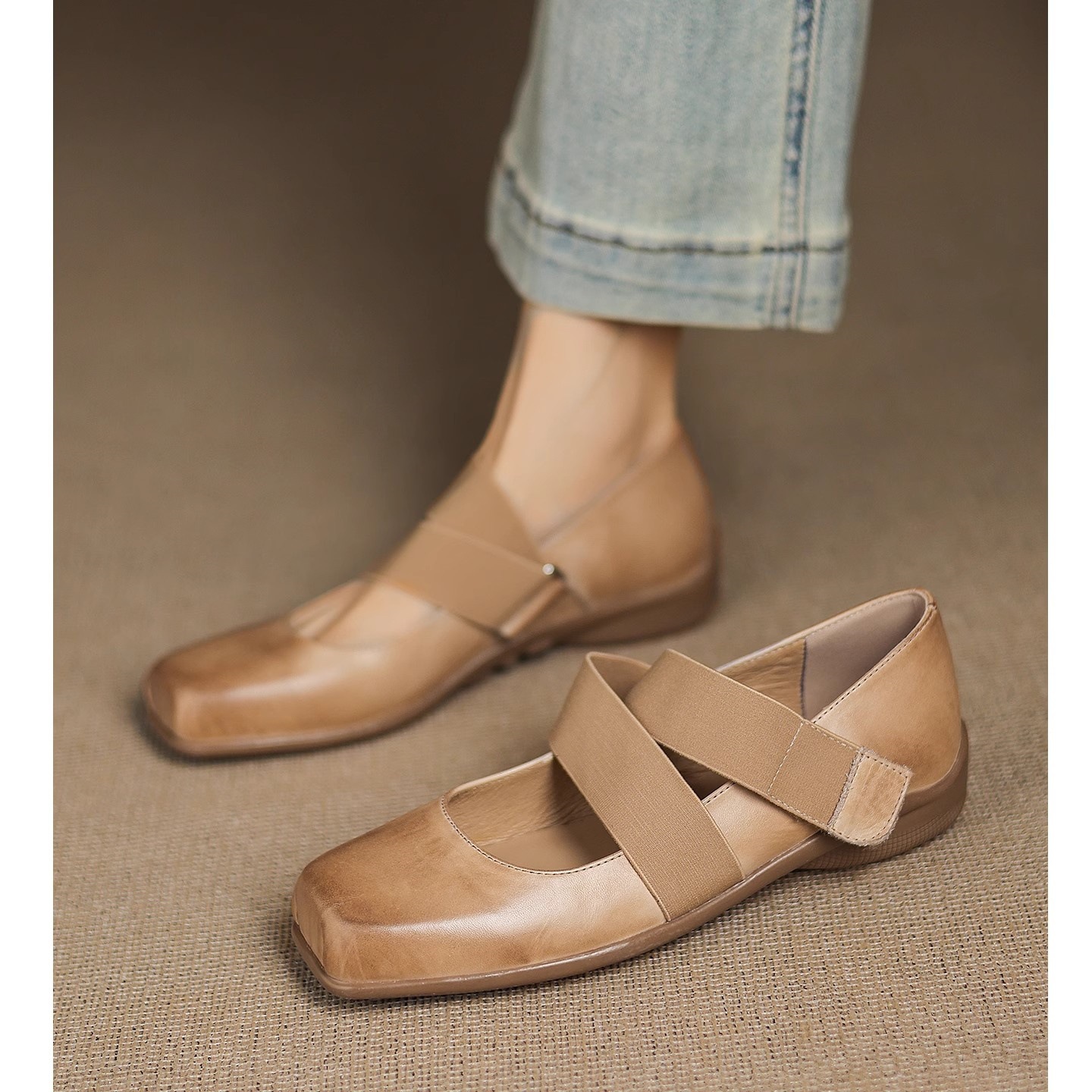 2025 새로운 작은 가죽 신발, 얕은 구두, 부드러운 밑창 발레 플랫 슈즈, 여성용 프렌치 레트로 스퀘어 토 메리 제인 슈즈