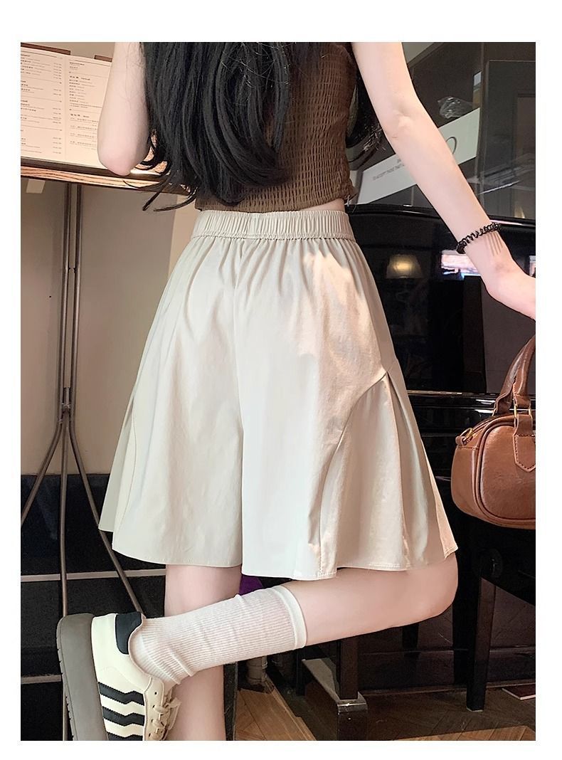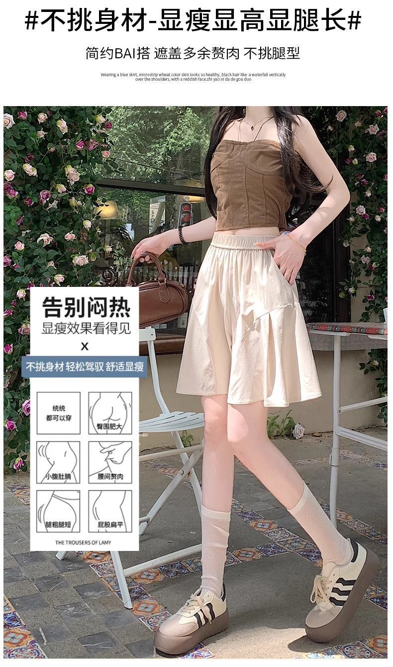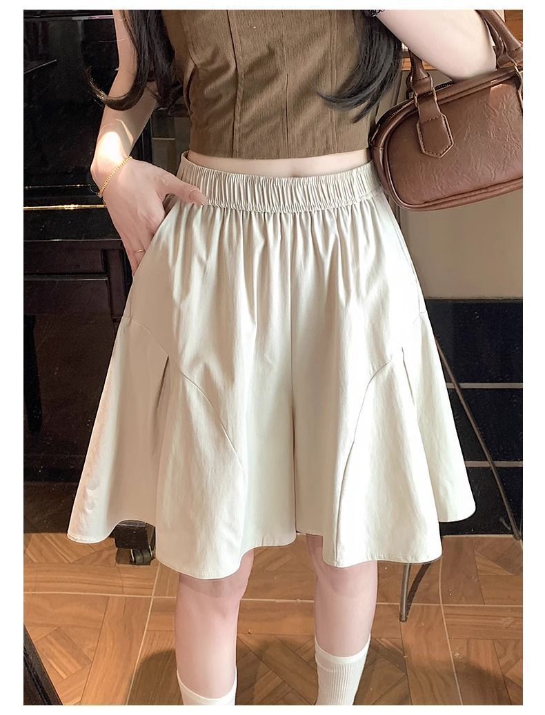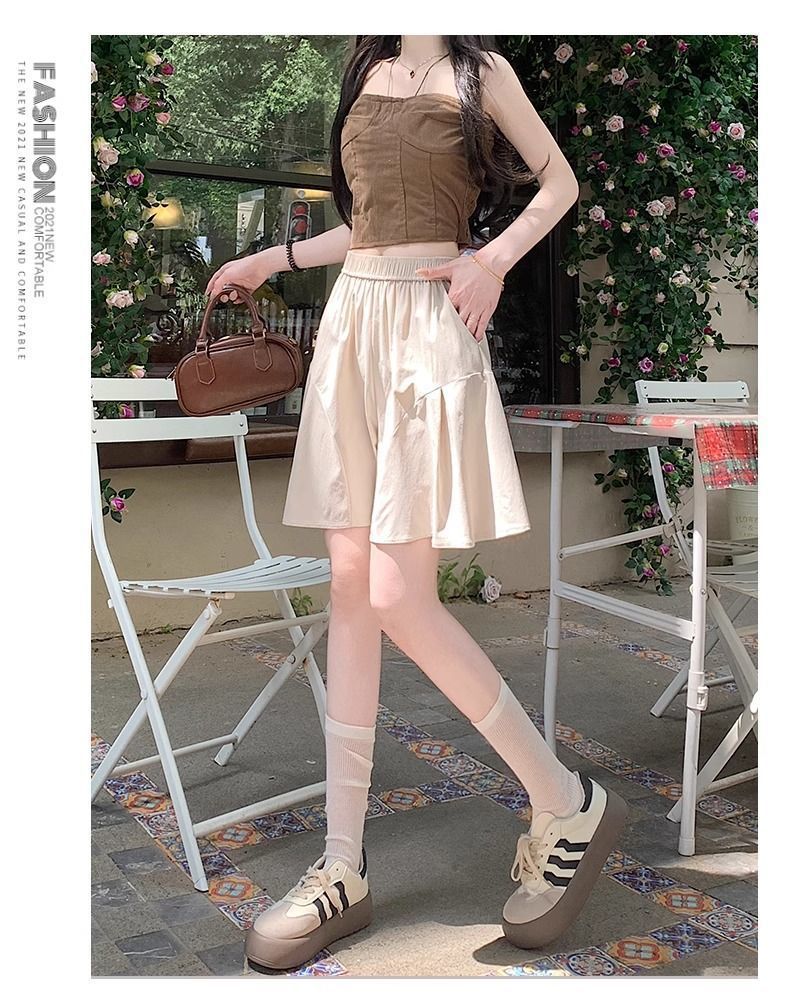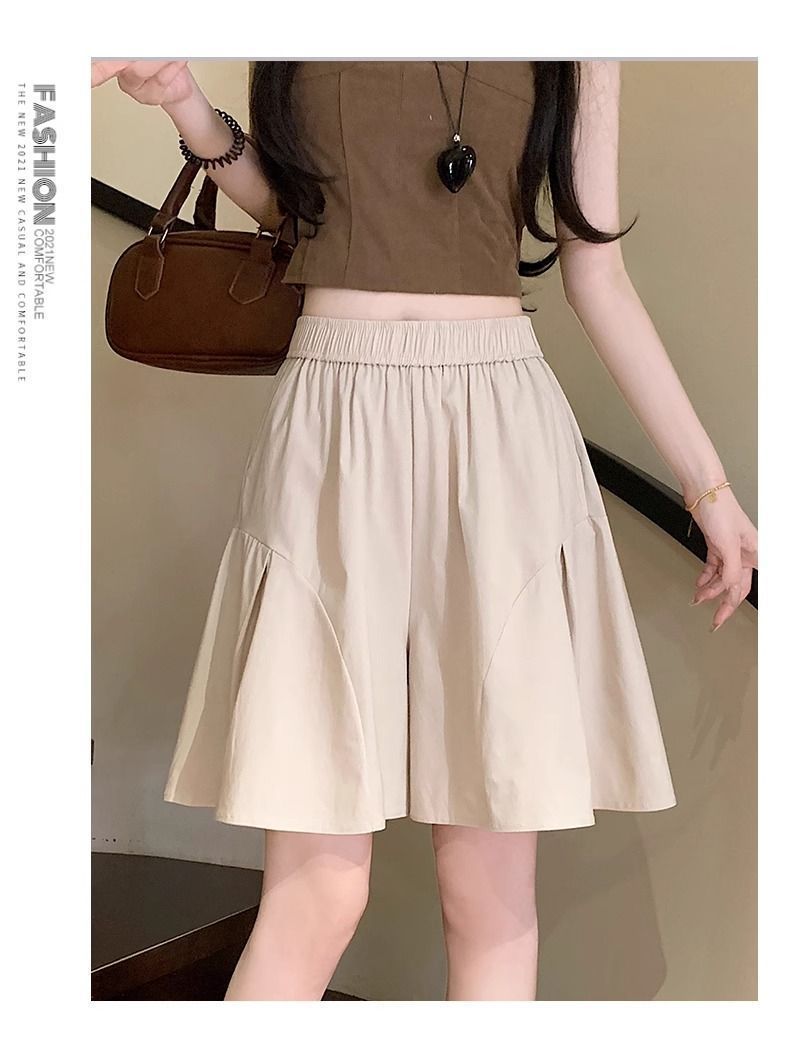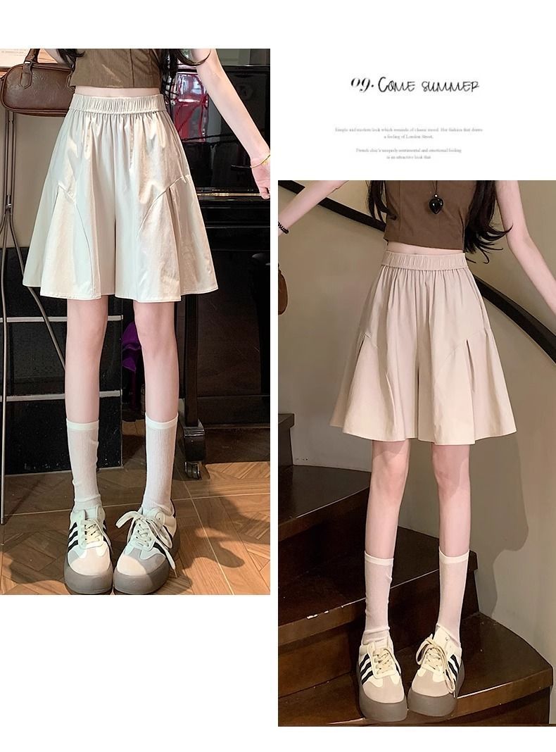 레트로 아메리칸 스타일 쿼터 스커트 하이웨이스트 캐주얼 스타일 스트리트 니치 여름 다용도 여성용 얇은 슬리밍 반바지 스트레이트 팬츠