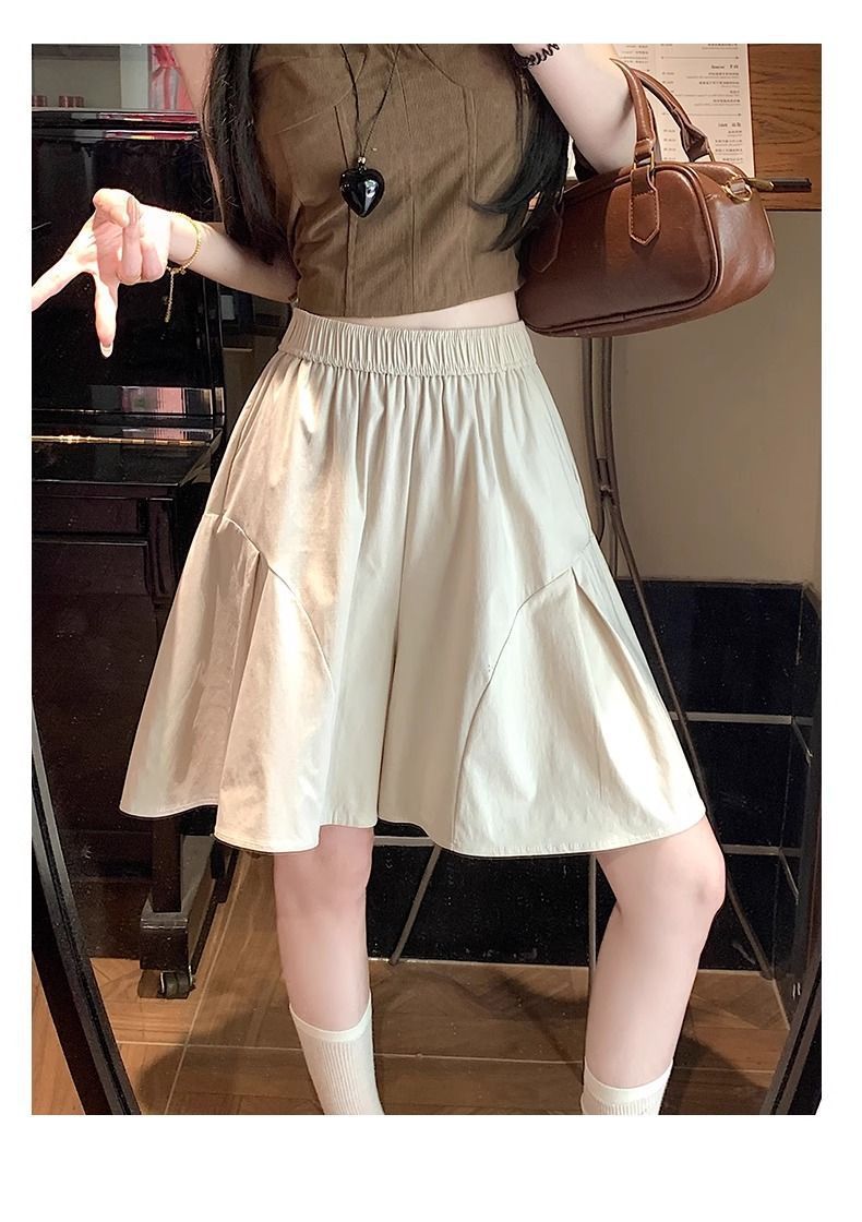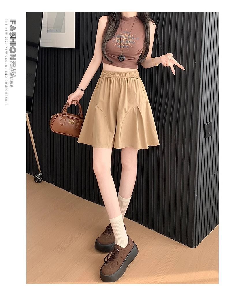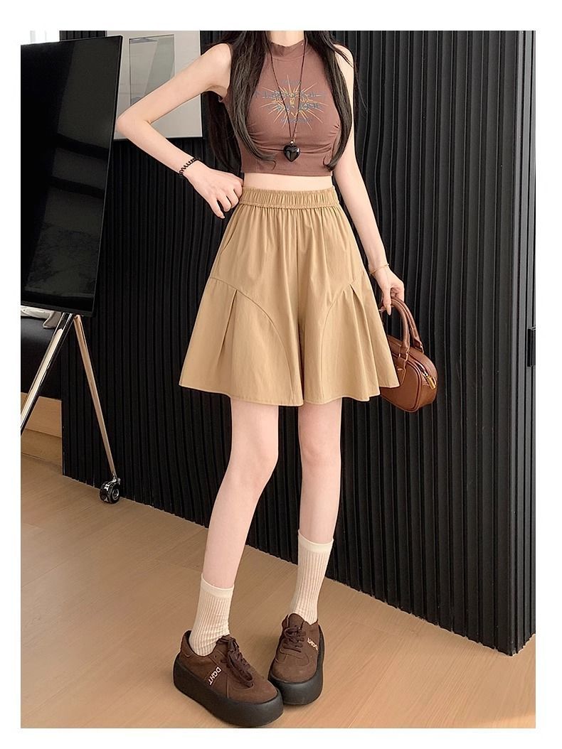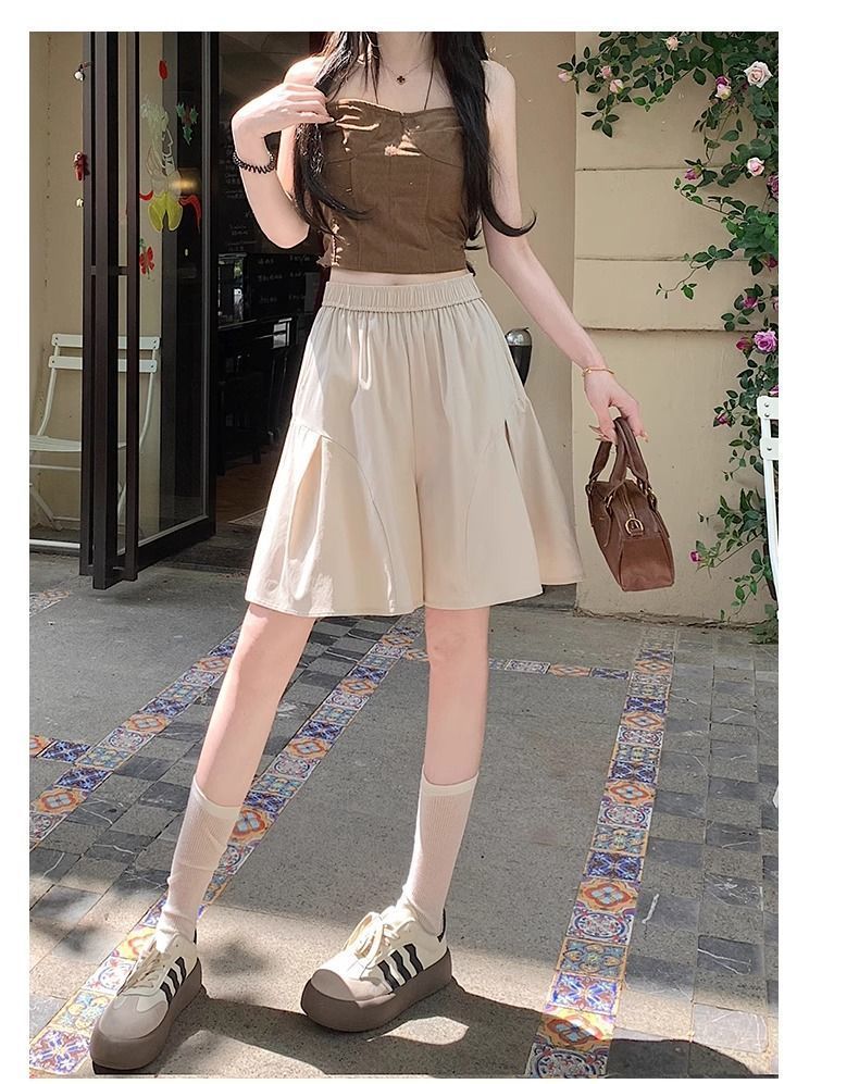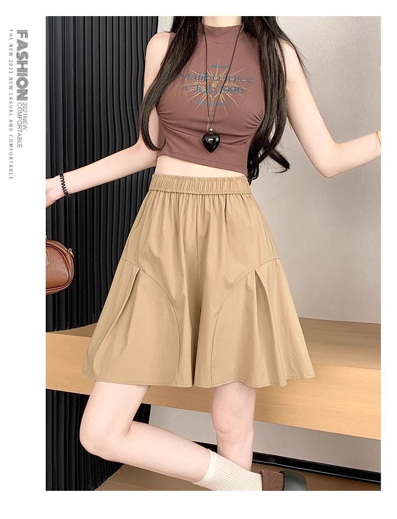레트로 아메리칸 스타일 쿼터 스커트 하이웨이스트 캐주얼 스타일 스트리트 니치 여름 다용도 여성용 얇은 슬리밍 반바지 스트레이트 팬츠