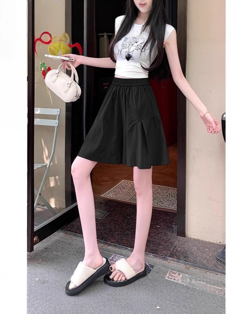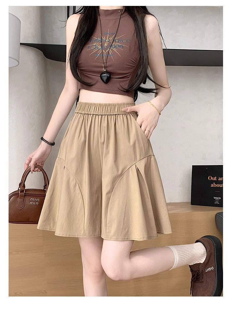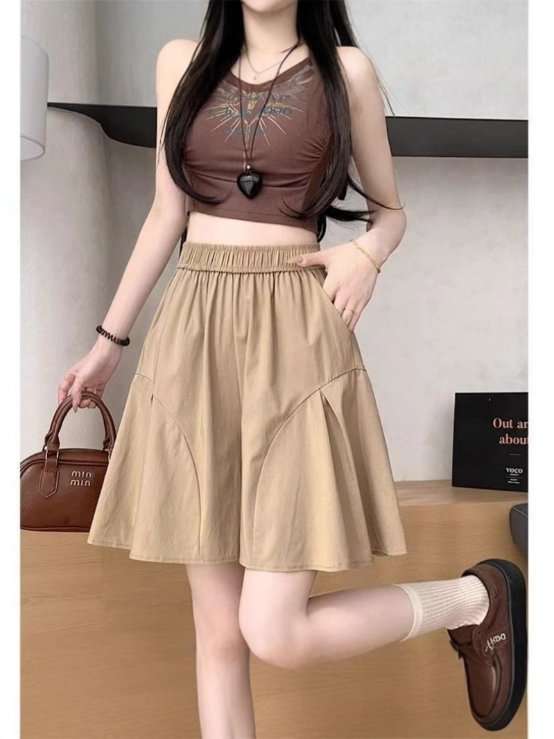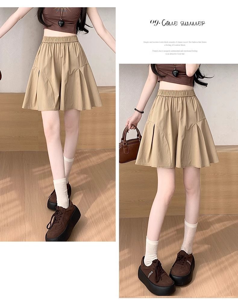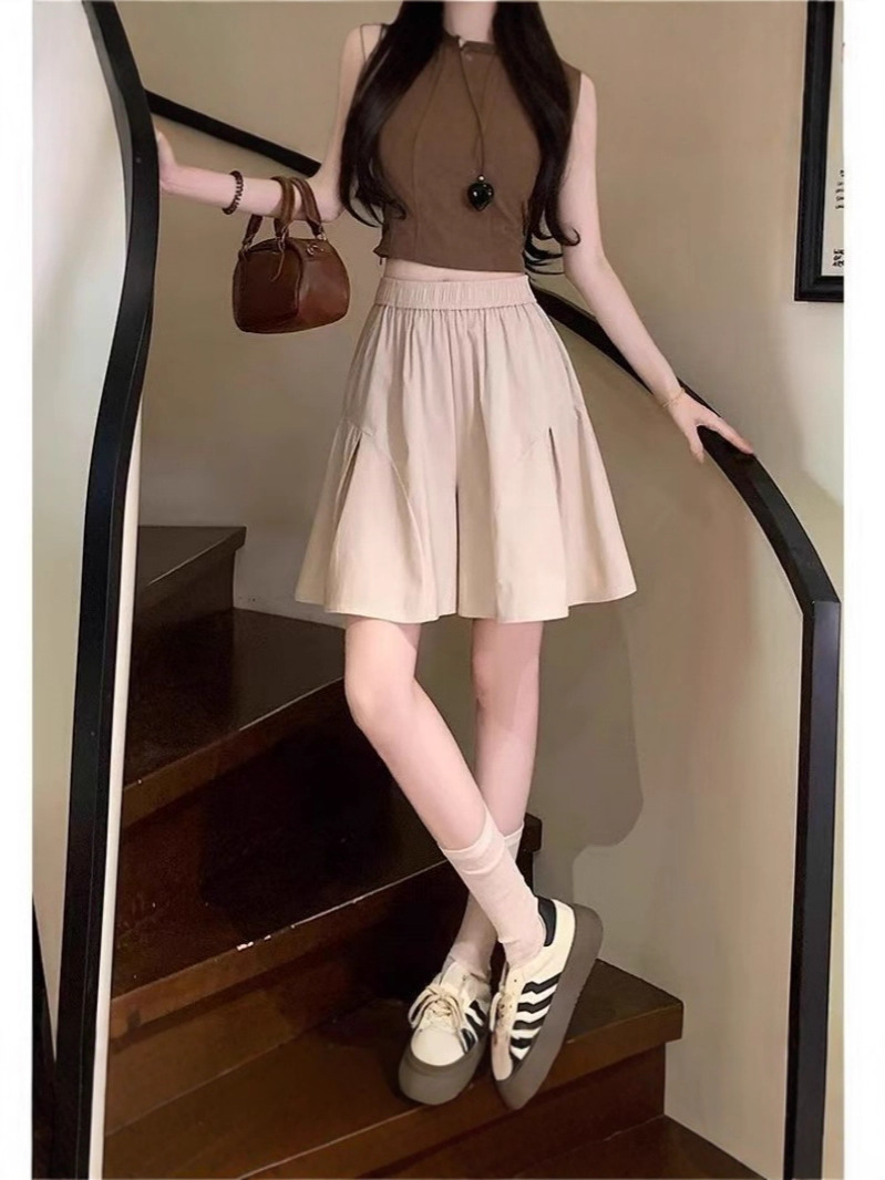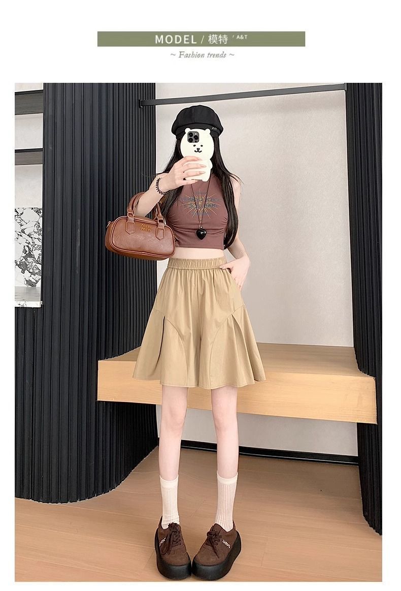 레트로 아메리칸 스타일 쿼터 스커트 하이웨이스트 캐주얼 스타일 스트리트 니치 여름 다용도 여성용 얇은 슬리밍 반바지 스트레이트 팬츠