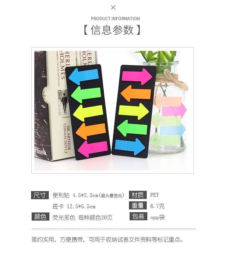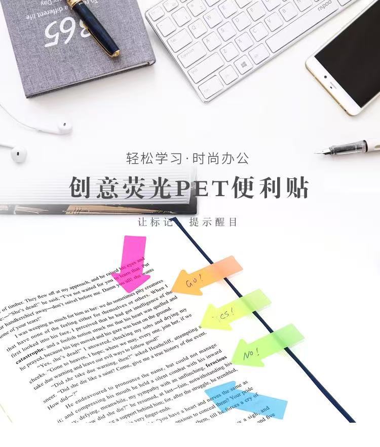 대형 화살표 투명 PET 스티커 메모 형광 컬러 인덱스 스티커 메모장 N번 사용 가능한 스티커 모란디 사무용품
