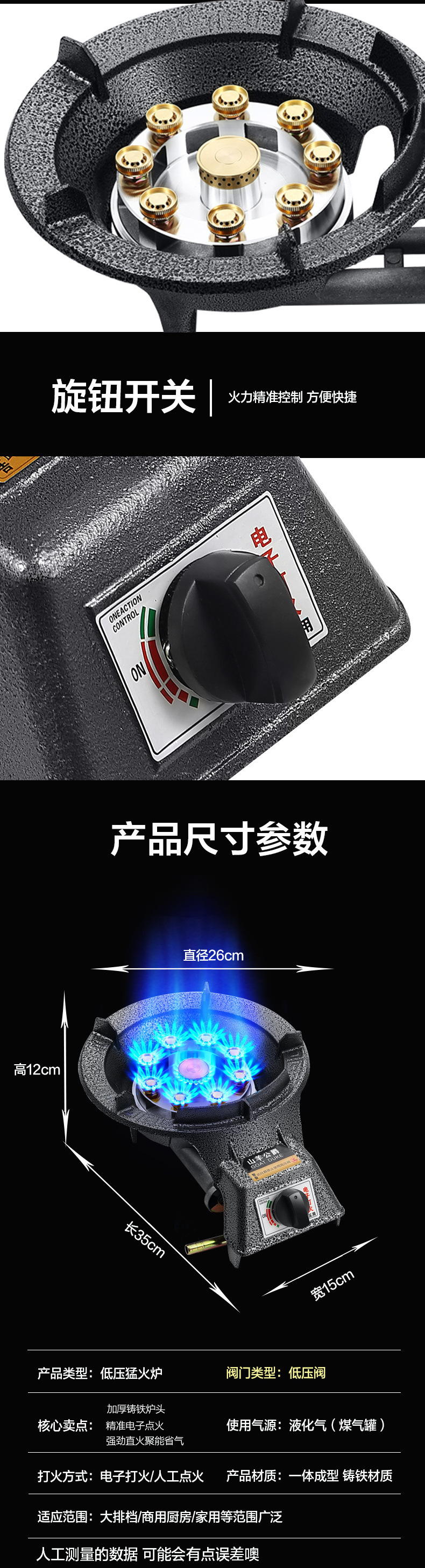 9개 헤드 + 화염정지 보장 [선물 없음] 액화 가스용 대형 구리 커버