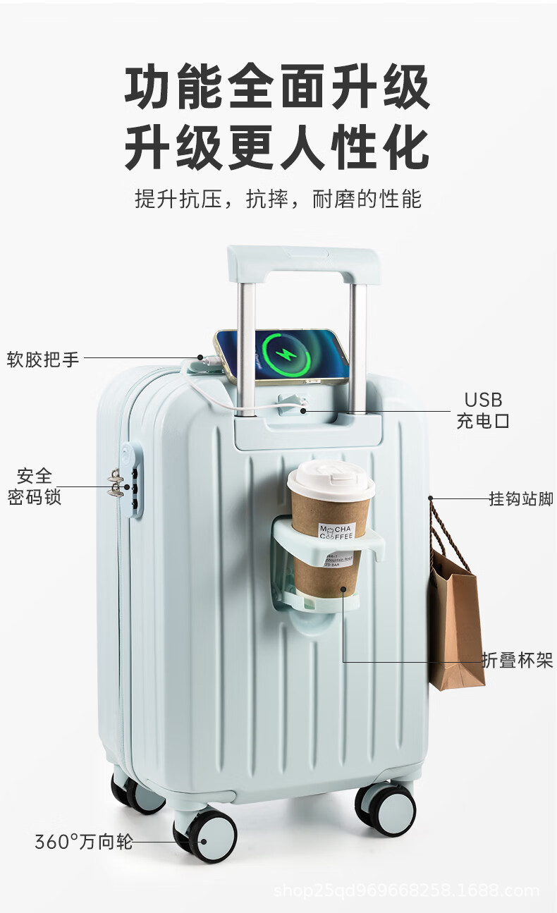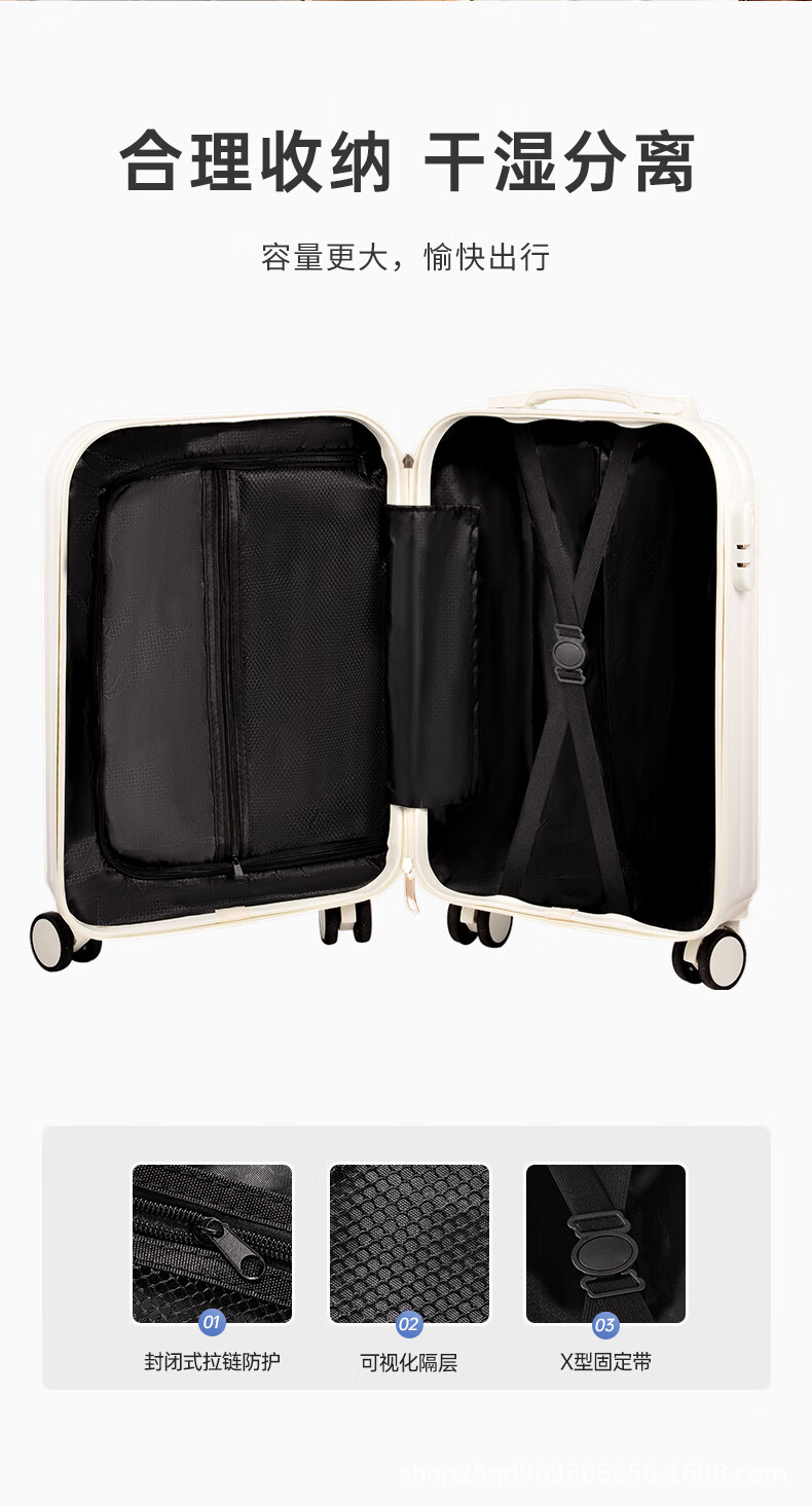 여행가방 20inch 여성용 트롤리 여행가방, 비밀번호 잠금 기능이 있는 기내용 가방, 가죽 여행가방, 회전식 바퀴가 달린 기내용 가방, 미니멀하고 가벼운 가방