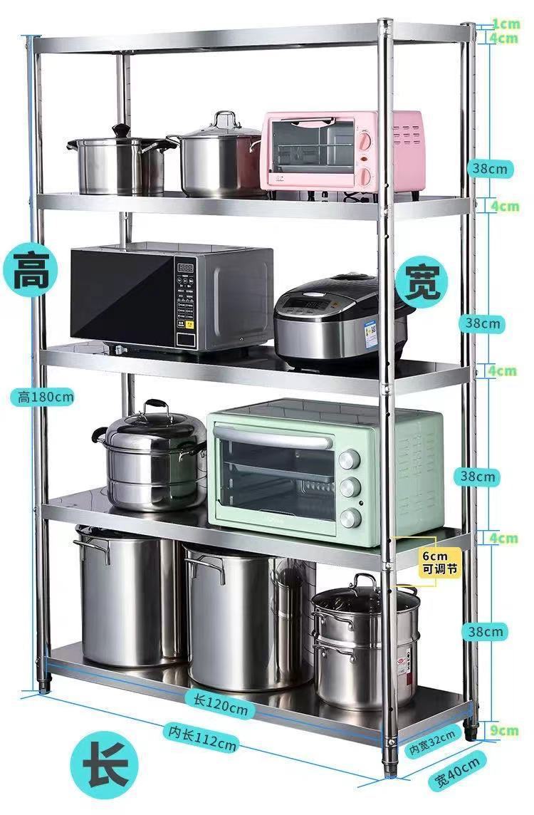두꺼운 주방 스테인레스 스틸 바닥 스탠딩 선반 다층 스토리지 랙 선반 스토리지 랙 전자 레인지 냄비 랙