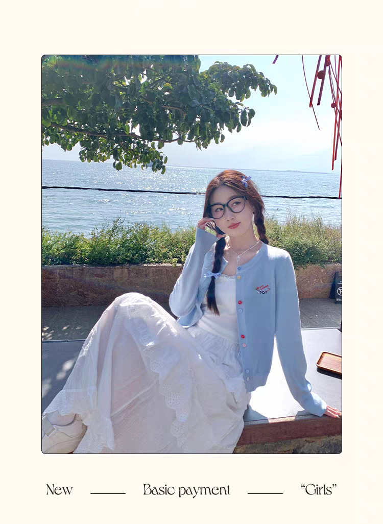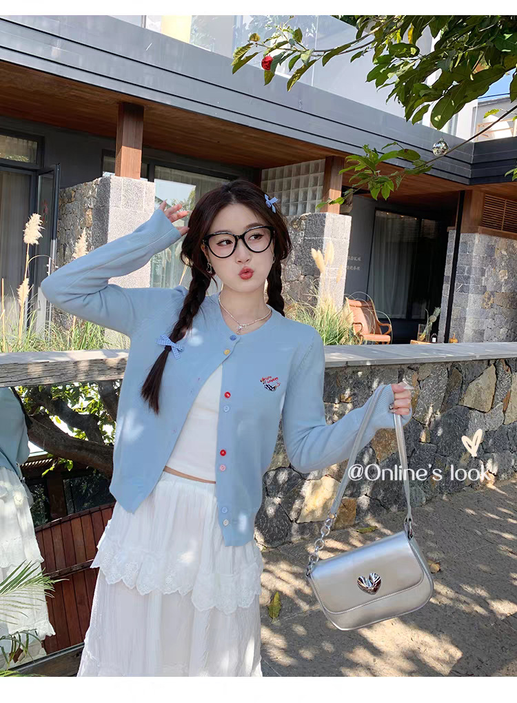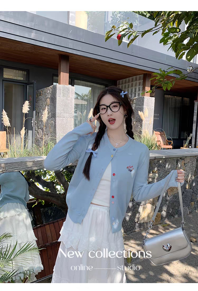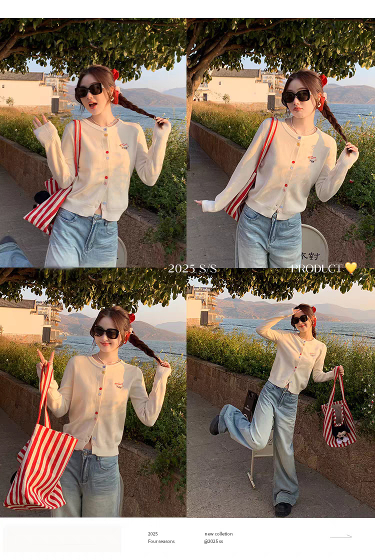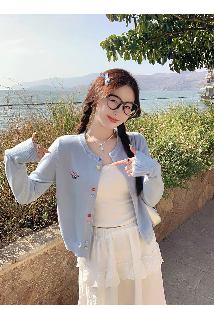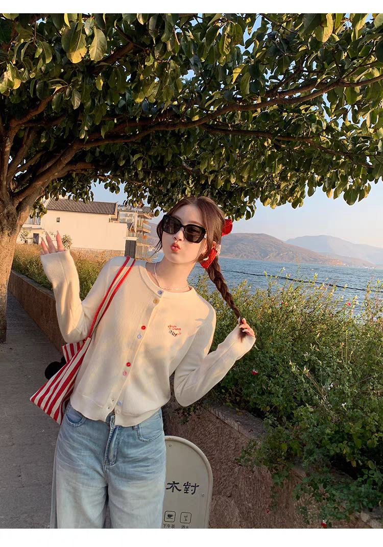 3가닥 코어스판 원사 대학 스타일 달콤한 니트 가디건 여성용 봄, 가을 아우터 탑 여성용 새 자수 인기 스웨터