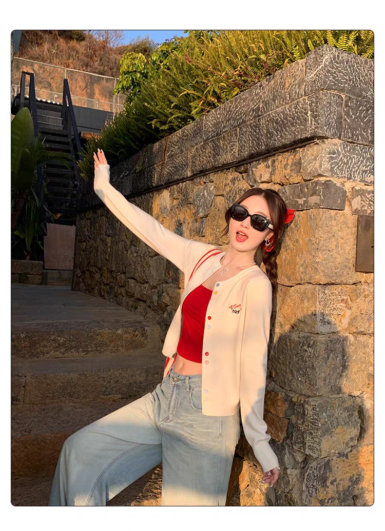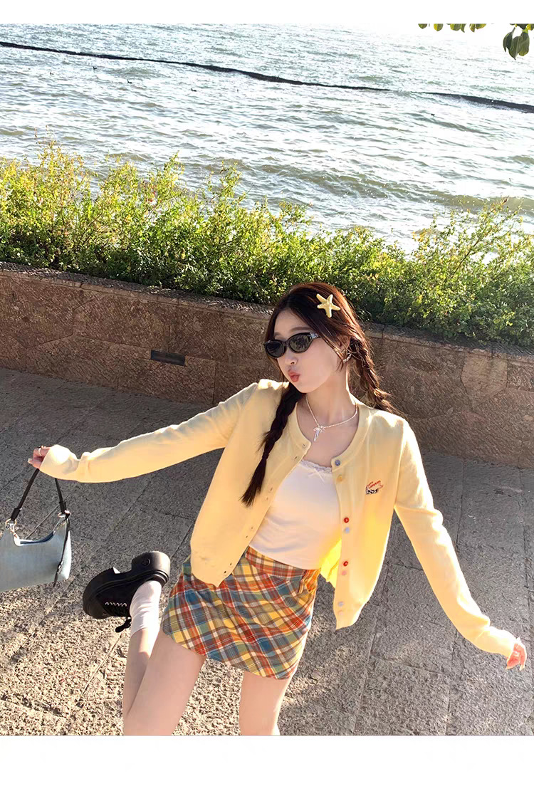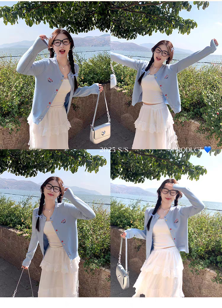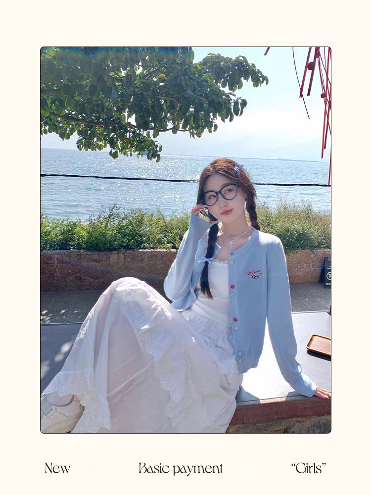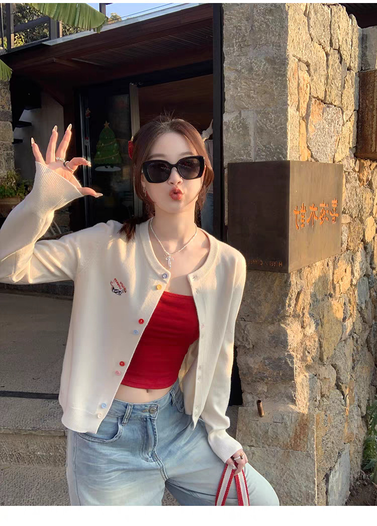 3가닥 코어스판 원사 대학 스타일 달콤한 니트 가디건 여성용 봄, 가을 아우터 탑 여성용 새 자수 인기 스웨터