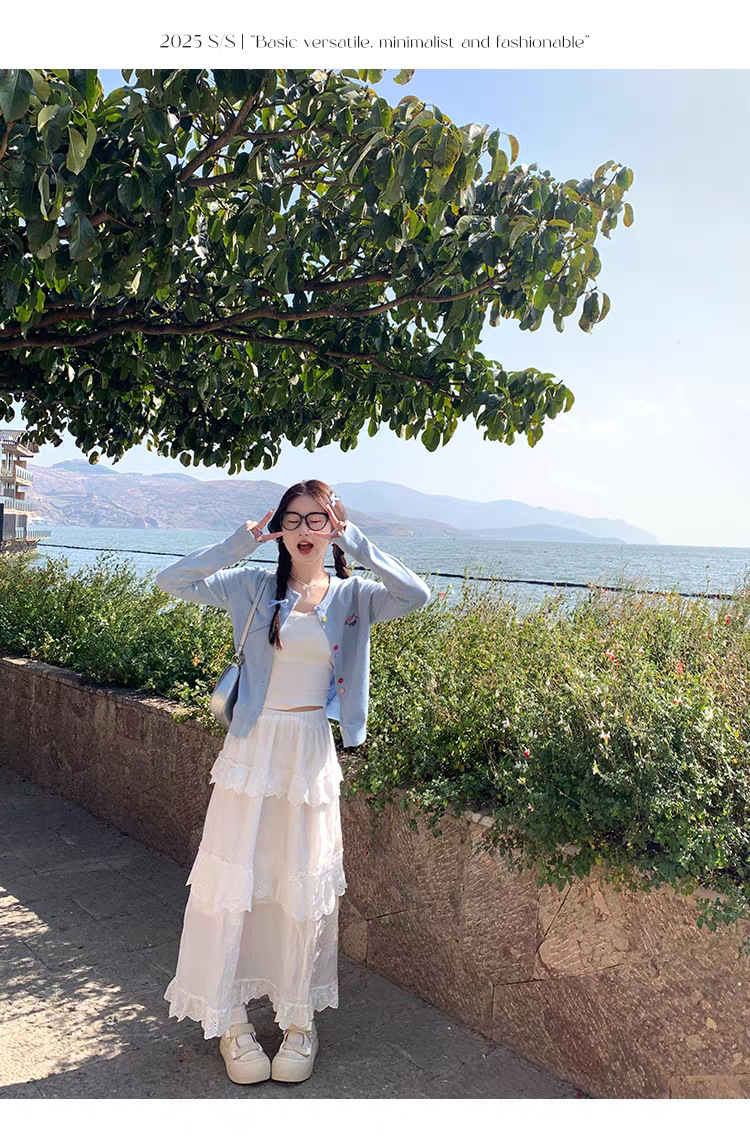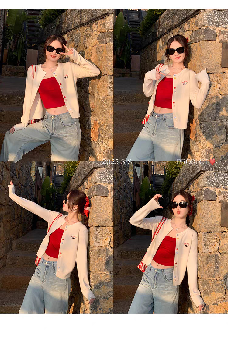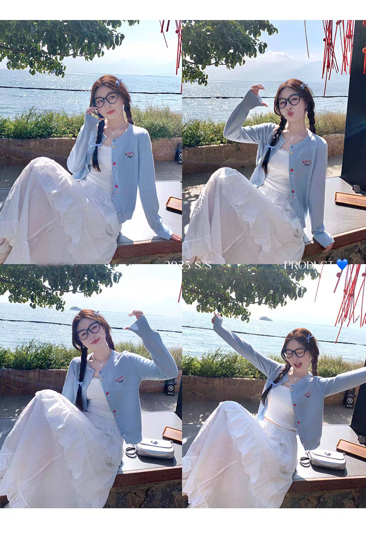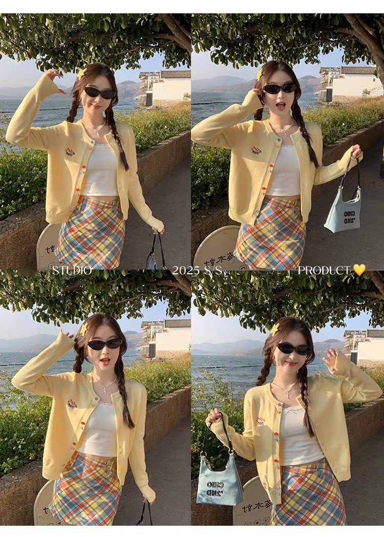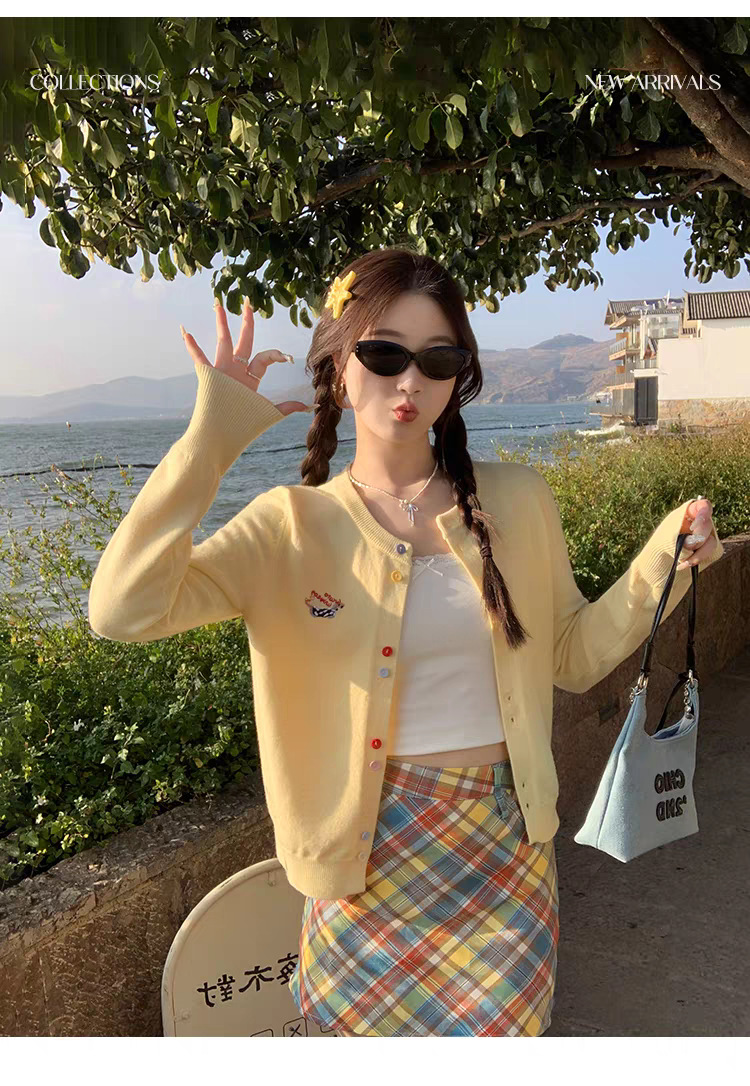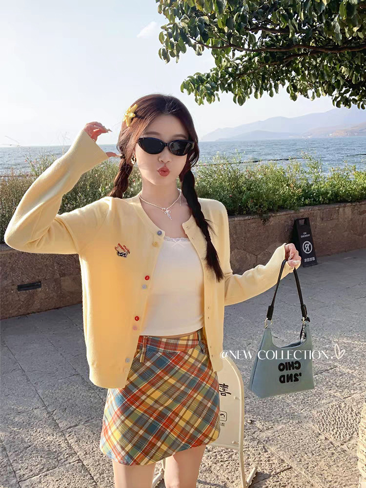 3가닥 코어스판 원사 대학 스타일 달콤한 니트 가디건 여성용 봄, 가을 아우터 탑 여성용 새 자수 인기 스웨터