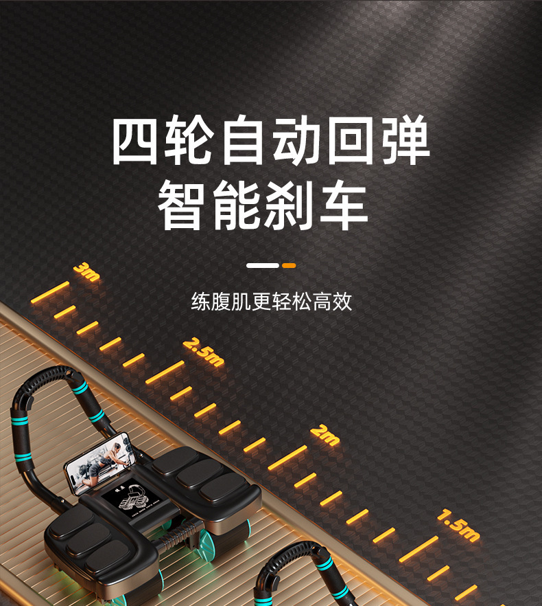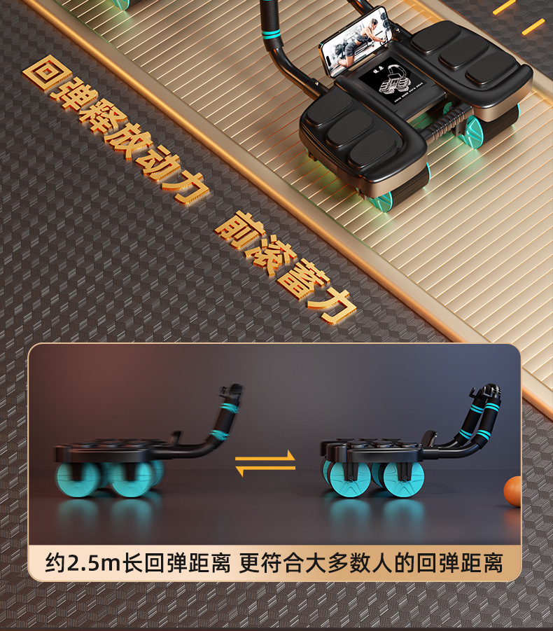 새로운 스마트 4륜 복부 휠, 자동 리바운드 팔꿈치 지지형 복근 운동 도구, 6개의 팔꿈치 지지형 복근 휠 운동