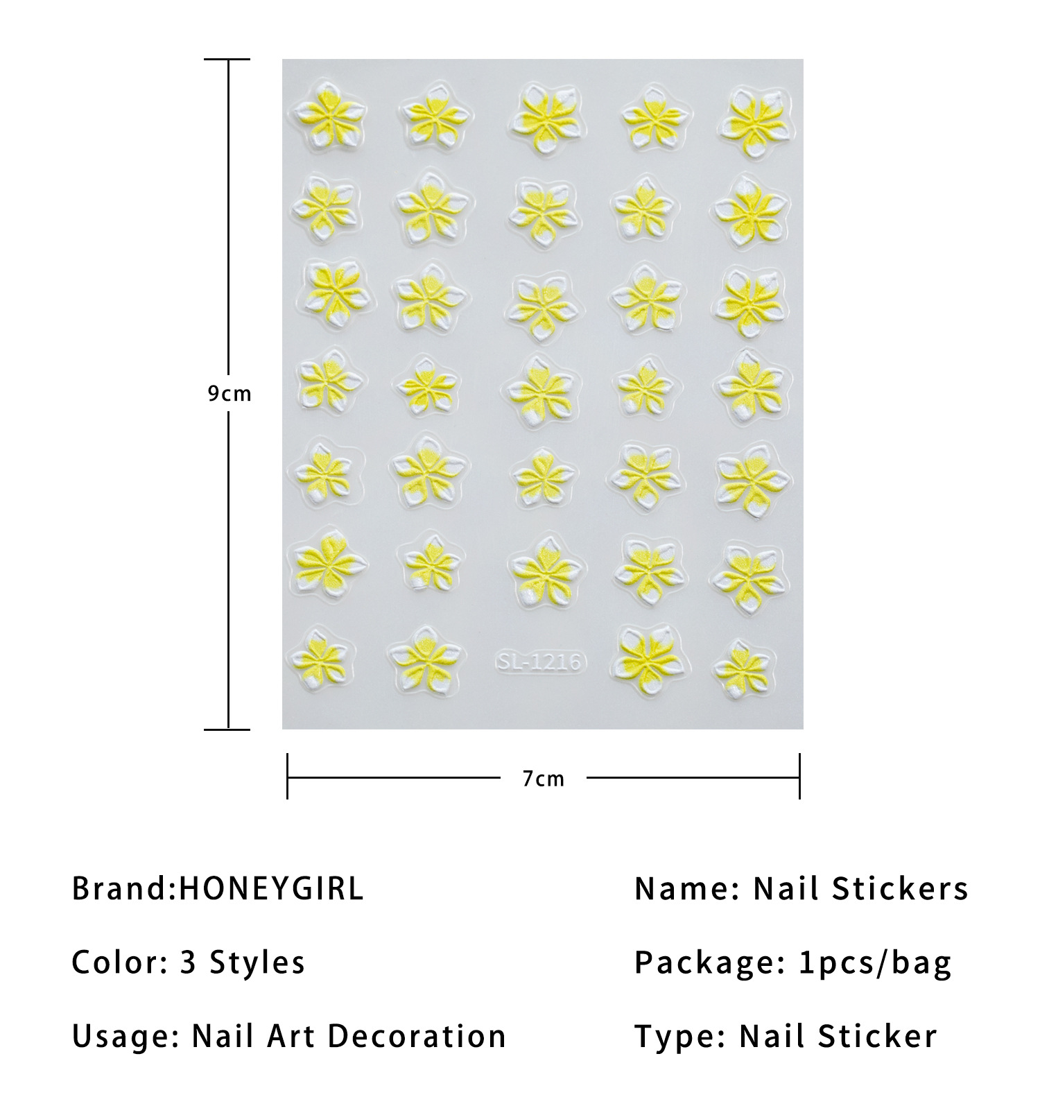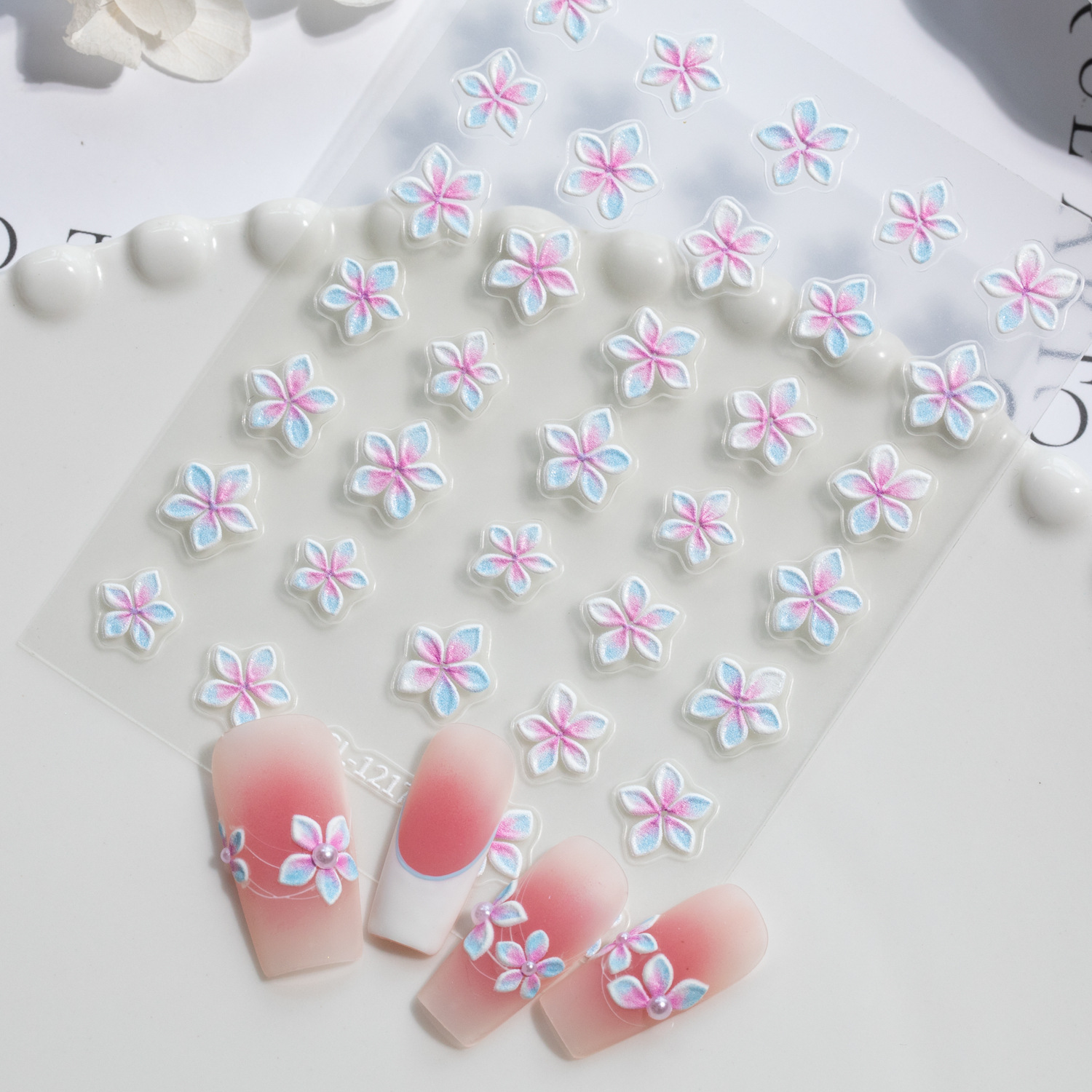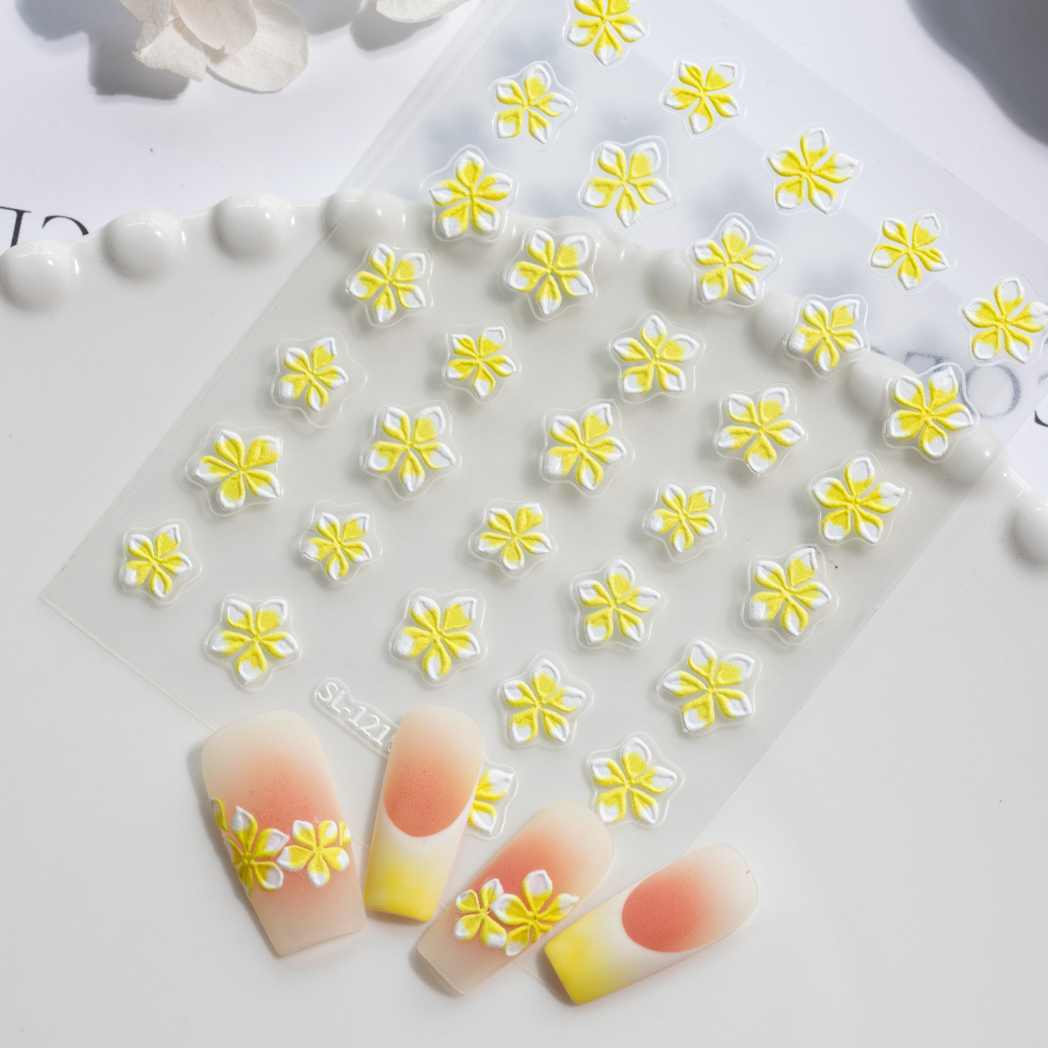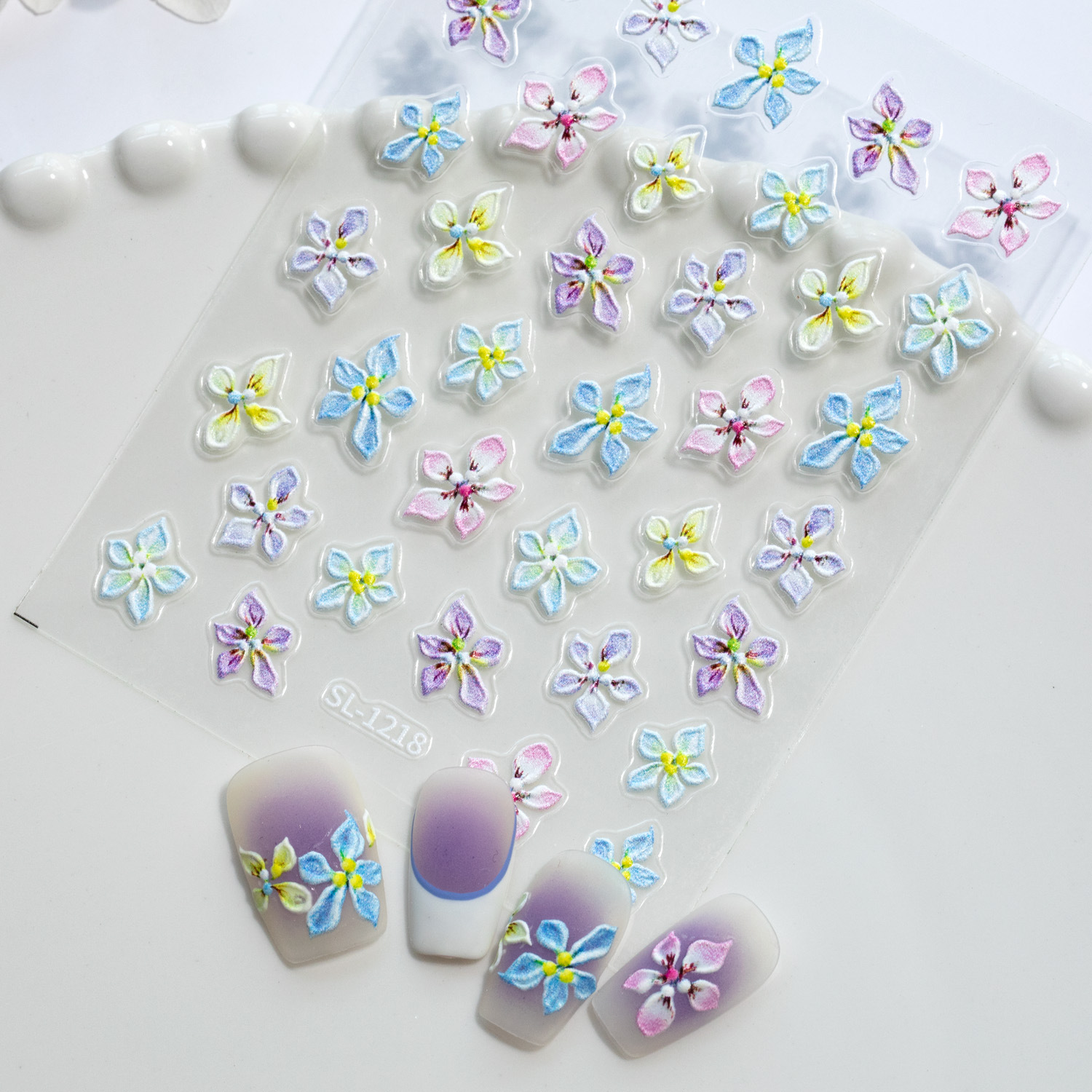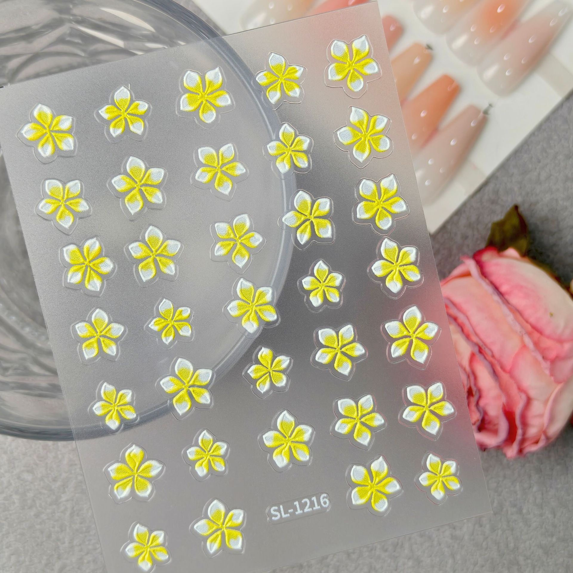작은 신선한 다섯 꽃잎 꽃 네일 아트 스티커 5D 양각 입체 다목적 화려한 꽃 네일 스티커 쥬얼리 SL 스타일
