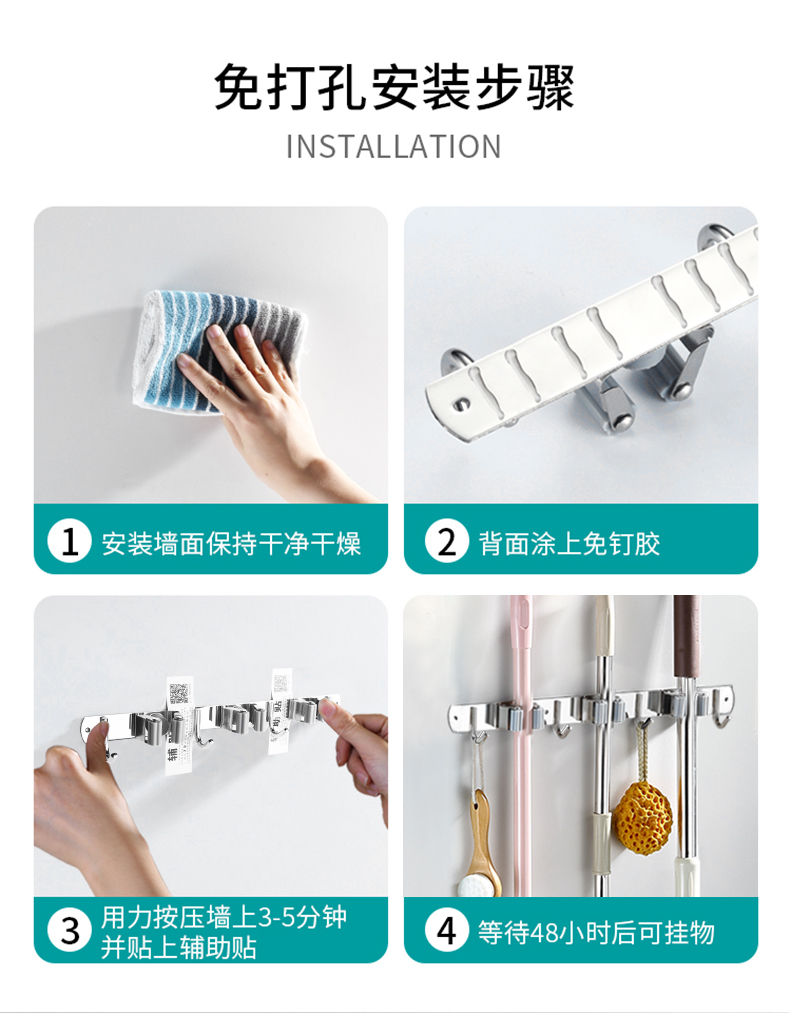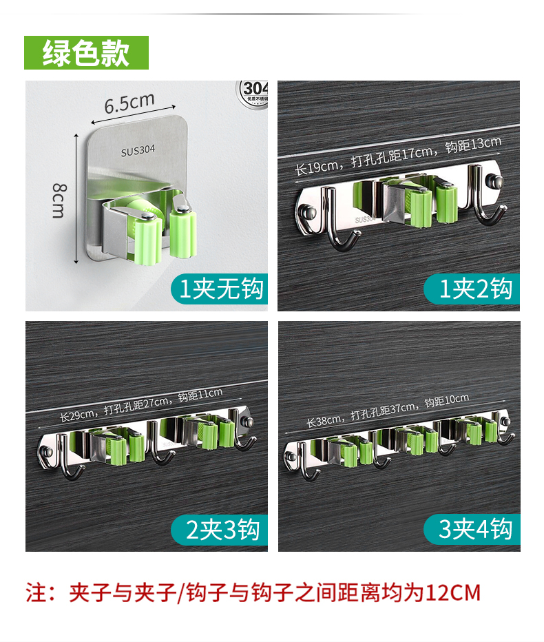 녹색 카드 홀더 1개 후크 2개[304 스테인리스 스틸] 강력 접착제 포함