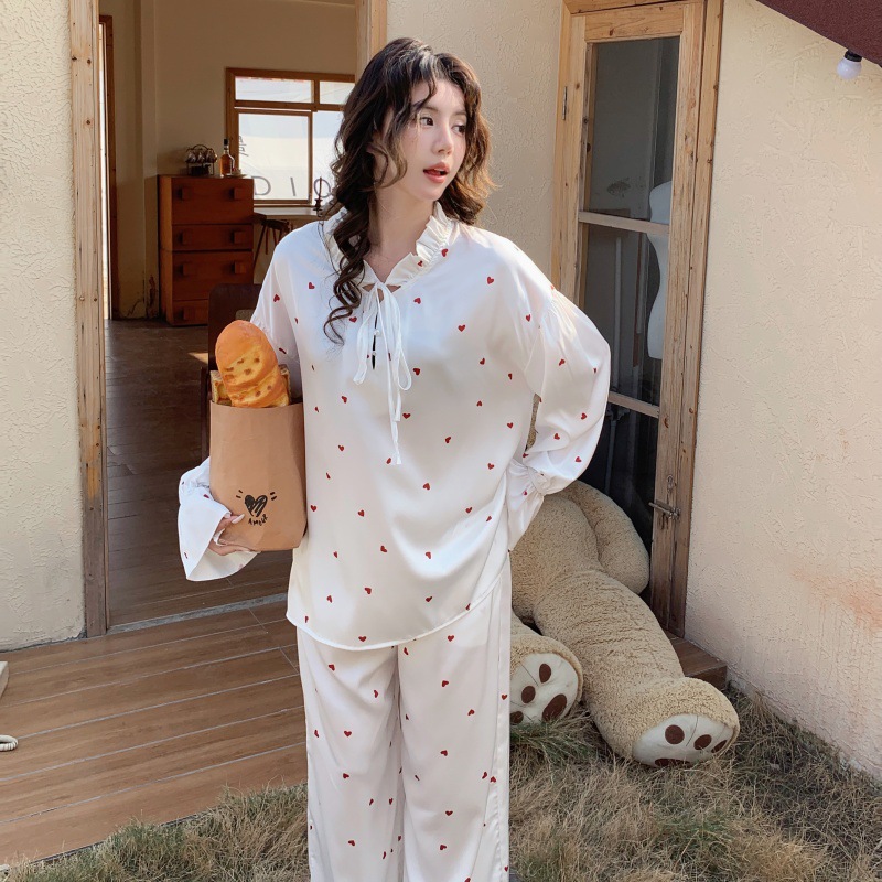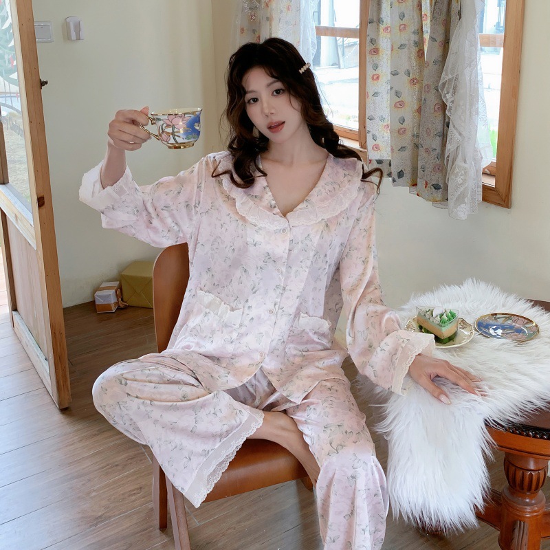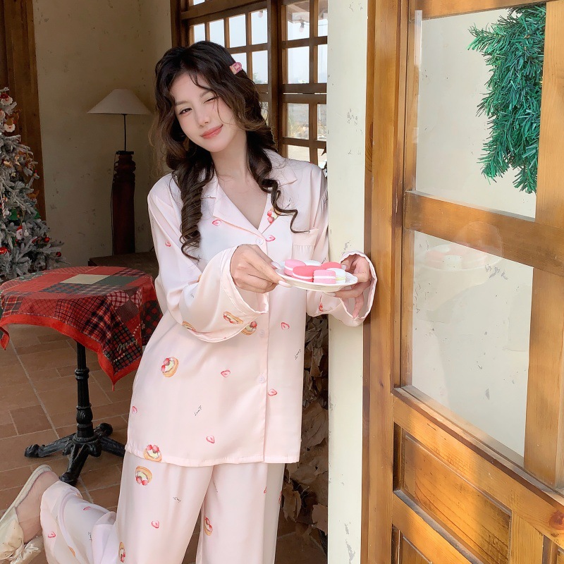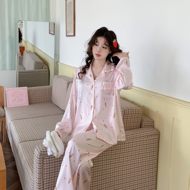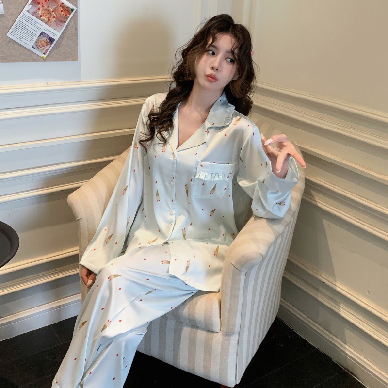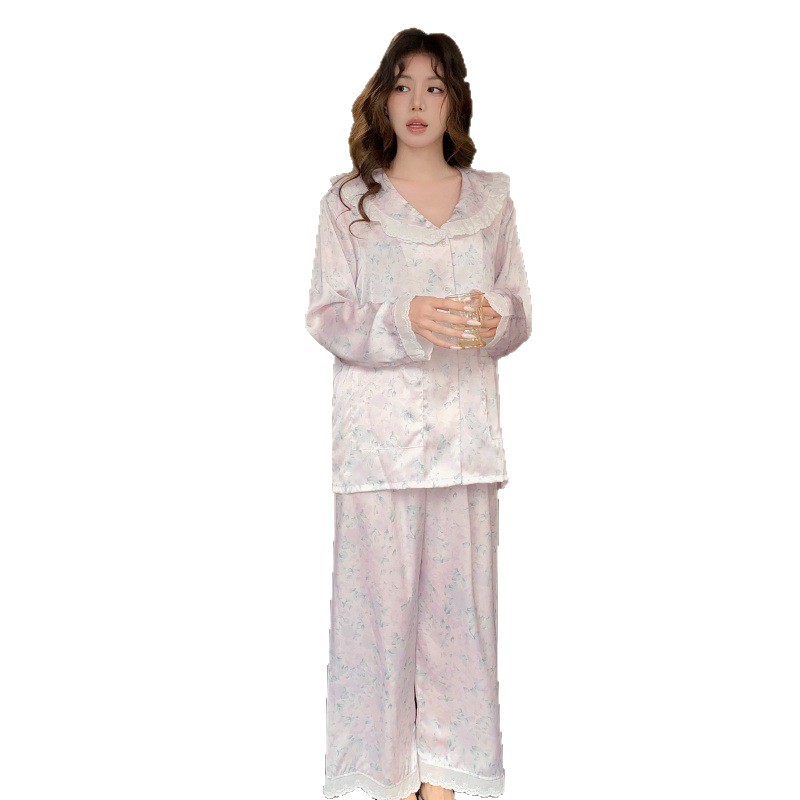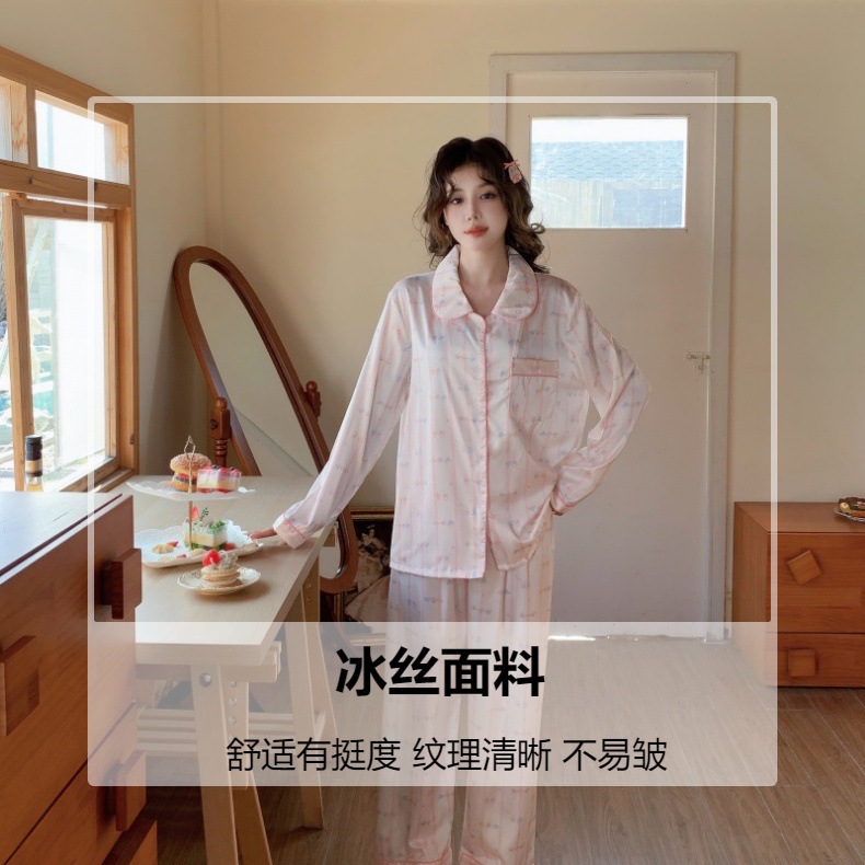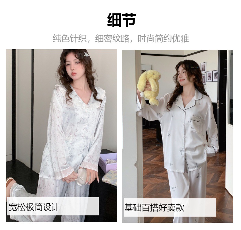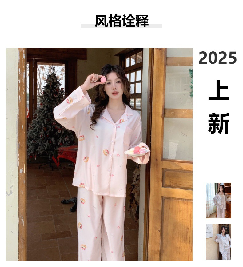 2026 봄 신상 여성용 잠옷, 긴팔 긴바지 홈웨어, 아이스 실크 느낌의 패셔너블한 동물 프린트 스위트 세트