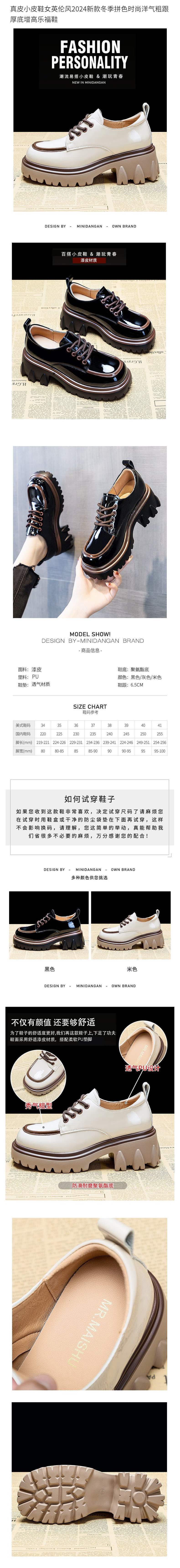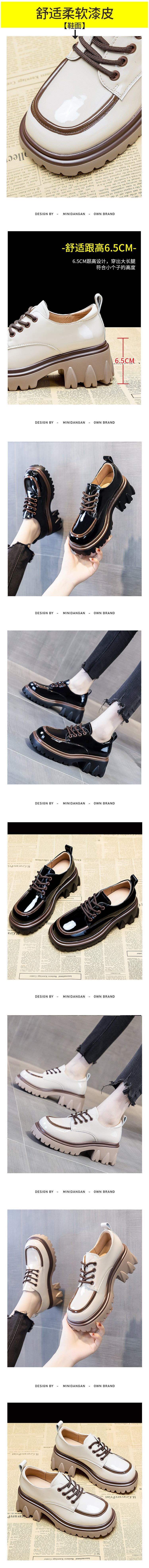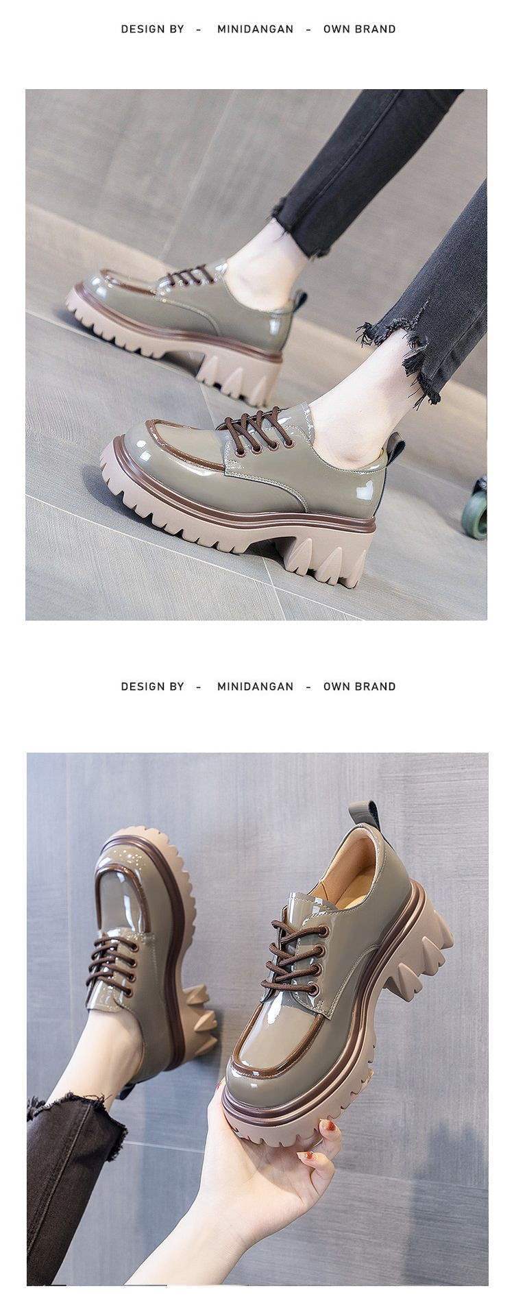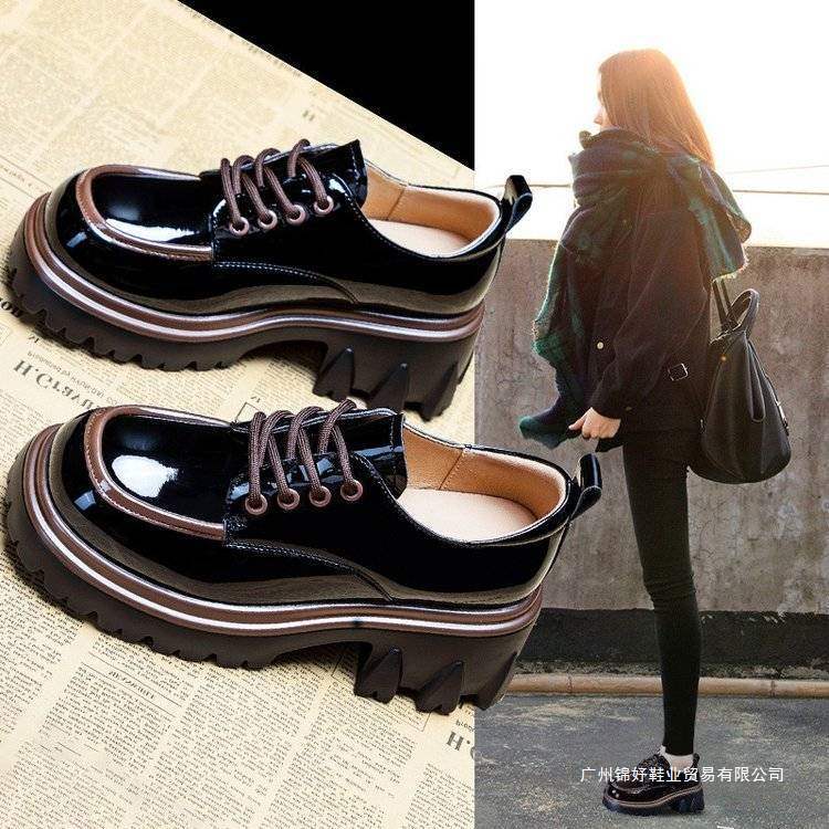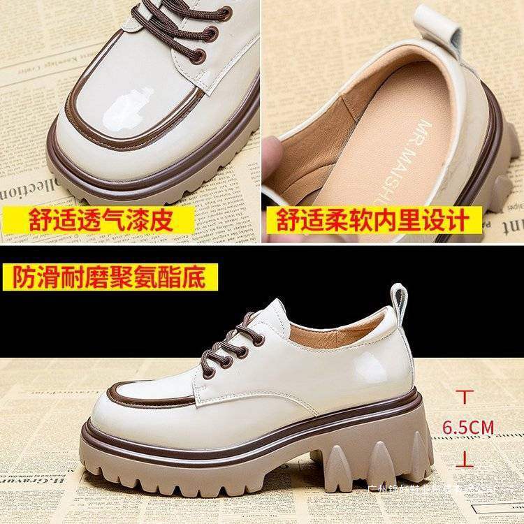 여성용 작은 가죽 신발 영국 스타일 2025 새로운 사계절 컬러 매칭 세련된 두꺼운 굽 두꺼운 밑창 높이 증가 로퍼