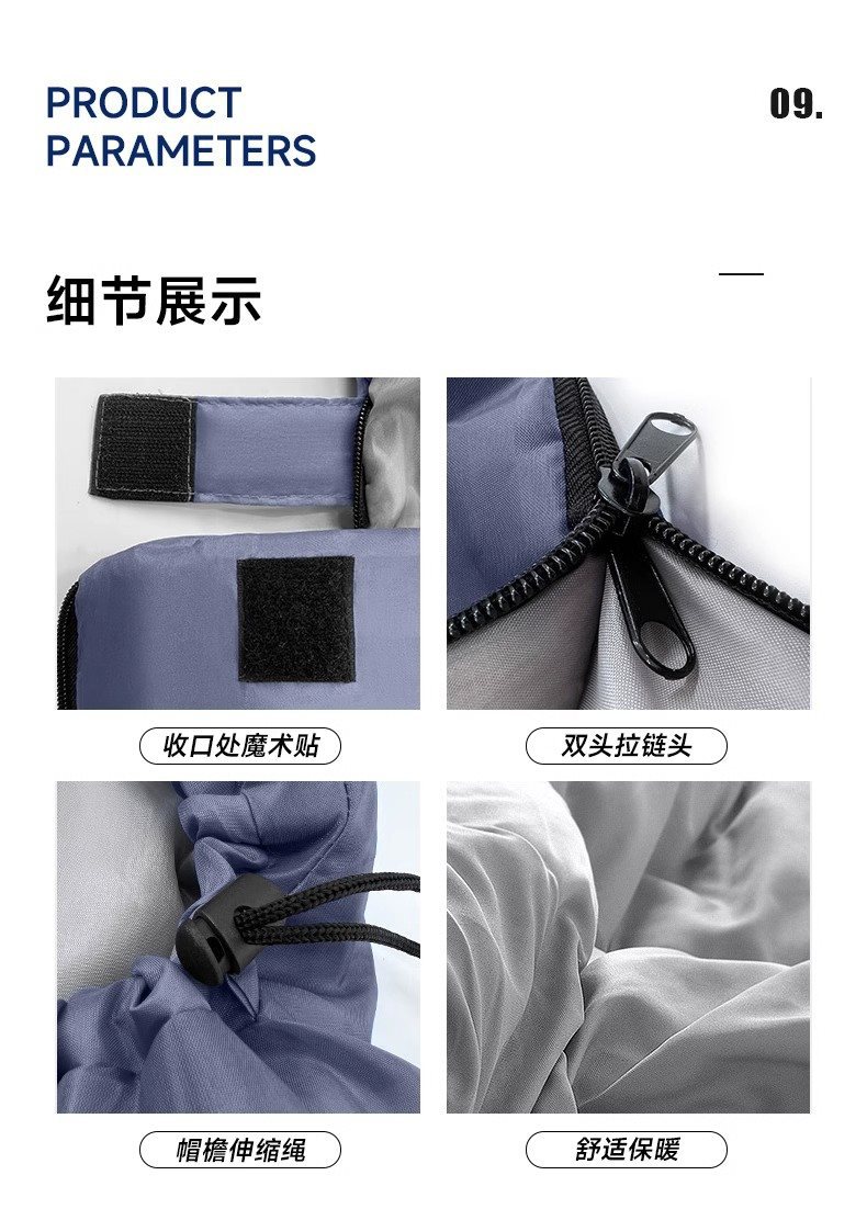 1.3kg 네이비 블루 베개 + 침낭, 약 10-15도에 적합