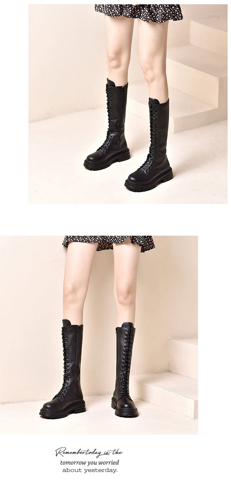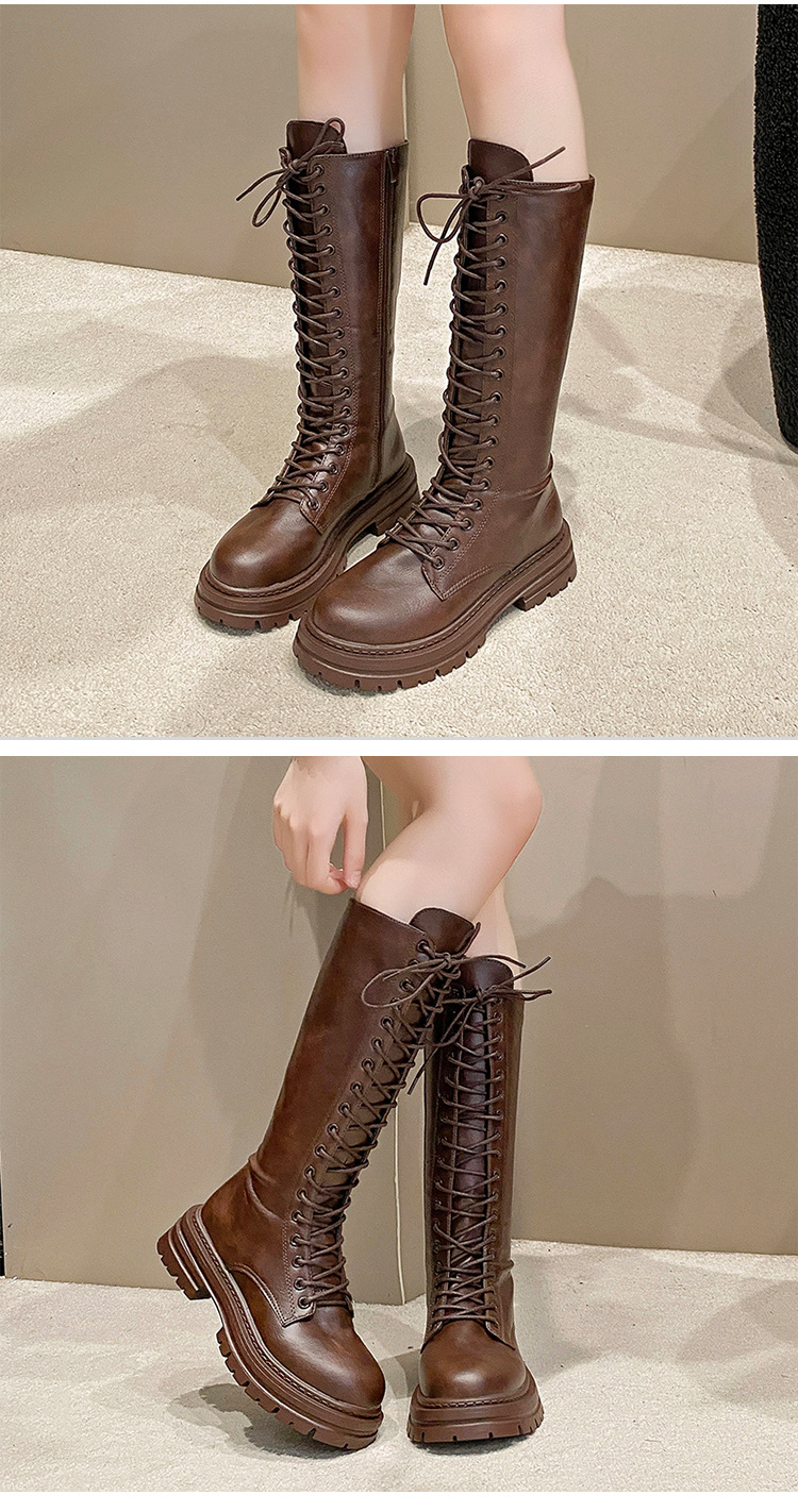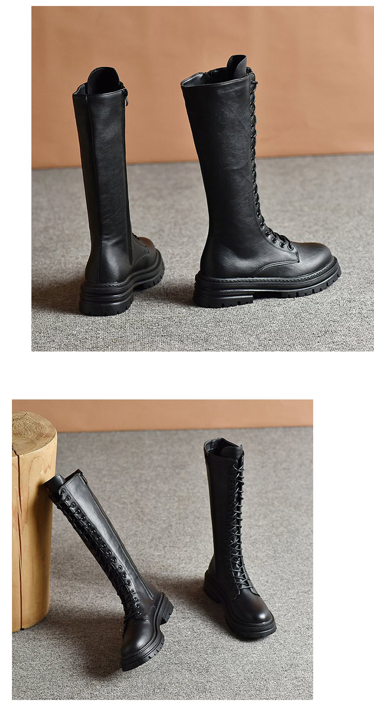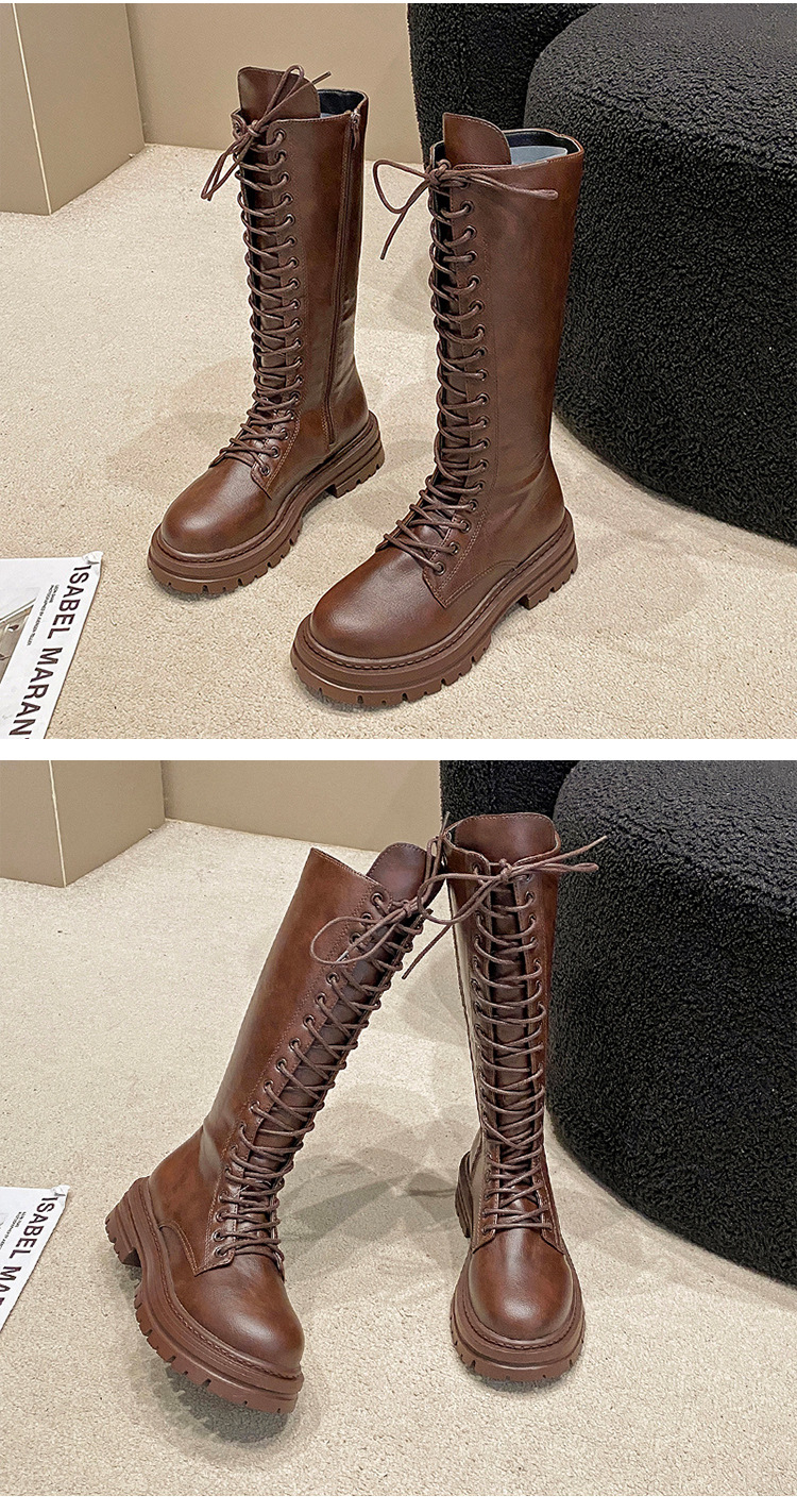 레트로 대형 크로스 보더 나이트 부츠 2025 가을 새로운 두꺼운 밑창 사이드 지퍼 영국 스타일 하이 부츠 여성 사이즈 43