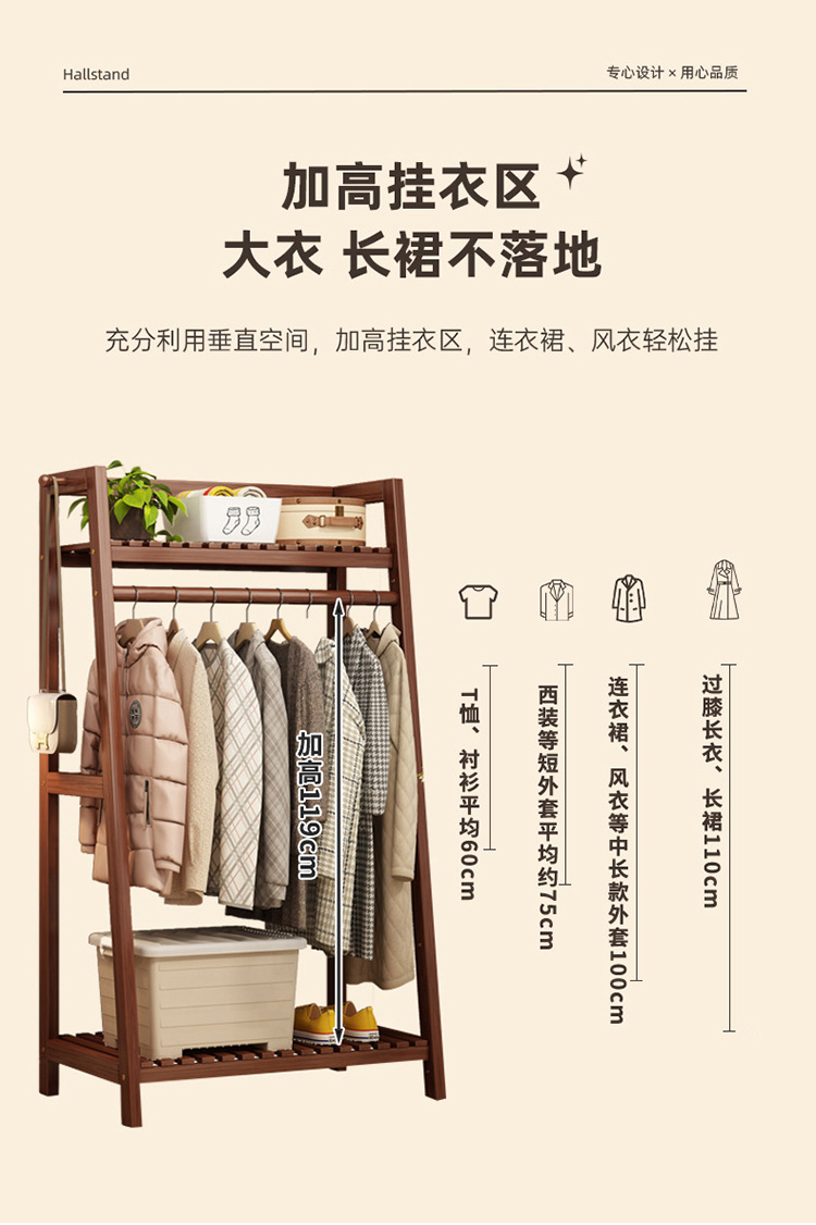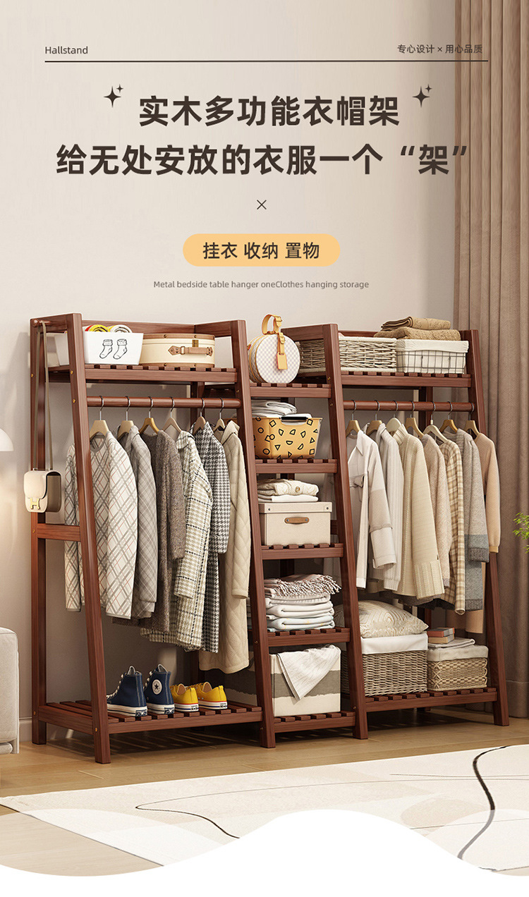단단한 나무 침실 바닥 옷걸이 가정용 간단한 나무 옷걸이 간단한 현대 옷걸이 옷걸이 코트 랙