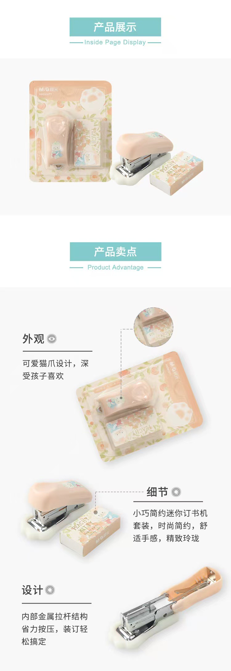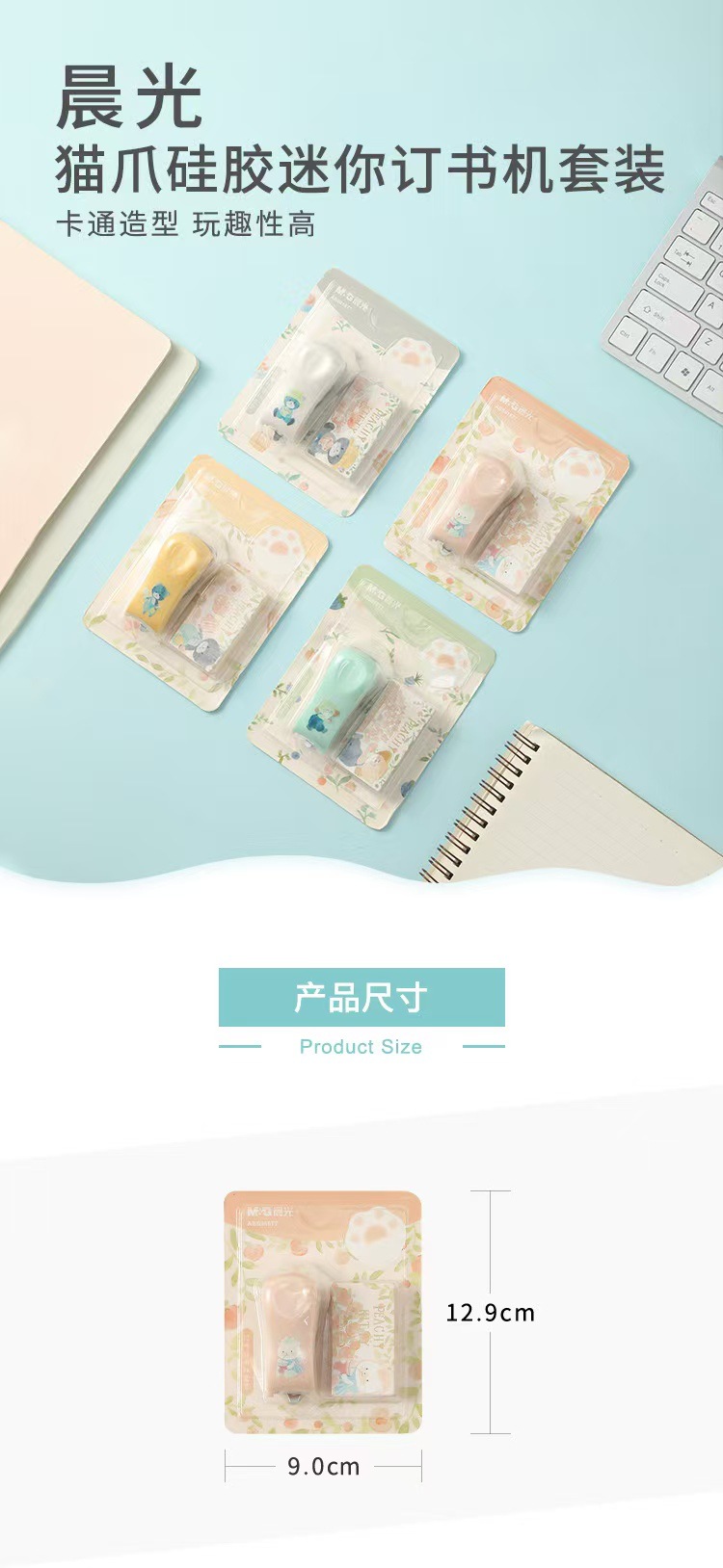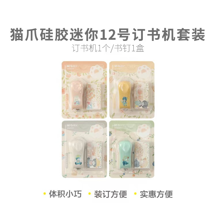 Chenguang 문구 No. 12 스테이플러 Naughty Meow Meow Cat Claw 세트 학생 바인딩 사무용품 스테이플러 세트