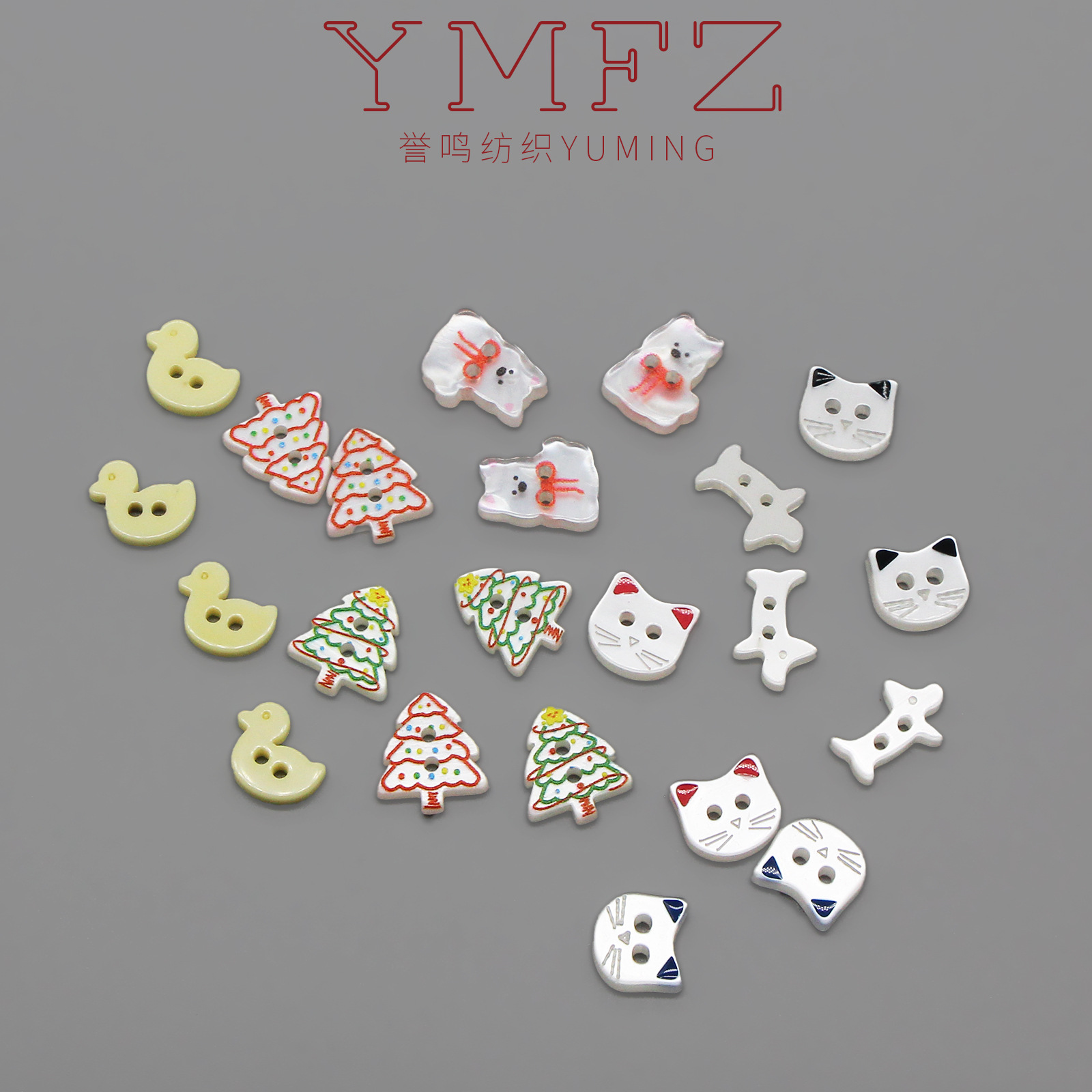 웨스트 하이랜드 강아지 단추 어린이 귀여운 만화 두 눈 단추 크리스마스 트리 컬러 스웨터 장식 수지 단추