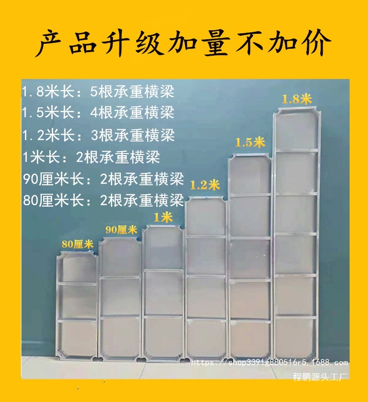 두꺼워진 길이 180cm 너비 30cm 높이 3kg 조정 가능한 층 간격으로 강화된 5개의 내력 빔