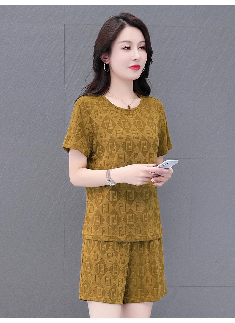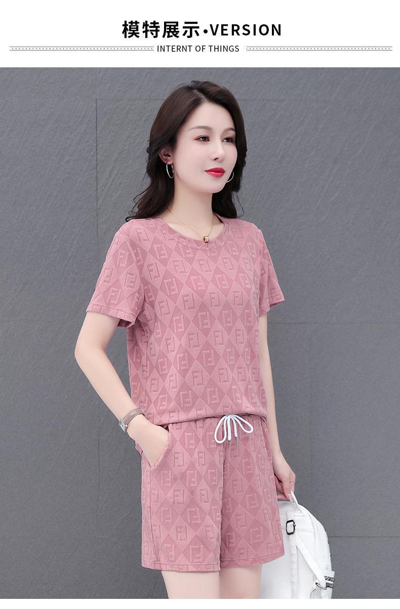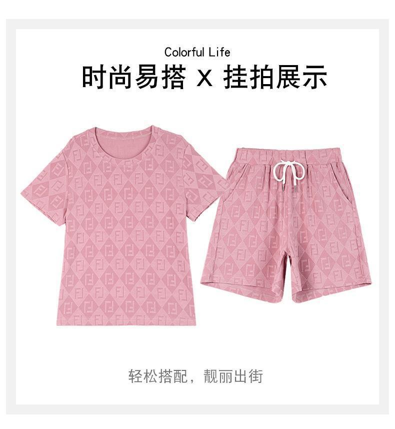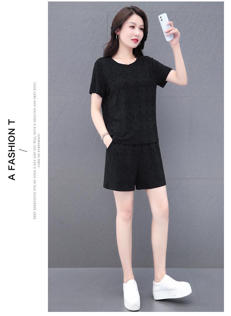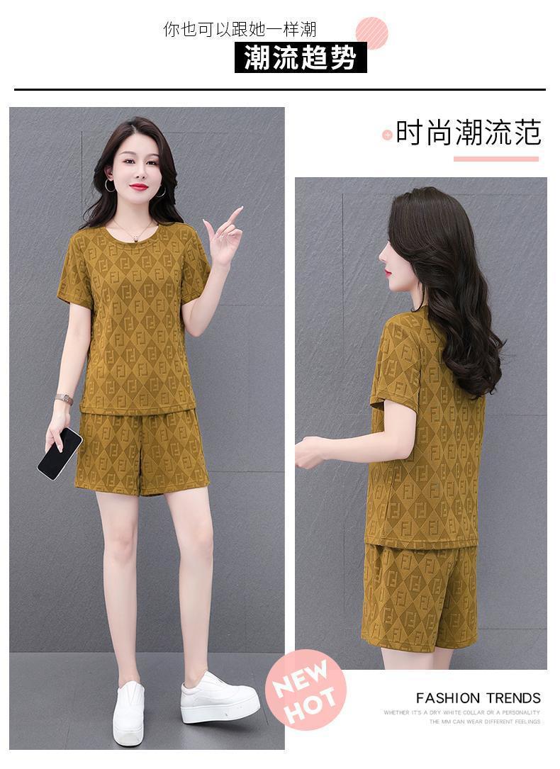 대외 무역 얼음 실크 패션 반팔 반바지 5부 바지 정장 여성 운동복 새로운 여름 캐주얼웨어 투피스 세트
