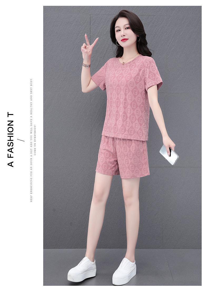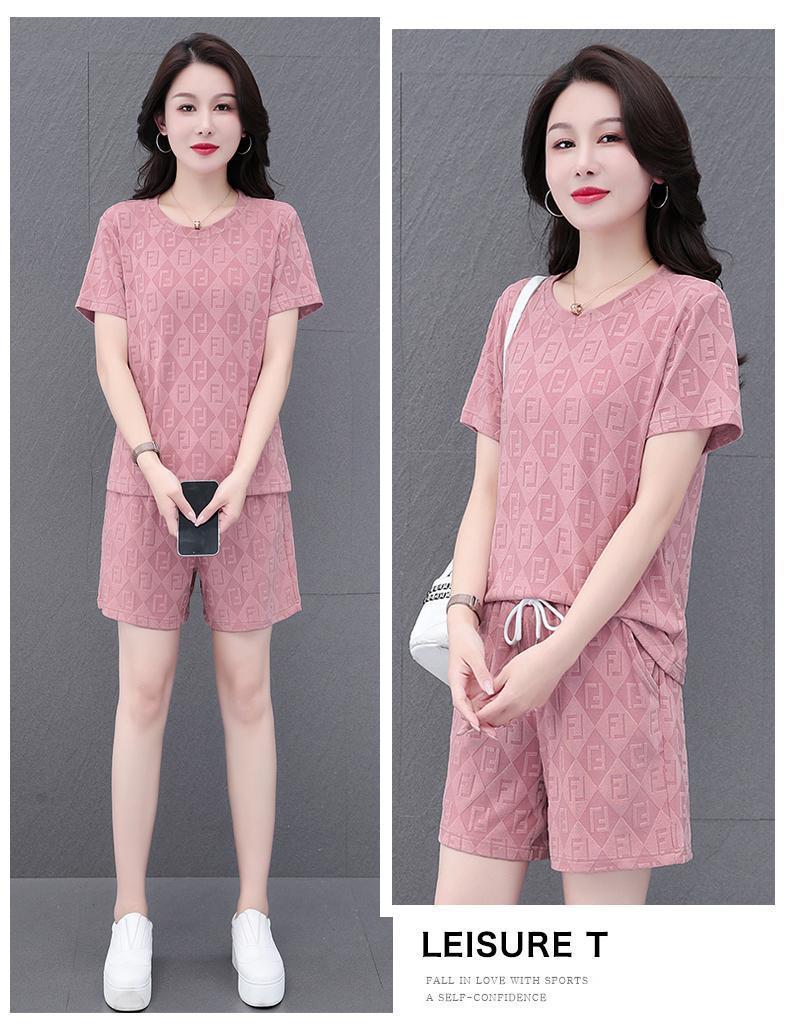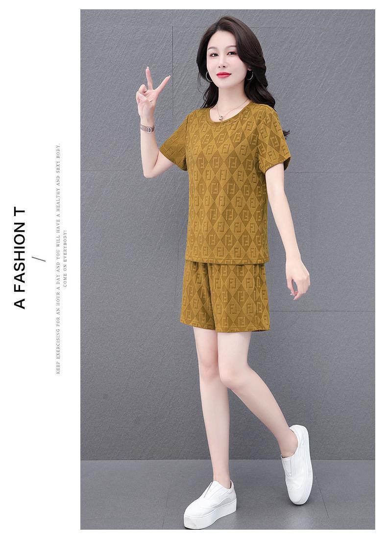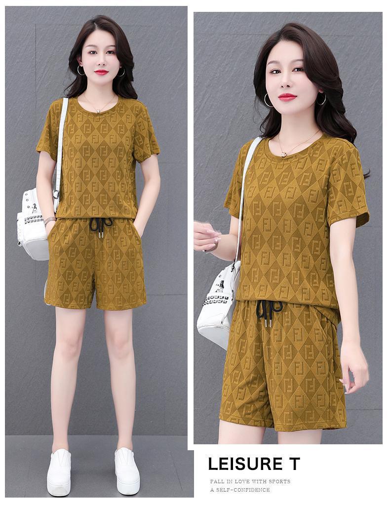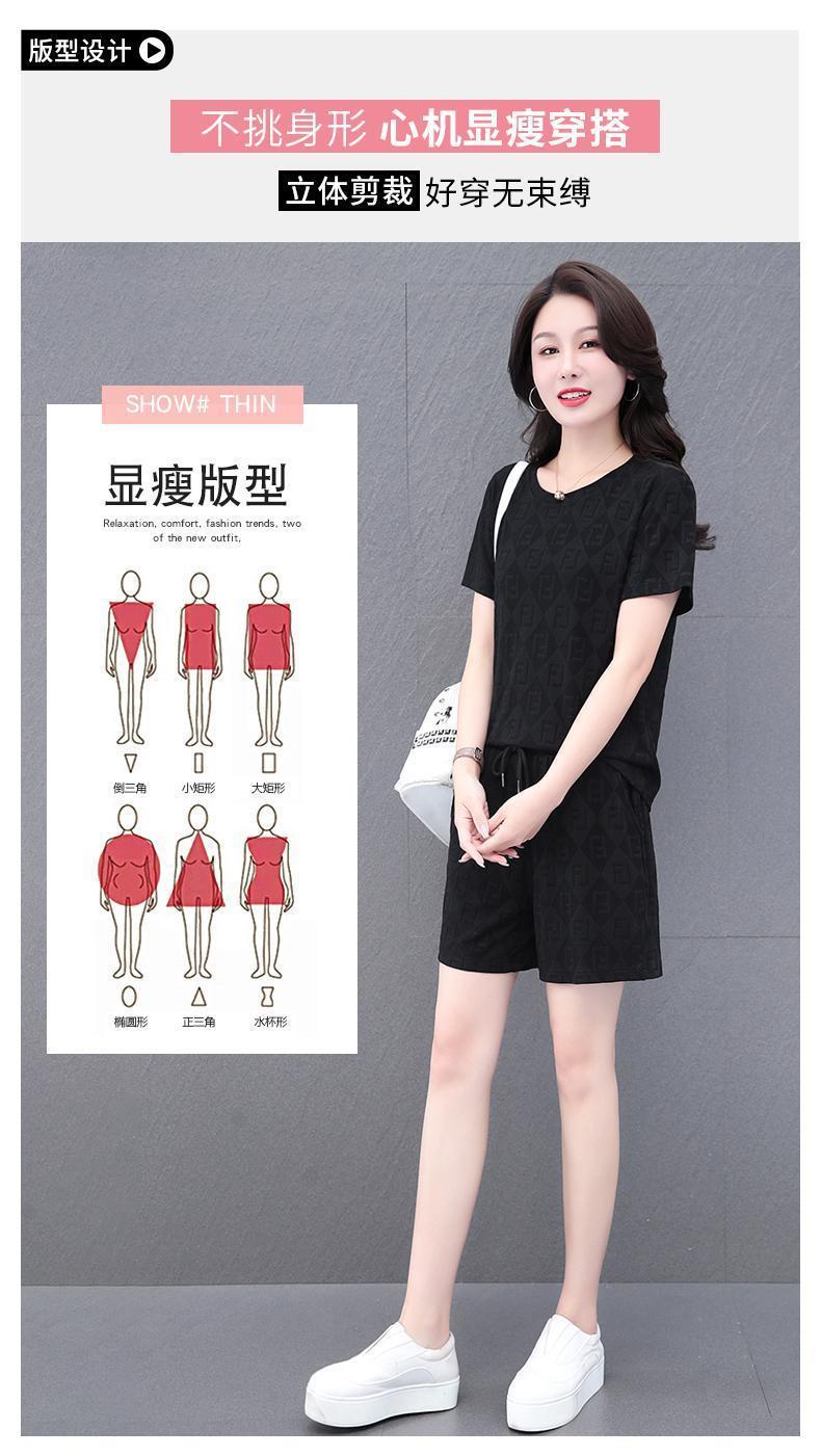 대외 무역 얼음 실크 패션 반팔 반바지 5부 바지 정장 여성 운동복 새로운 여름 캐주얼웨어 투피스 세트