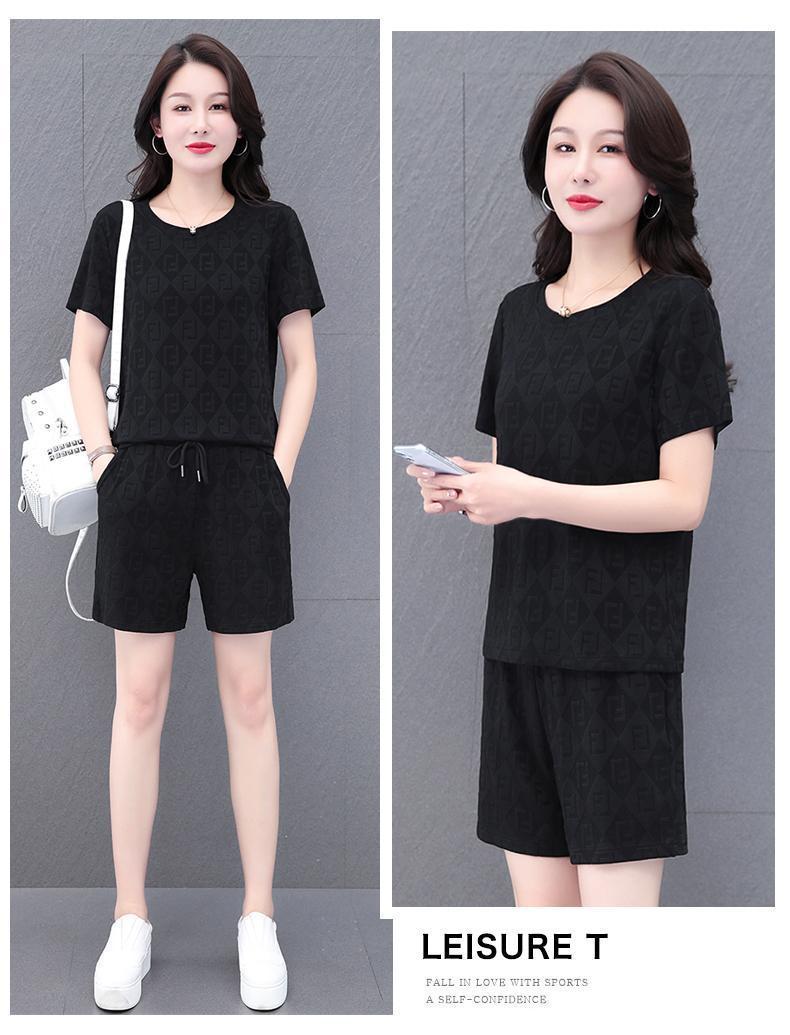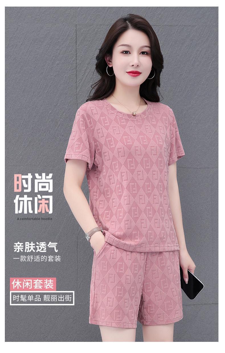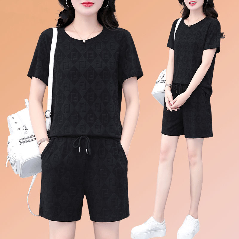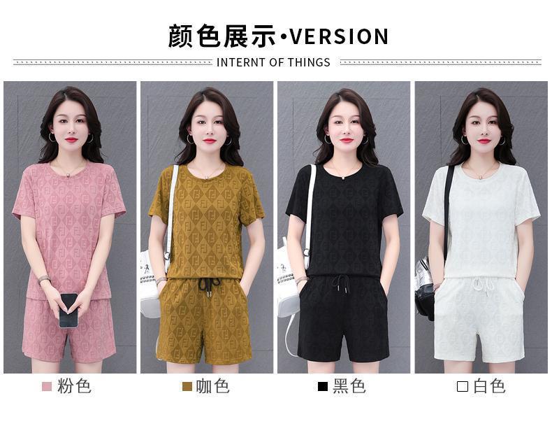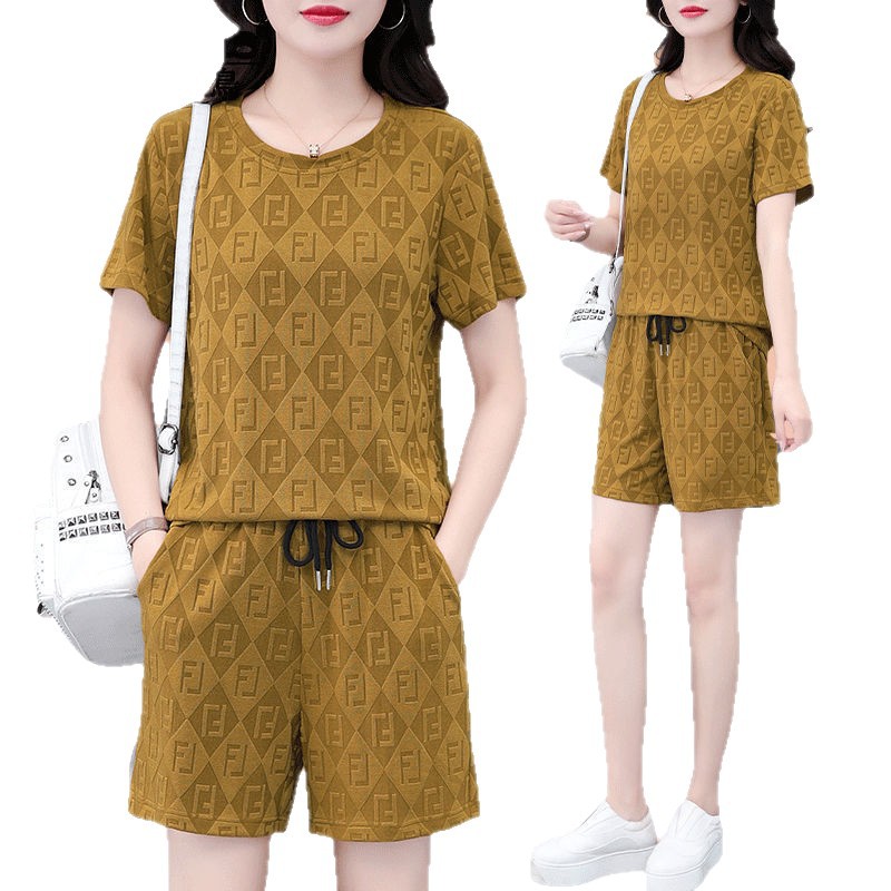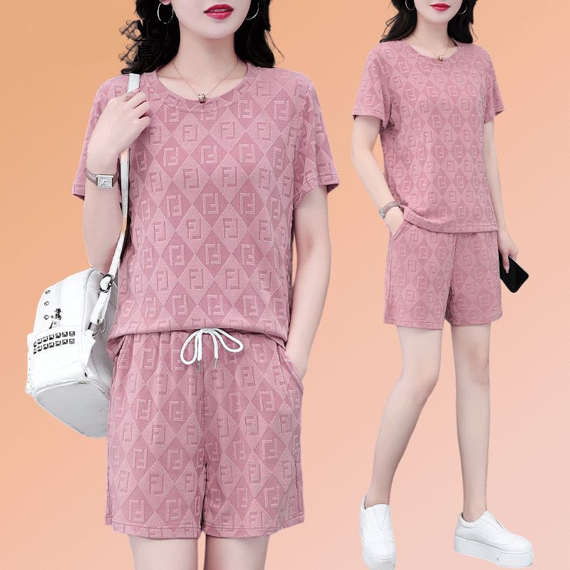 대외 무역 얼음 실크 패션 반팔 반바지 5부 바지 정장 여성 운동복 새로운 여름 캐주얼웨어 투피스 세트