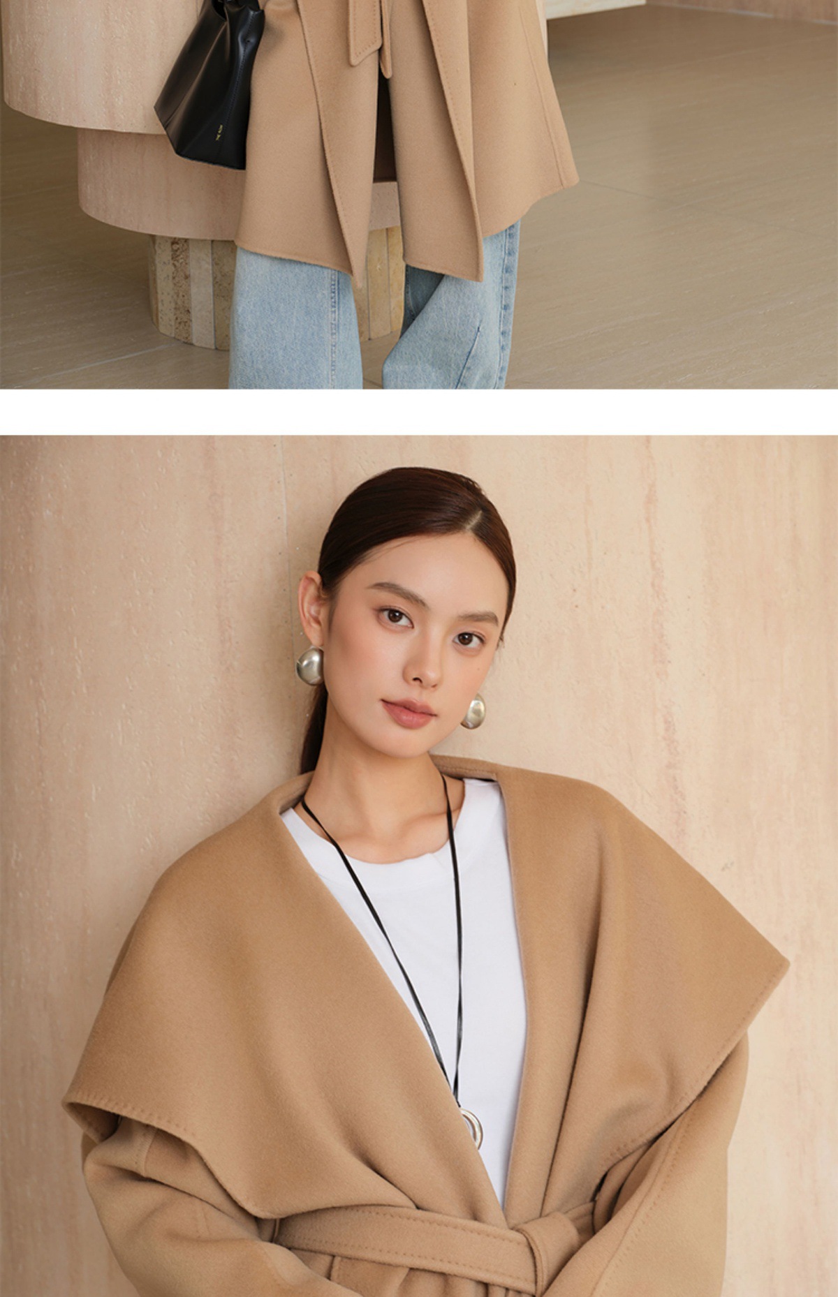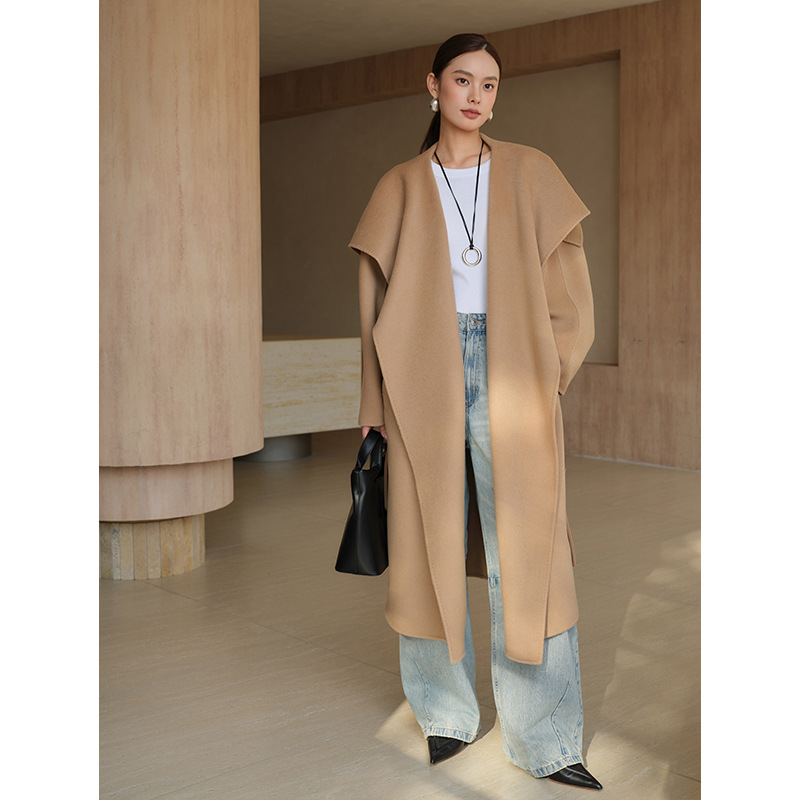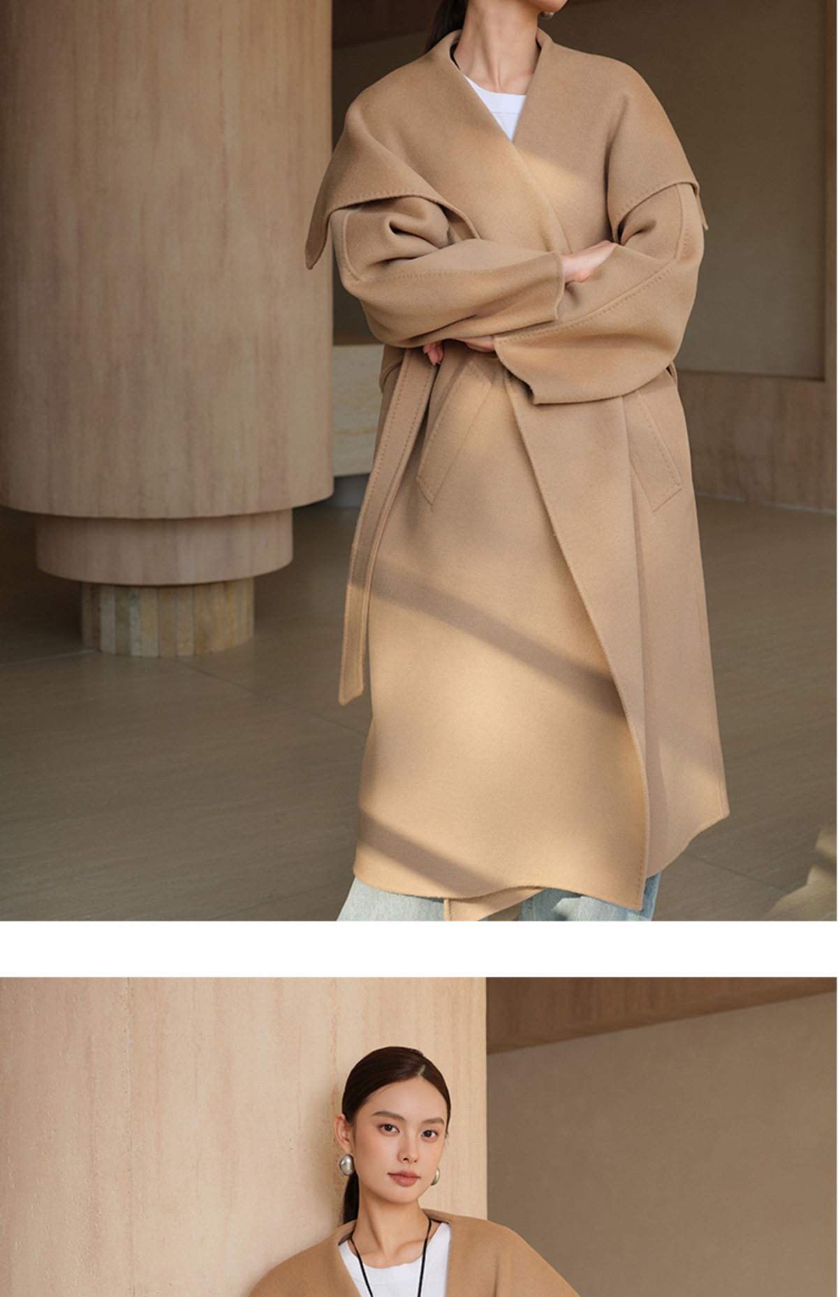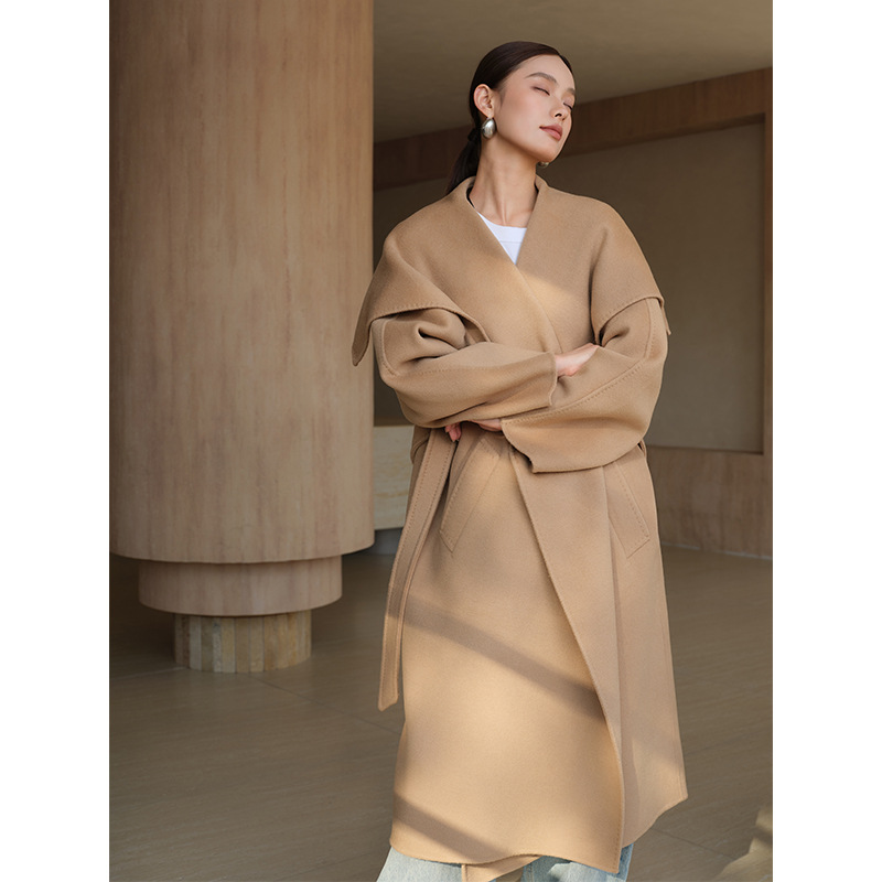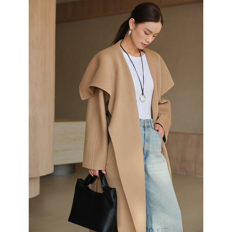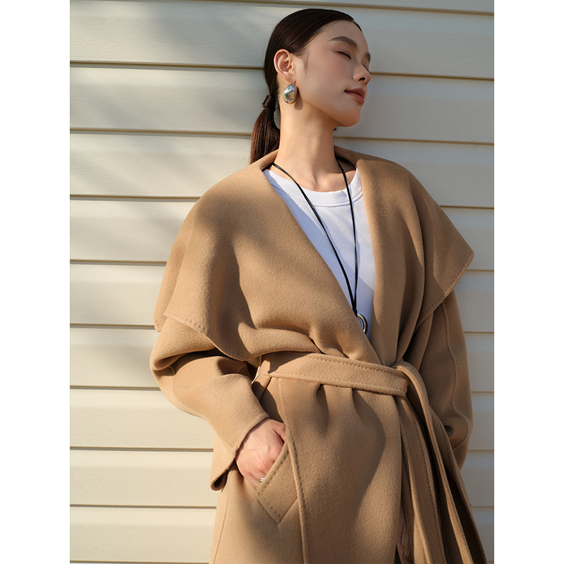 Hengjia 2025 가을 겨울 라펠 더블사이드 100% 울 코트 중간 길이 여성용 YM2410