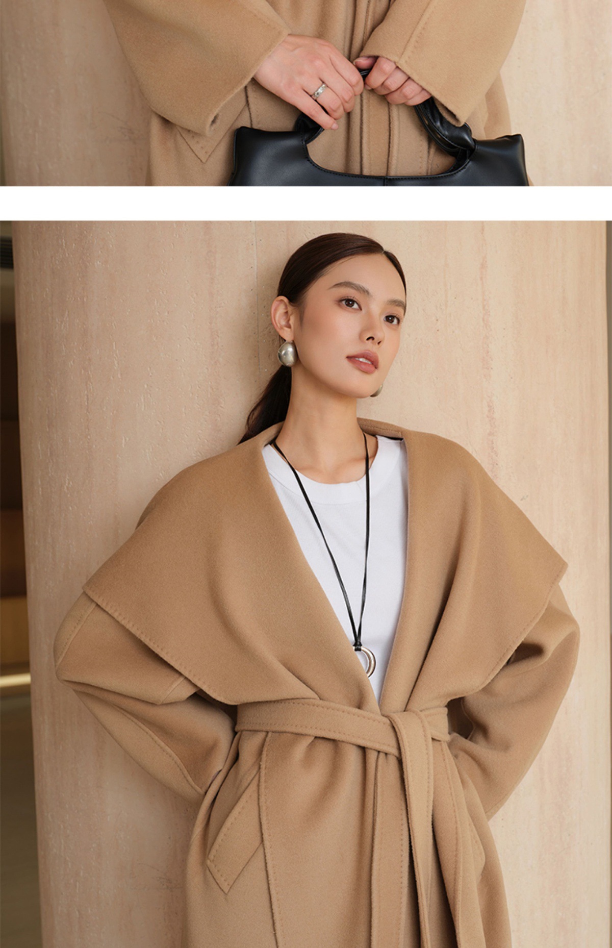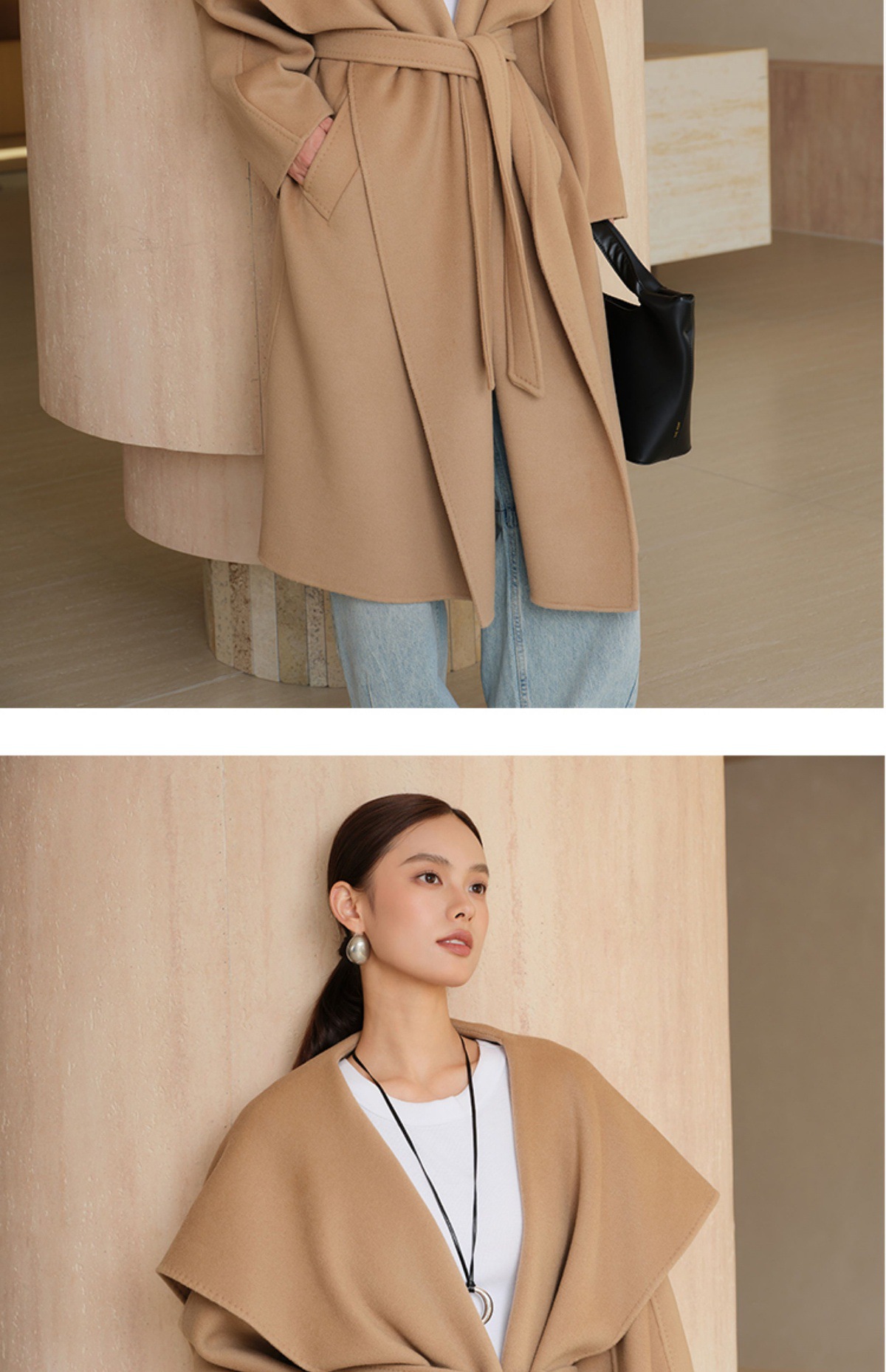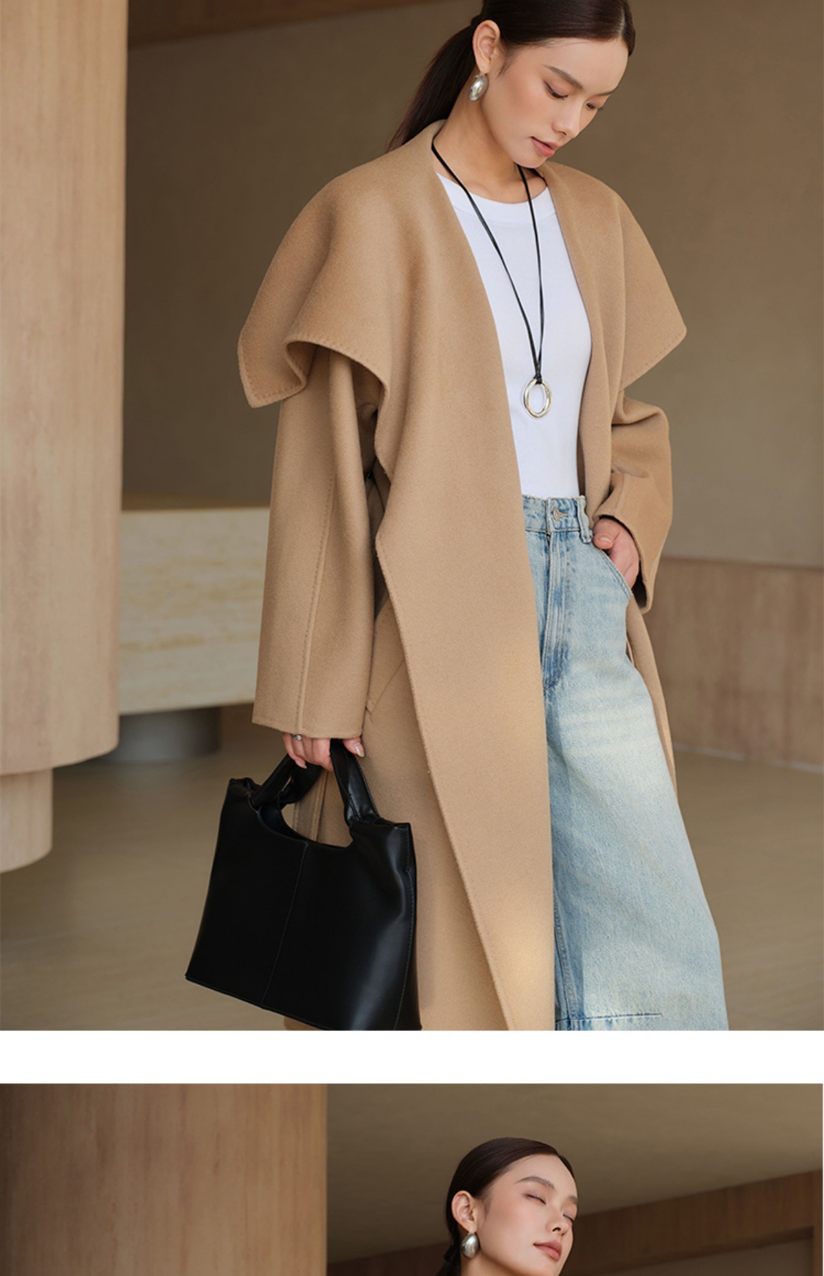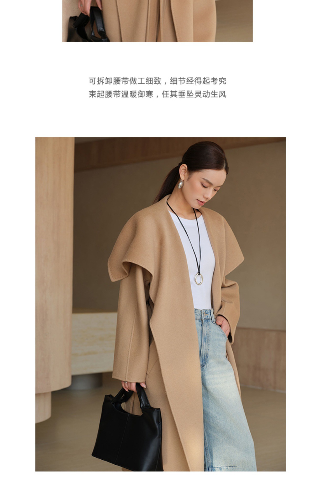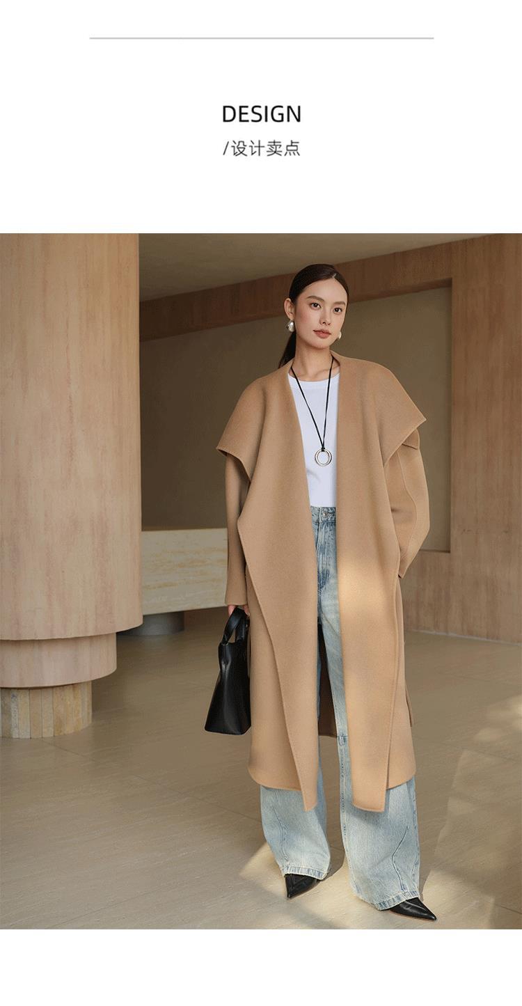 Hengjia 2025 가을 겨울 라펠 더블사이드 100% 울 코트 중간 길이 여성용 YM2410