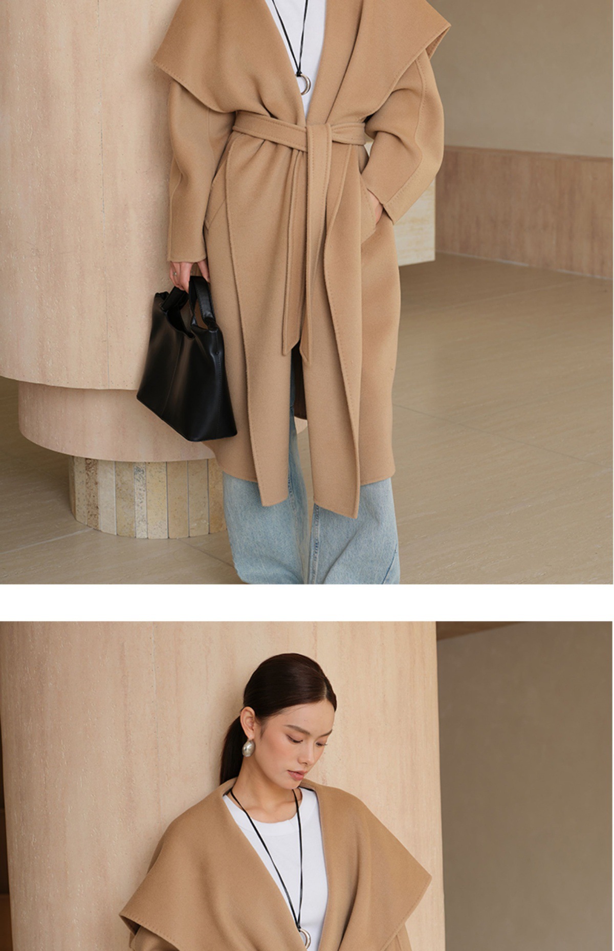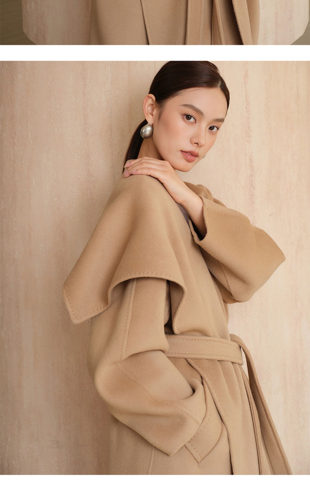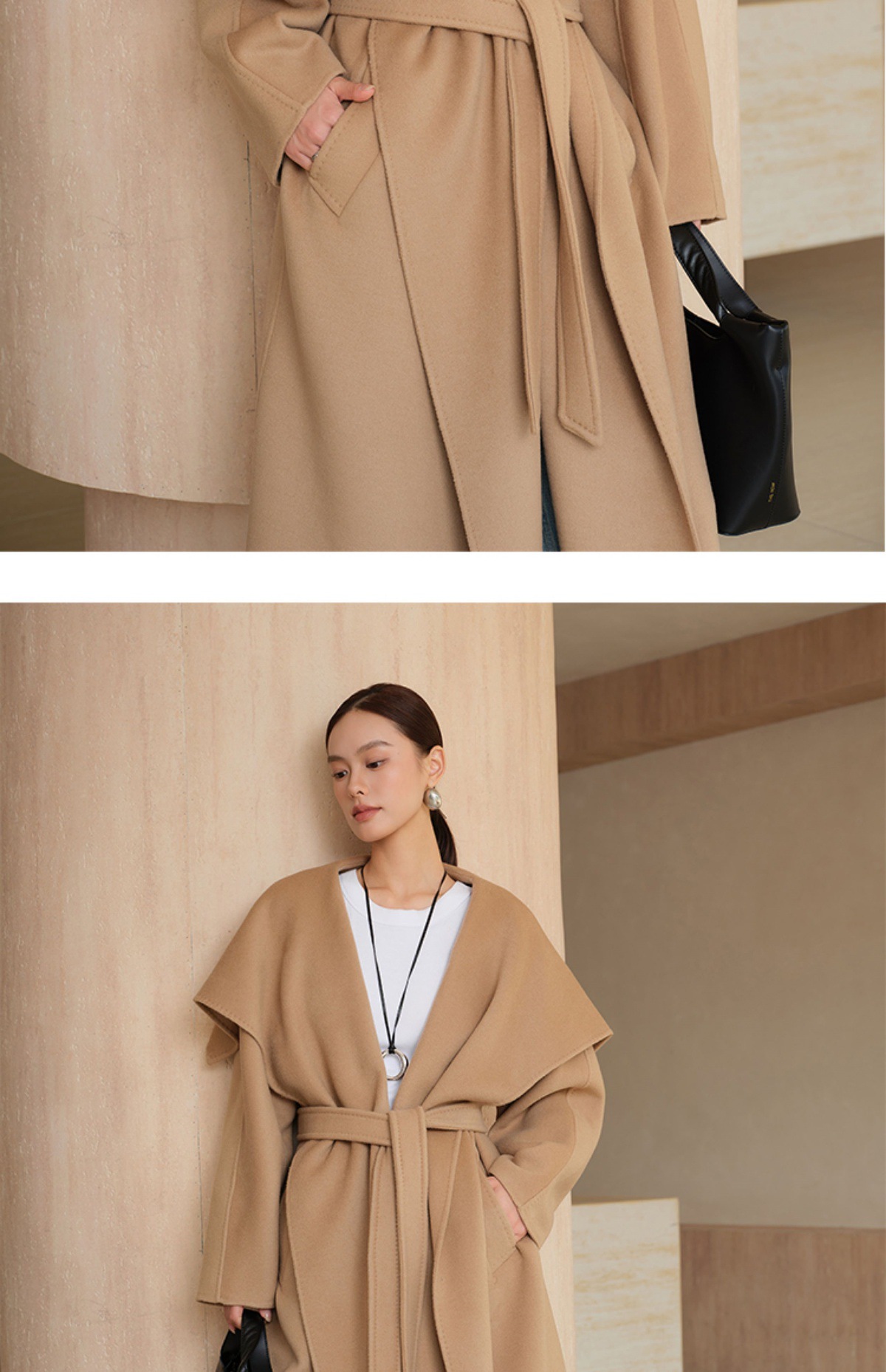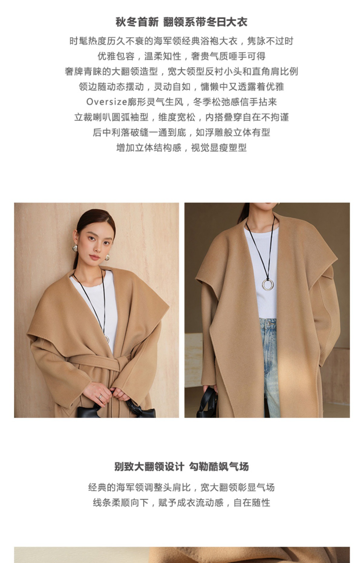 Hengjia 2025 가을 겨울 라펠 더블사이드 100% 울 코트 중간 길이 여성용 YM2410