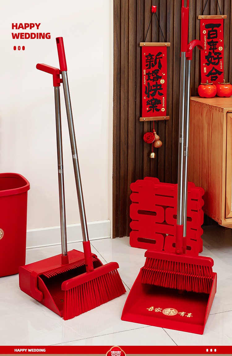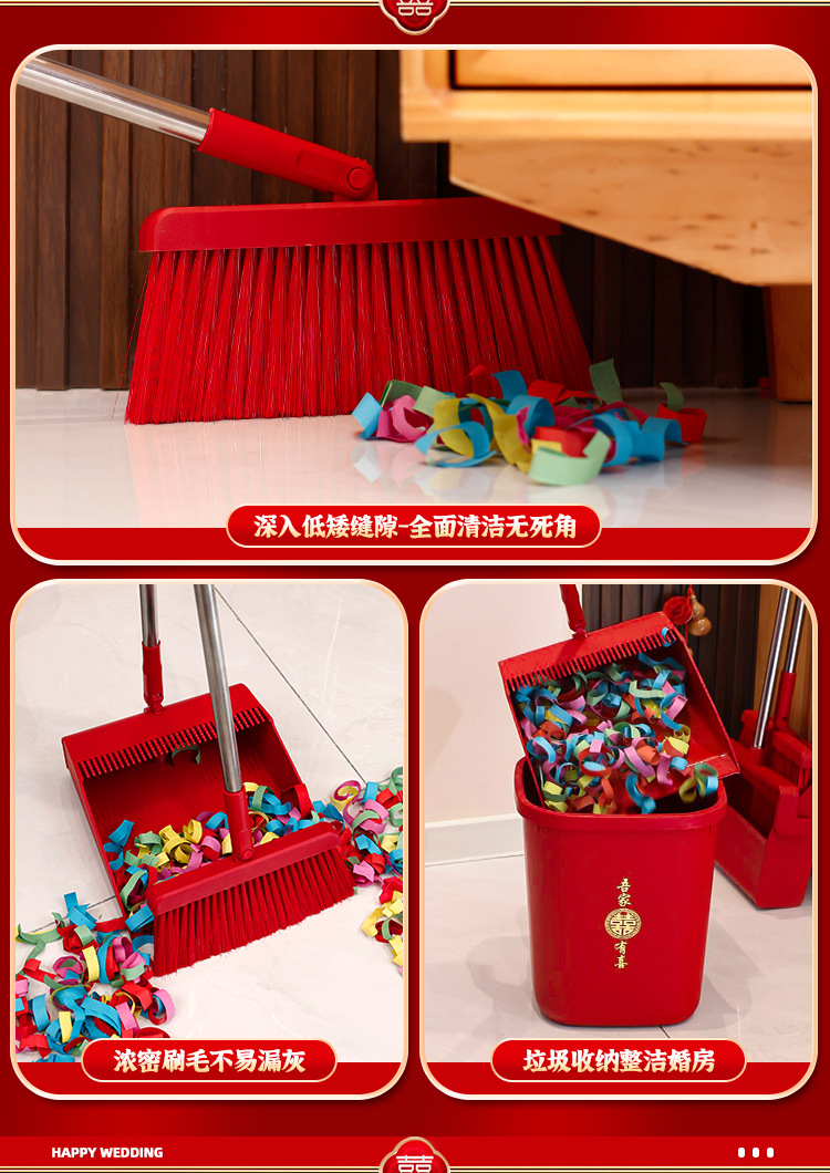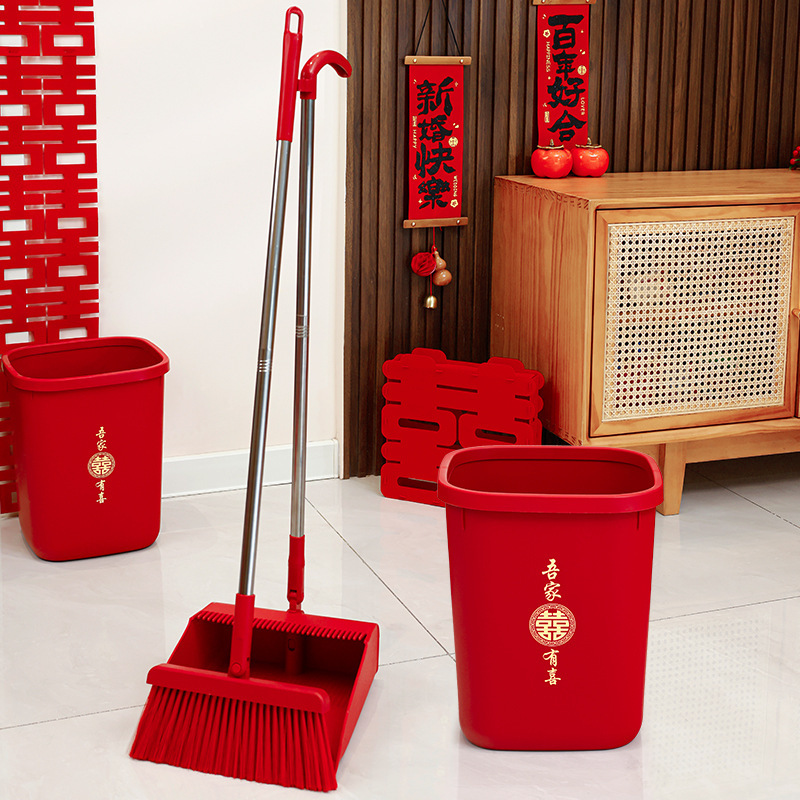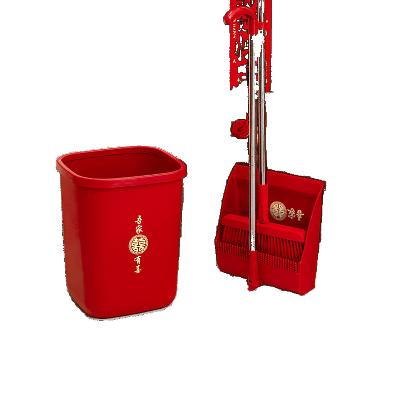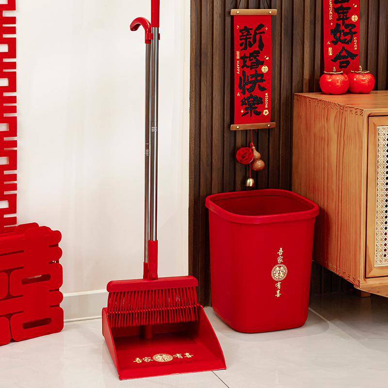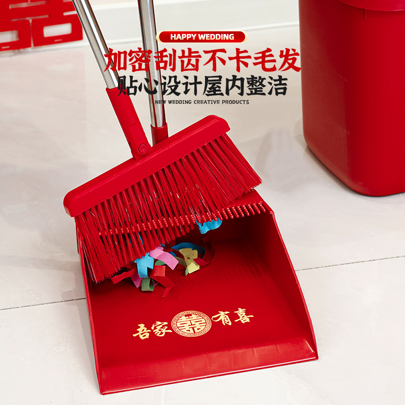 웨딩 레드 빗자루와 쓰레받기 세트 결합 웨딩 홈 청소 빗자루 싱글 웨딩 용품 컬렉션