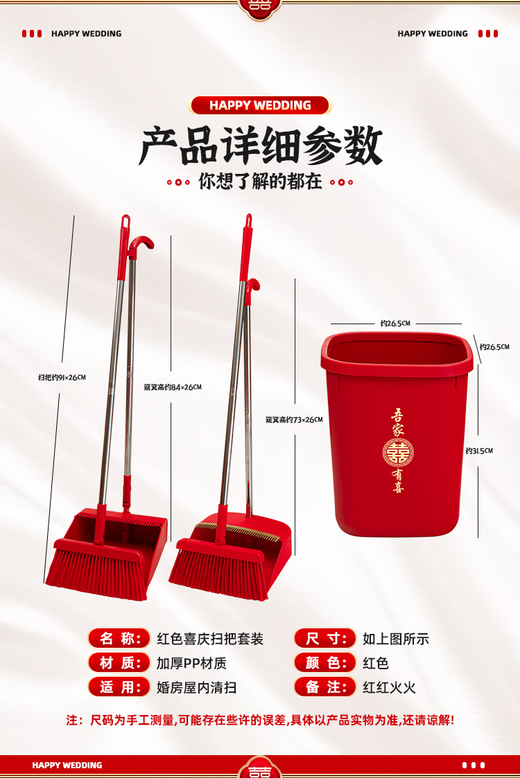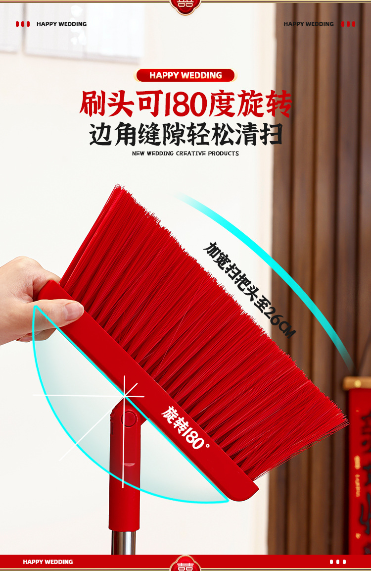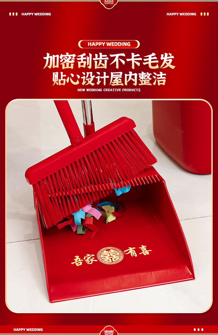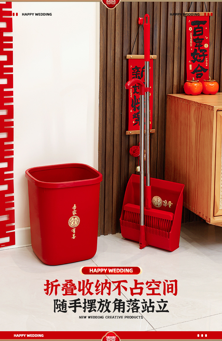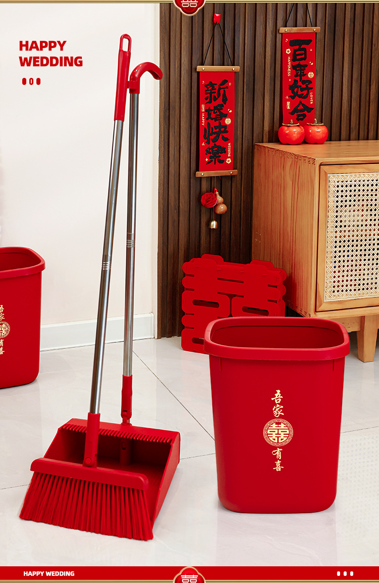 웨딩 레드 빗자루와 쓰레받기 세트 결합 웨딩 홈 청소 빗자루 싱글 웨딩 용품 컬렉션