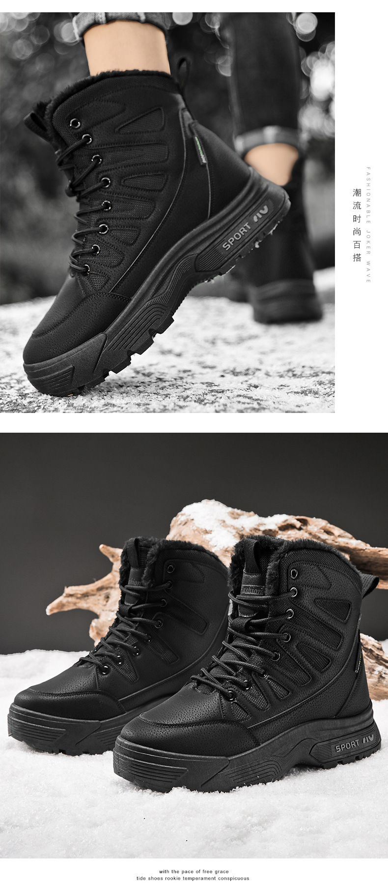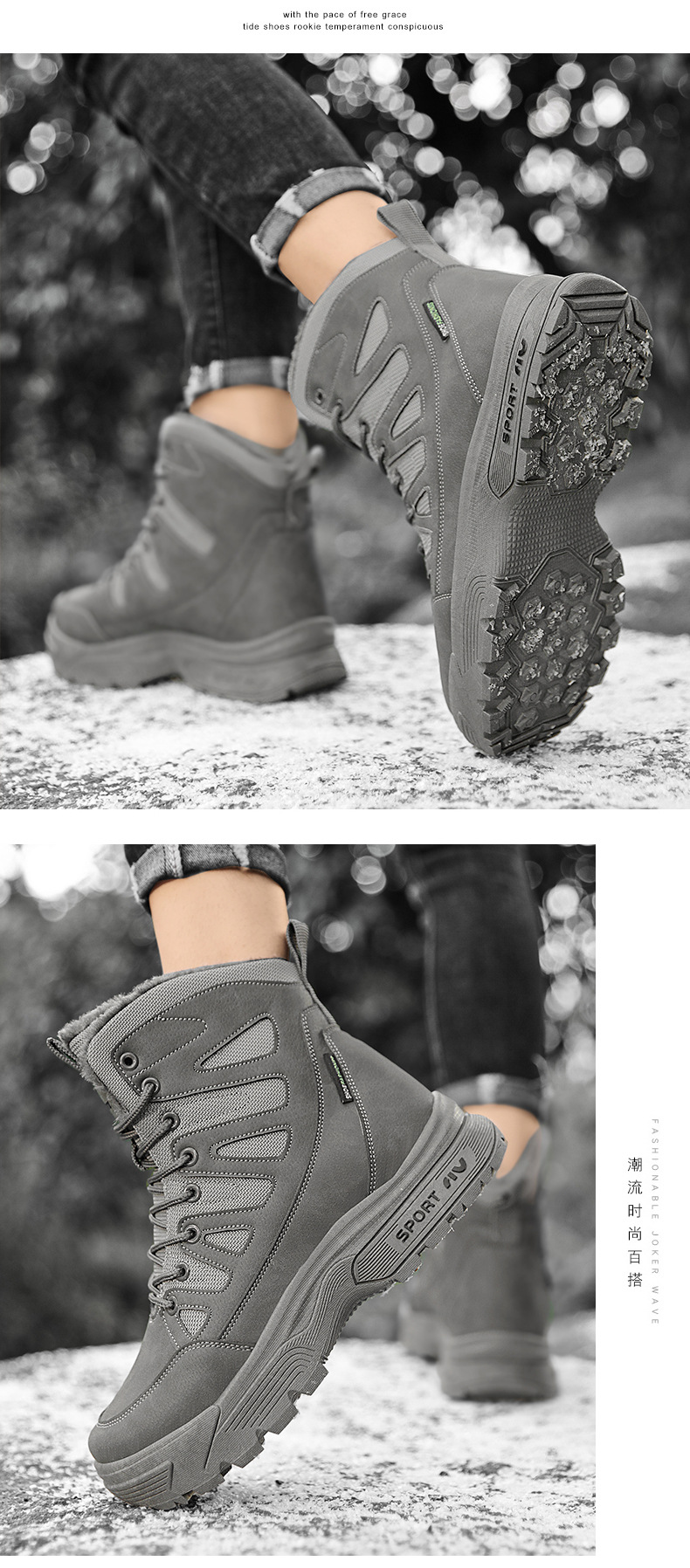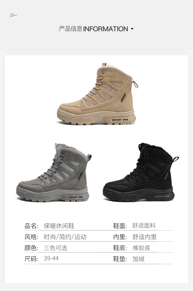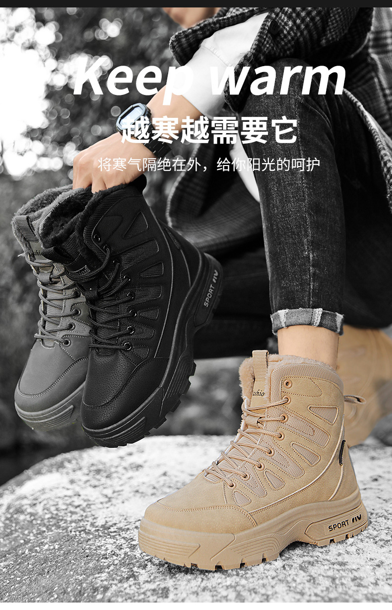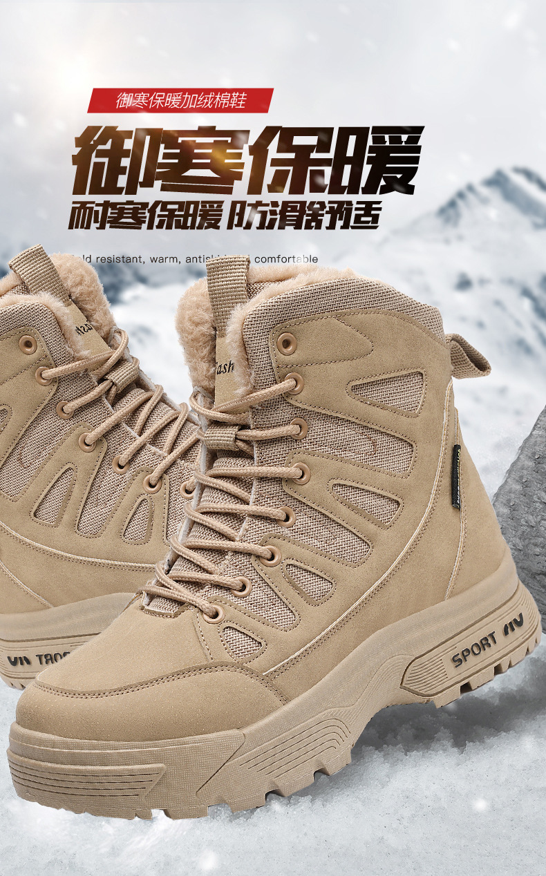 야외 남성용 등산화, 벨벳으로 따뜻하고 편안함, 겨울 스키 남성용 크로스보더 스노우 부츠, 하이탑 스포츠 면화