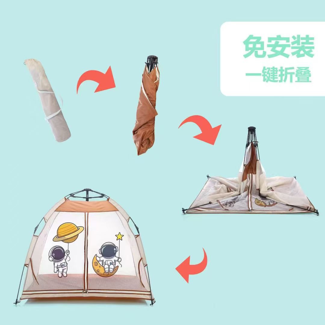 국경을 넘는 어린이용 실내외 텐트, 원클릭 접이식 수납 캠핑 하우스, 게임 하우스, 설치 불필요, 야외 캠핑용, 통기성