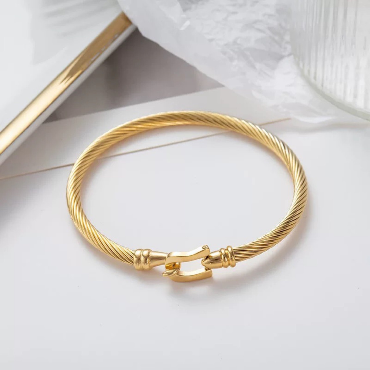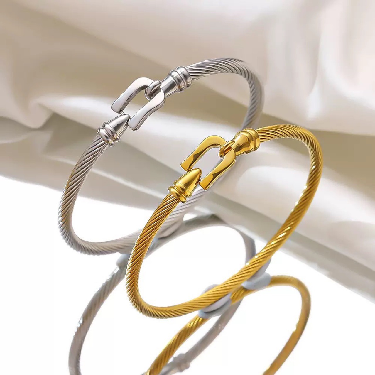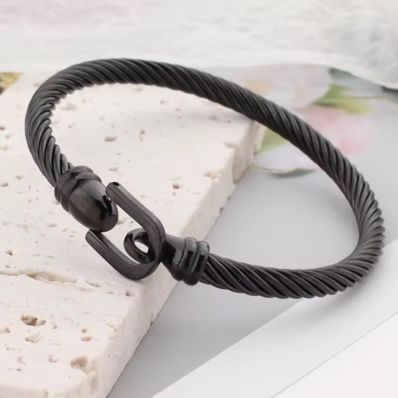 아마존 대외 무역 베스트셀러 유럽과 미국의 말굽 버클 스테인레스 스틸 팔찌 복고풍 단순 케이블 와이어 티타늄 스틸 후크 팔찌