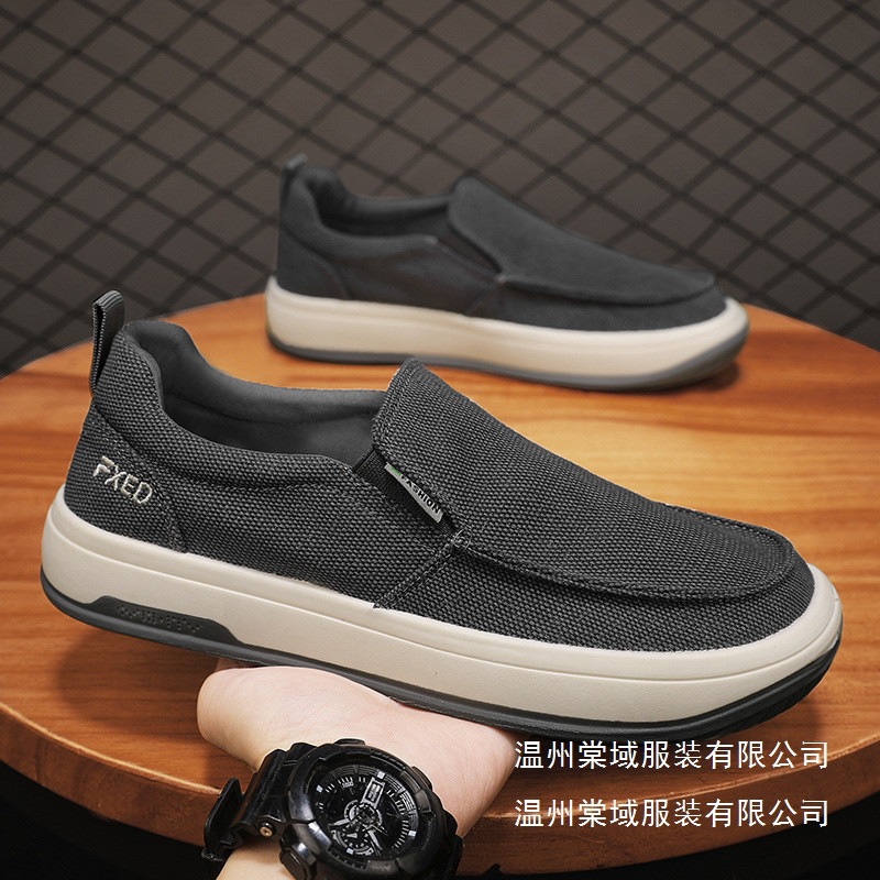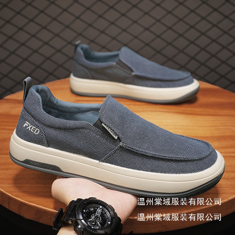 남성 신발 2025 여름 통기성 올드 베이징 천 신발 캐주얼 남성 캔버스 신발 게으른 슬립 온 부드러운 바닥 도매