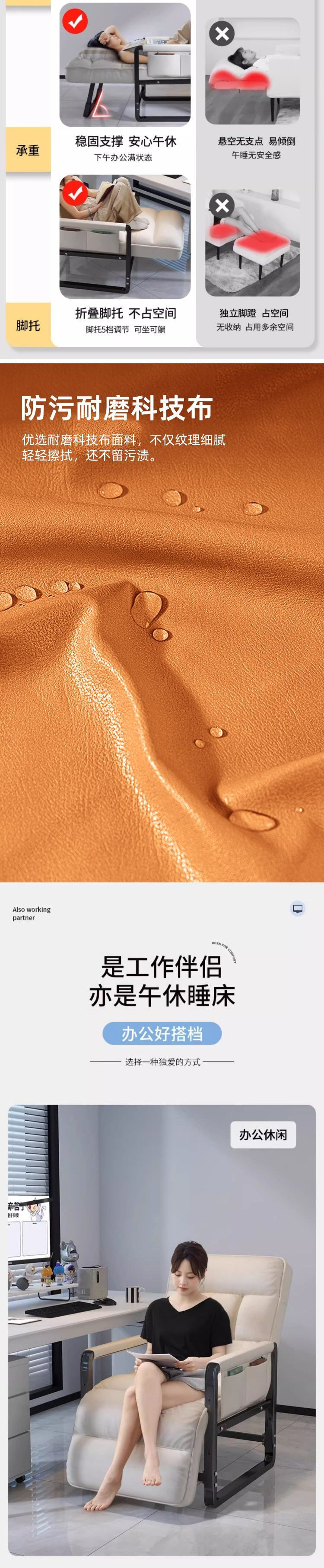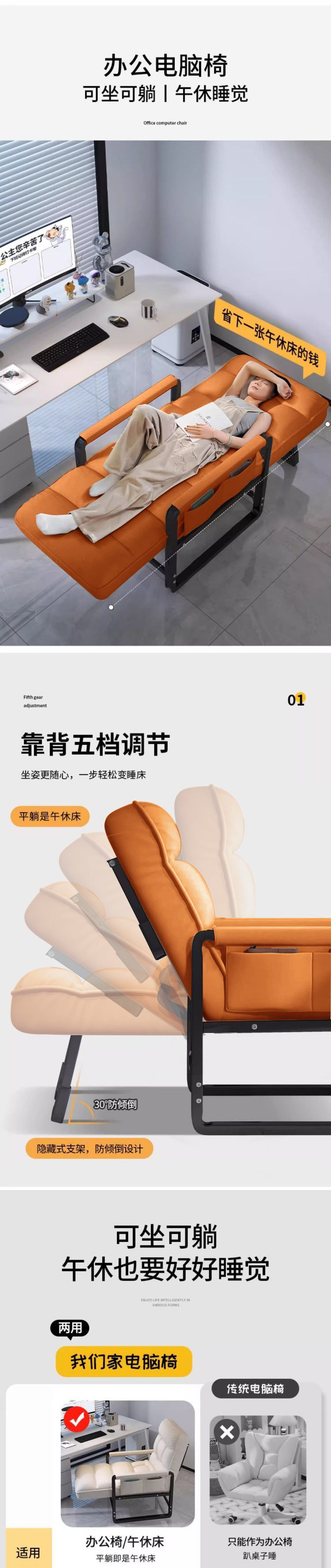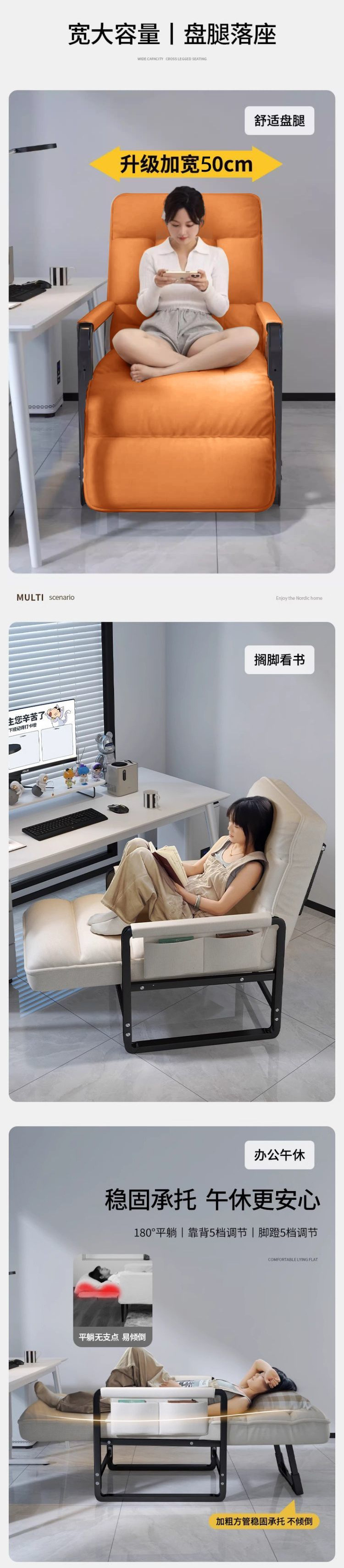 사무실 점심시간용 안락의자, 가정용 접이식 등받이 의자, 컴퓨터 의자, 앉거나 누울 수 있는 겸용 게으른 소파 의자