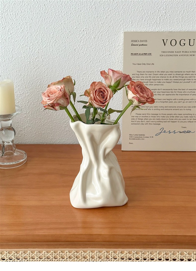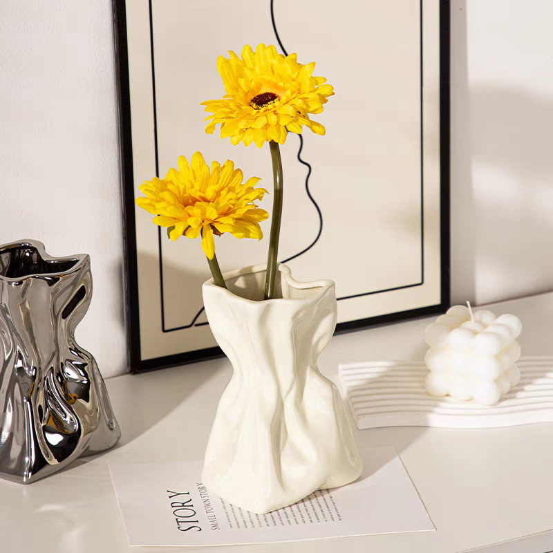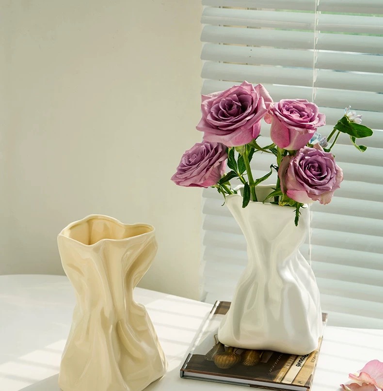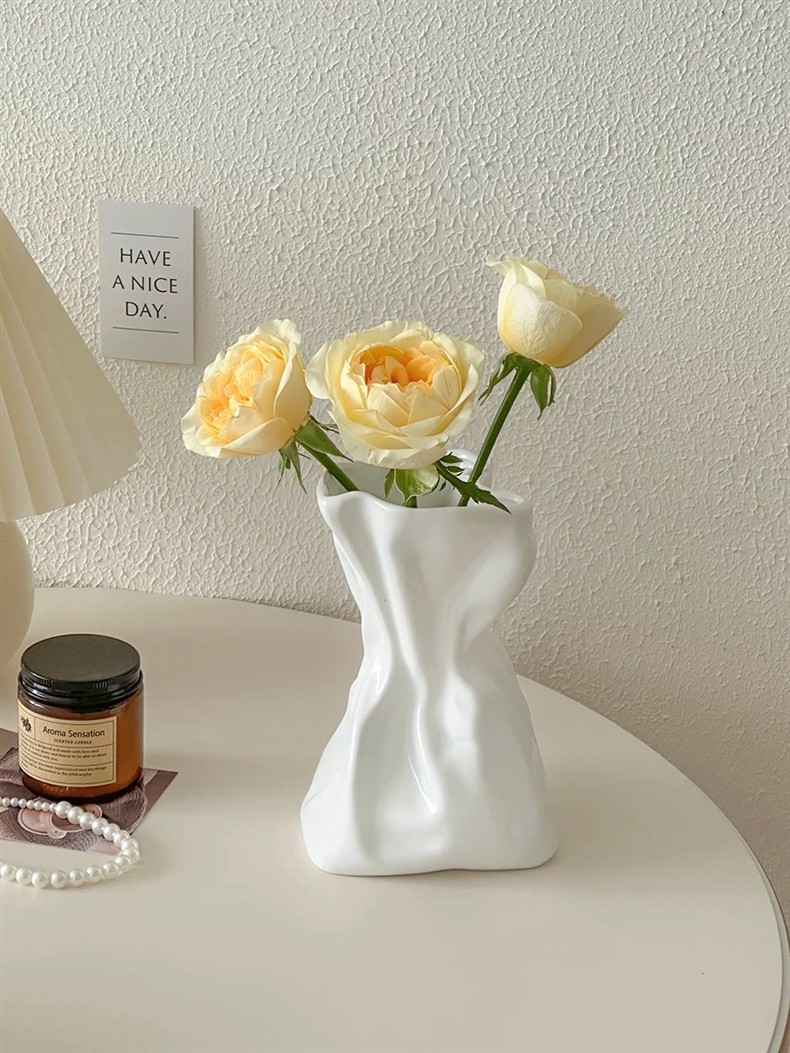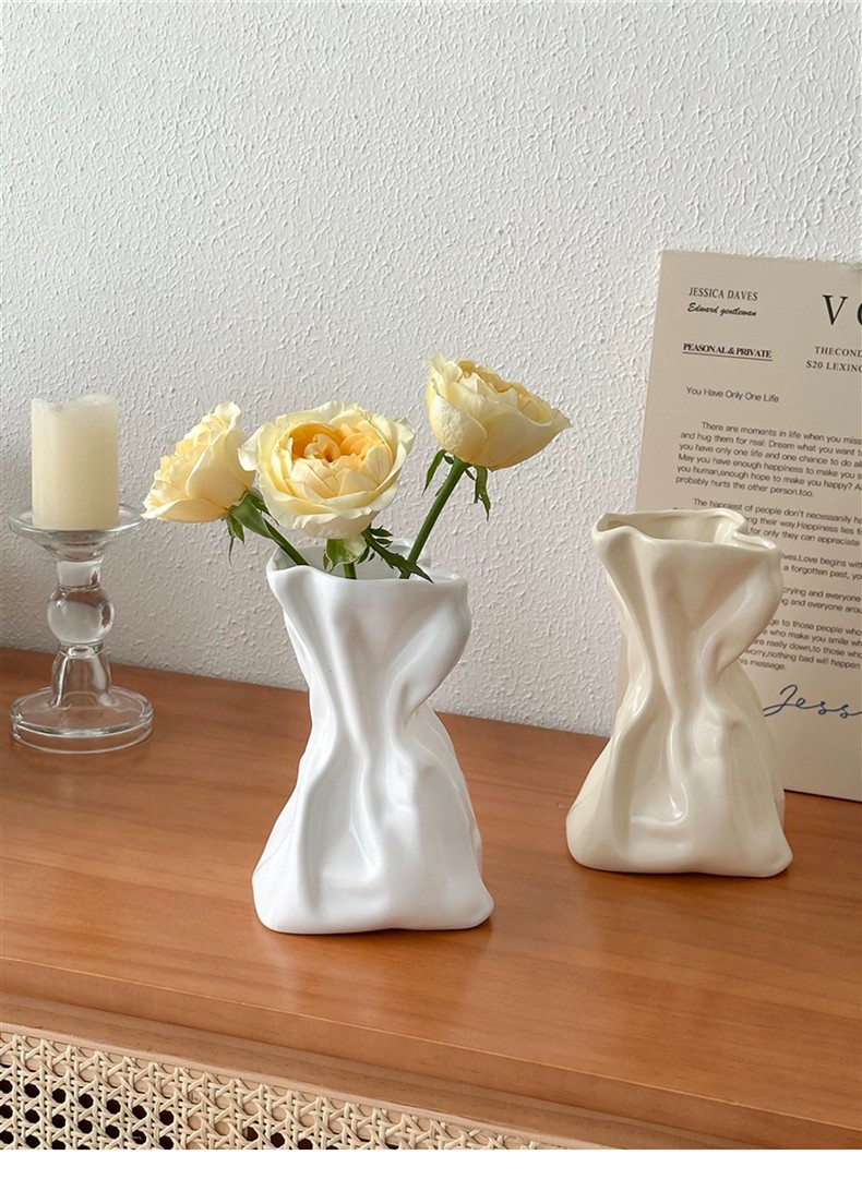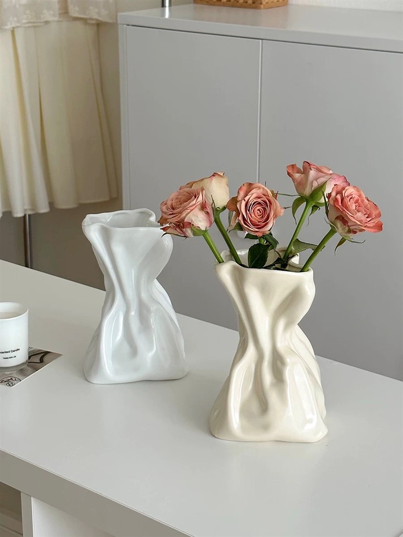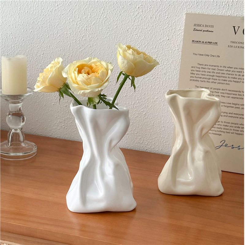 특이한 모양의 크림색 세라믹 꽃병 장식품 거실 테이블 홈 레스토랑 장식 꽃꽂이 수경재배 장미 창의적