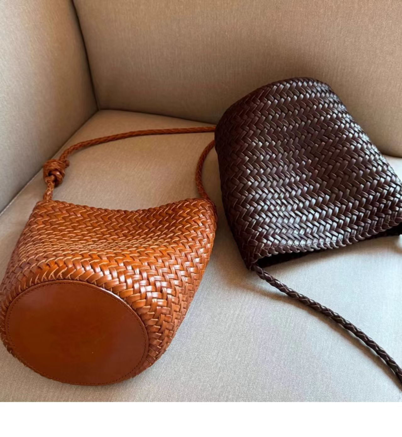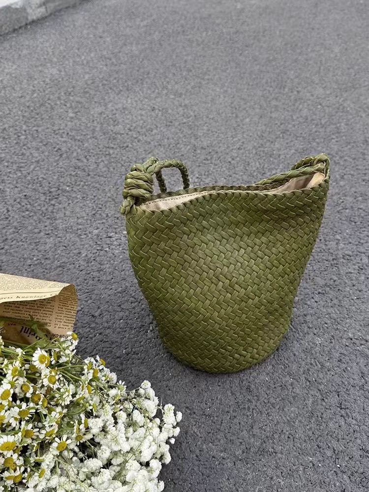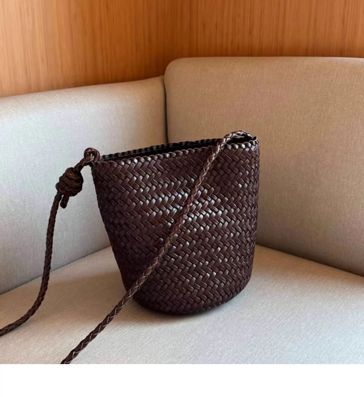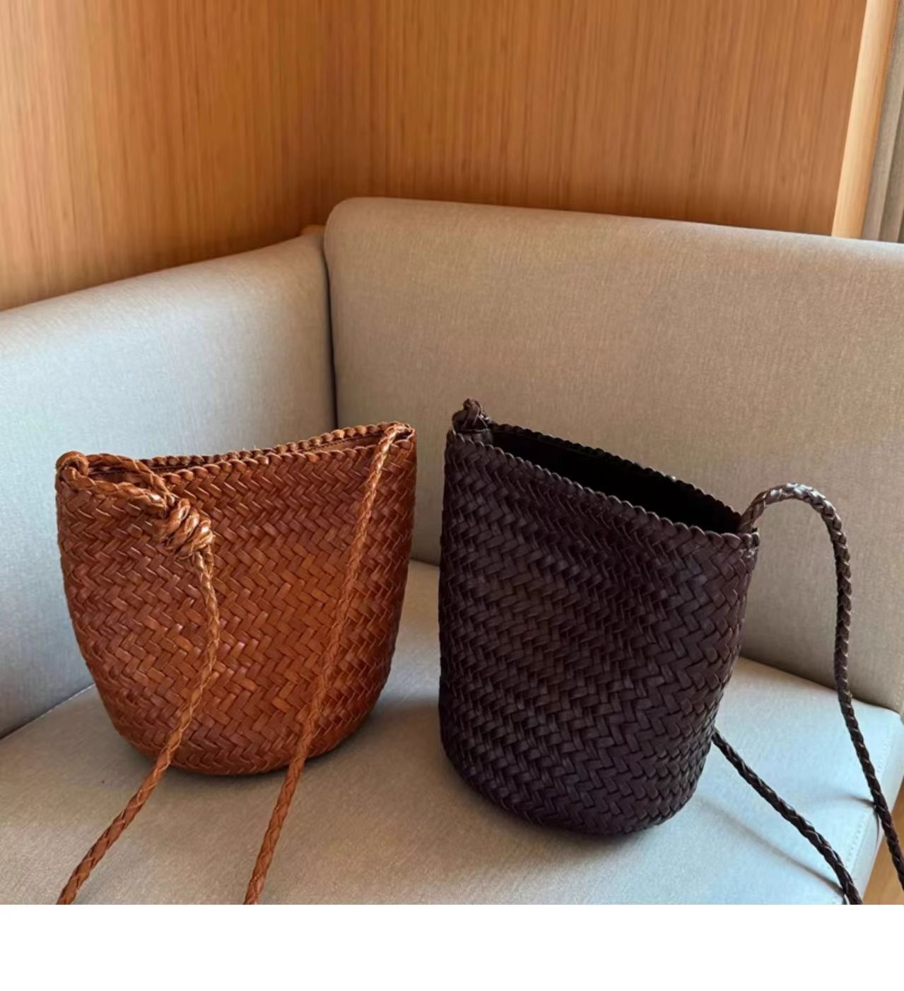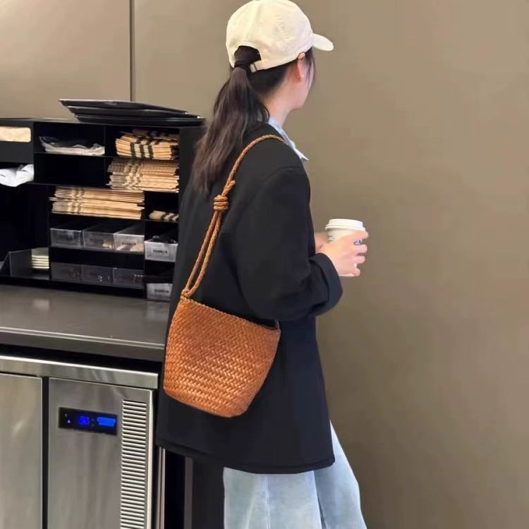한국 손으로 짠 가방 여성 2025 새로운 가벼운 럭셔리 틈새 고급 해변 어깨 크로스 바디 버킷 백