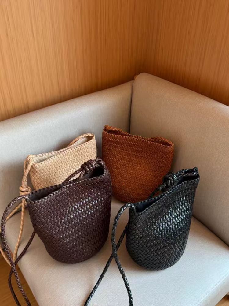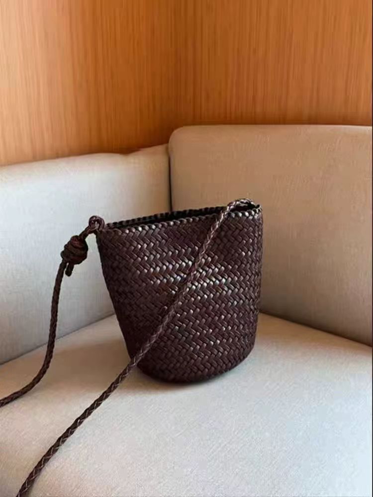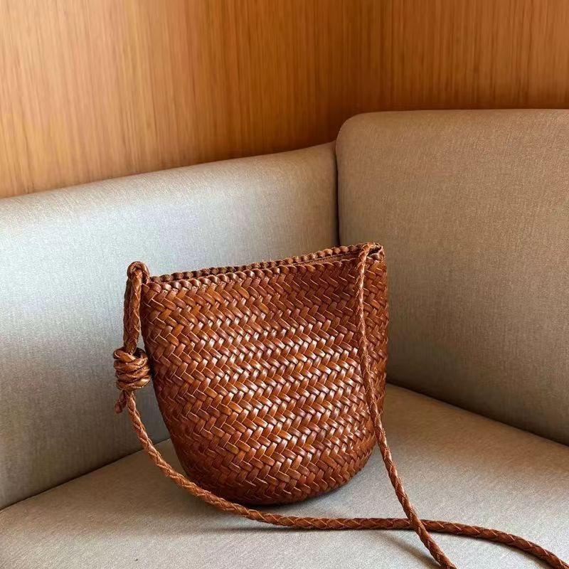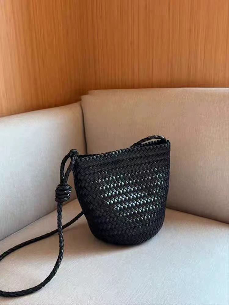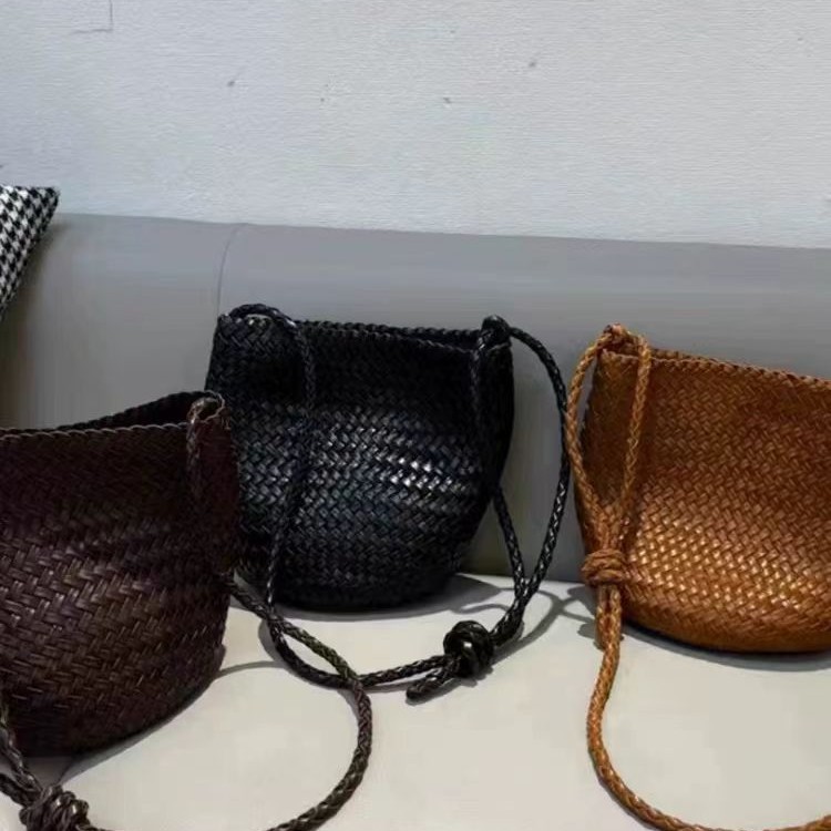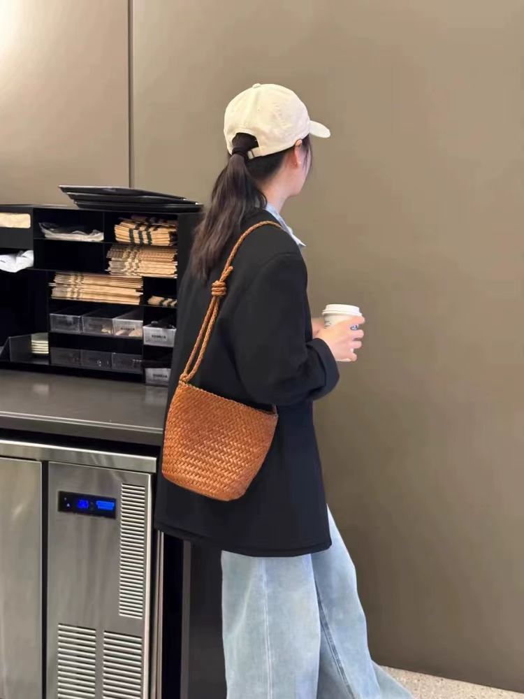 한국 손으로 짠 가방 여성 2025 새로운 가벼운 럭셔리 틈새 고급 해변 어깨 크로스 바디 버킷 백
