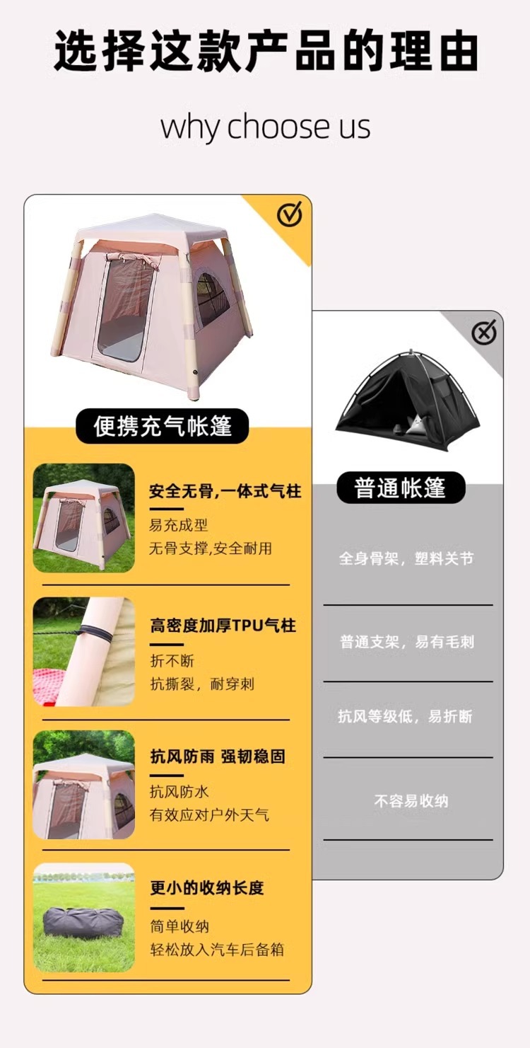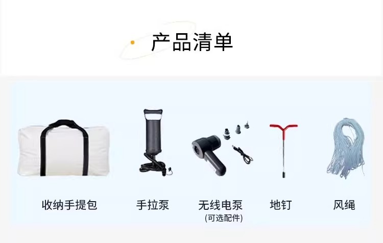 【2.0】사각 텐트 + 더블 침대 + 전동 펌프 + 휴대용 가방