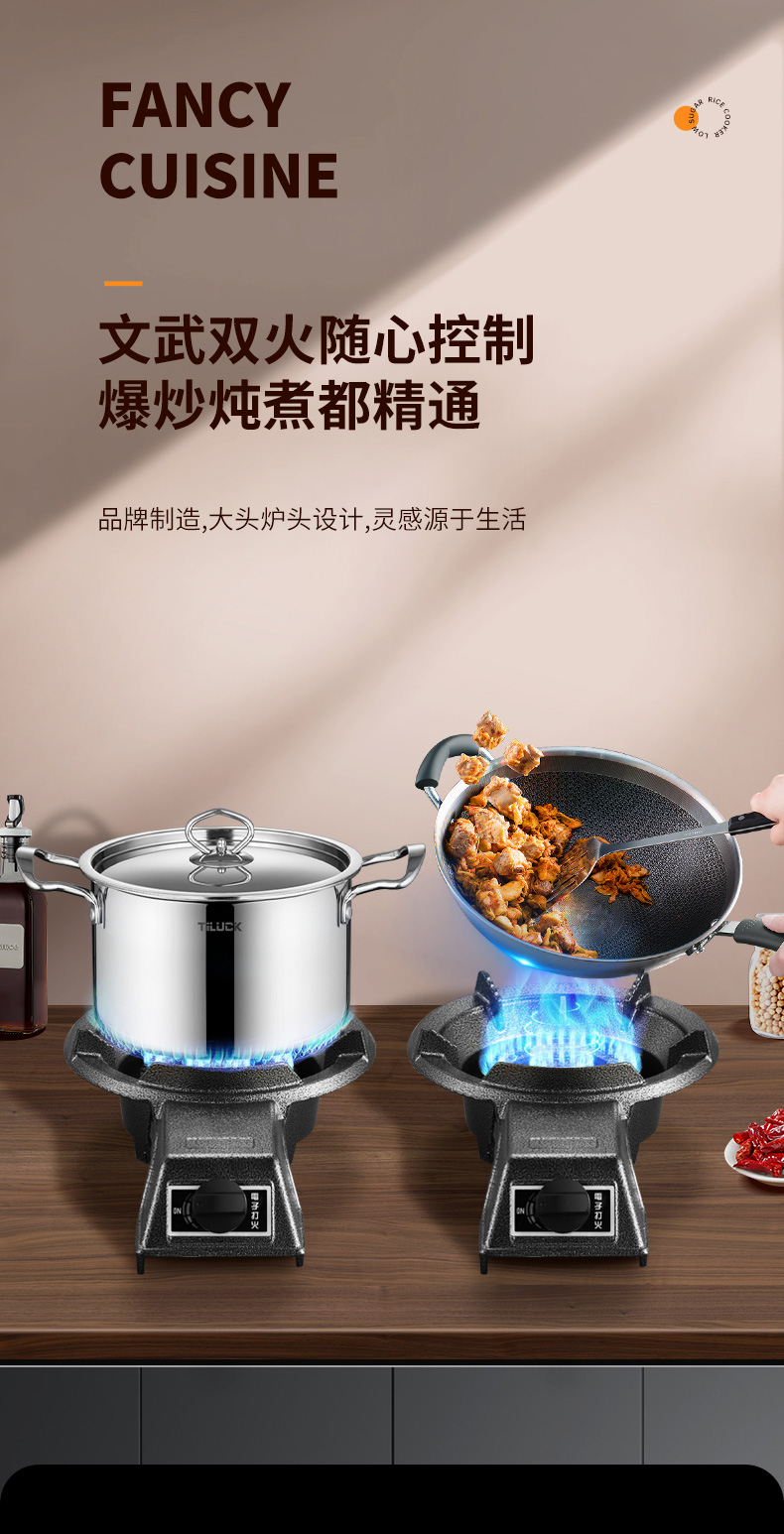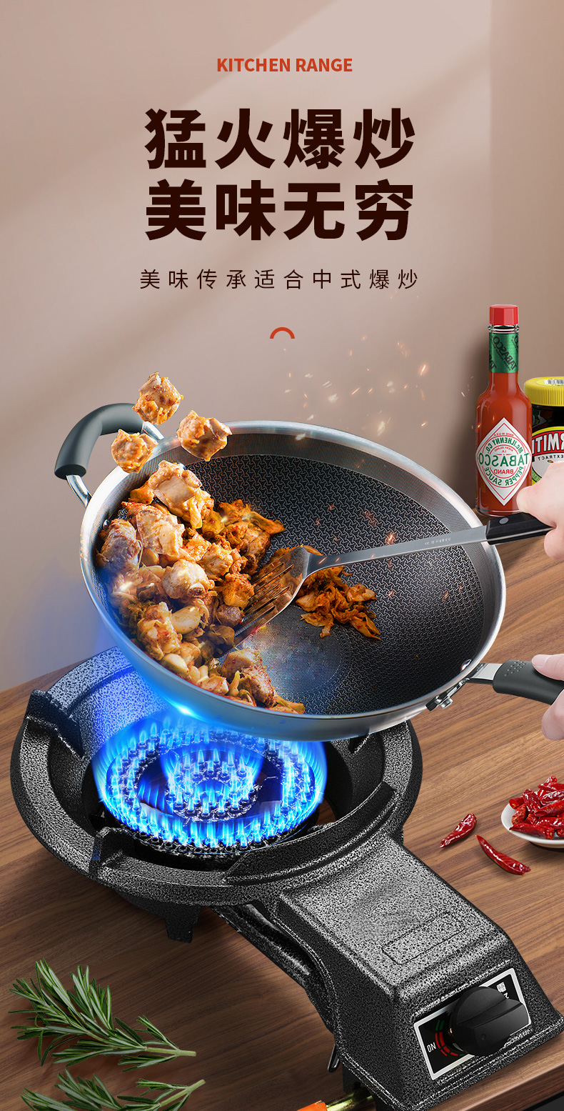상업용 볶음 요리를 위해서는 고압 에너지 절약형 스토브를 사용하세요.