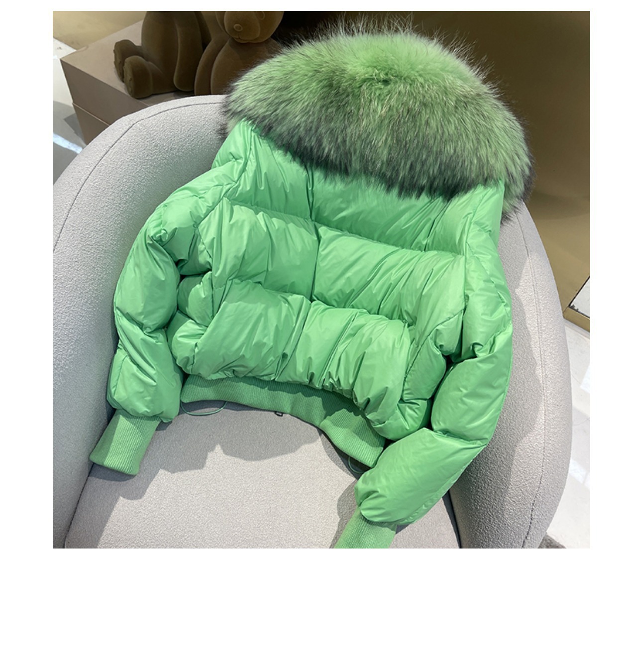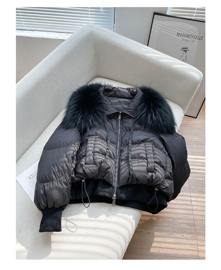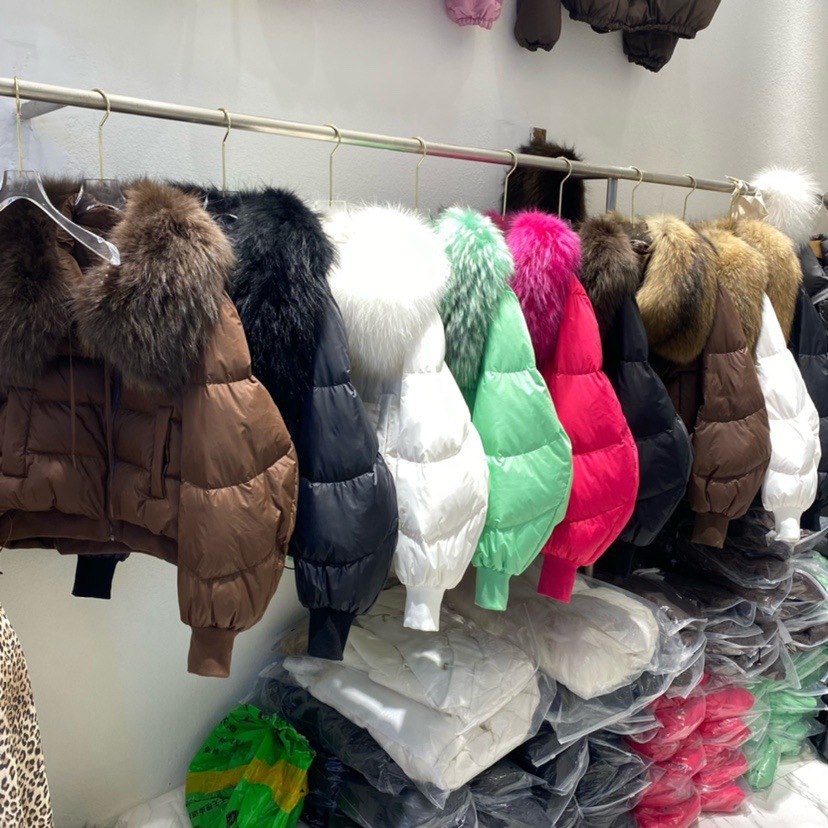 국경 간 전자 상거래 겨울 코트 여성 패션 짧은 다운 재킷 여성 하이 엔드 여성 90 화이트 오리 다운 여우 모피 칼라