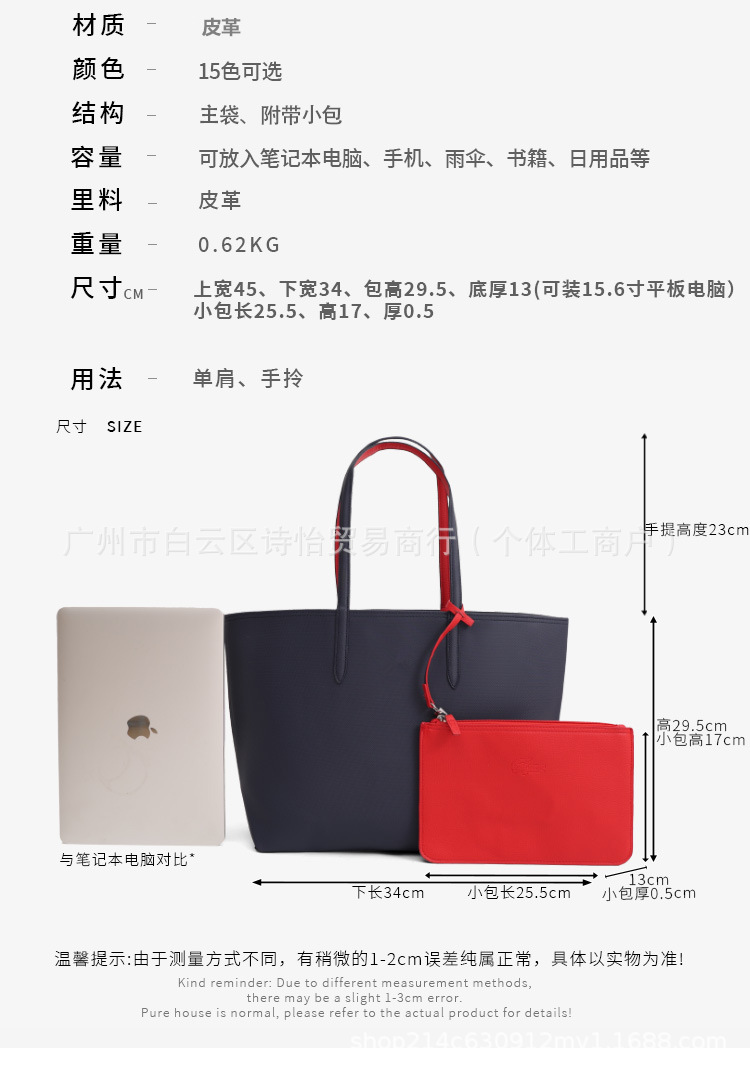 2024 프랑스 신형 악어 가방 양면 통근 가방 싱글 숄더 휴대용 쇼핑백 대형 토트 백
